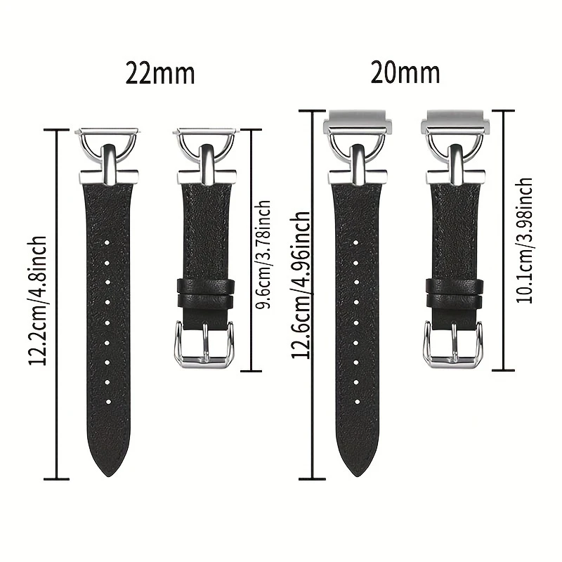Samsung Galaxy Watch 6/5/4, Active 2, Watch 5 Pro, Watch 3 uchun mos keladigan sintetik charm tez chiqarish soat tasmalari. 20mm va 22mm o'lchamdagi D-buckle dizaynli bilaguzuklar. Batareya