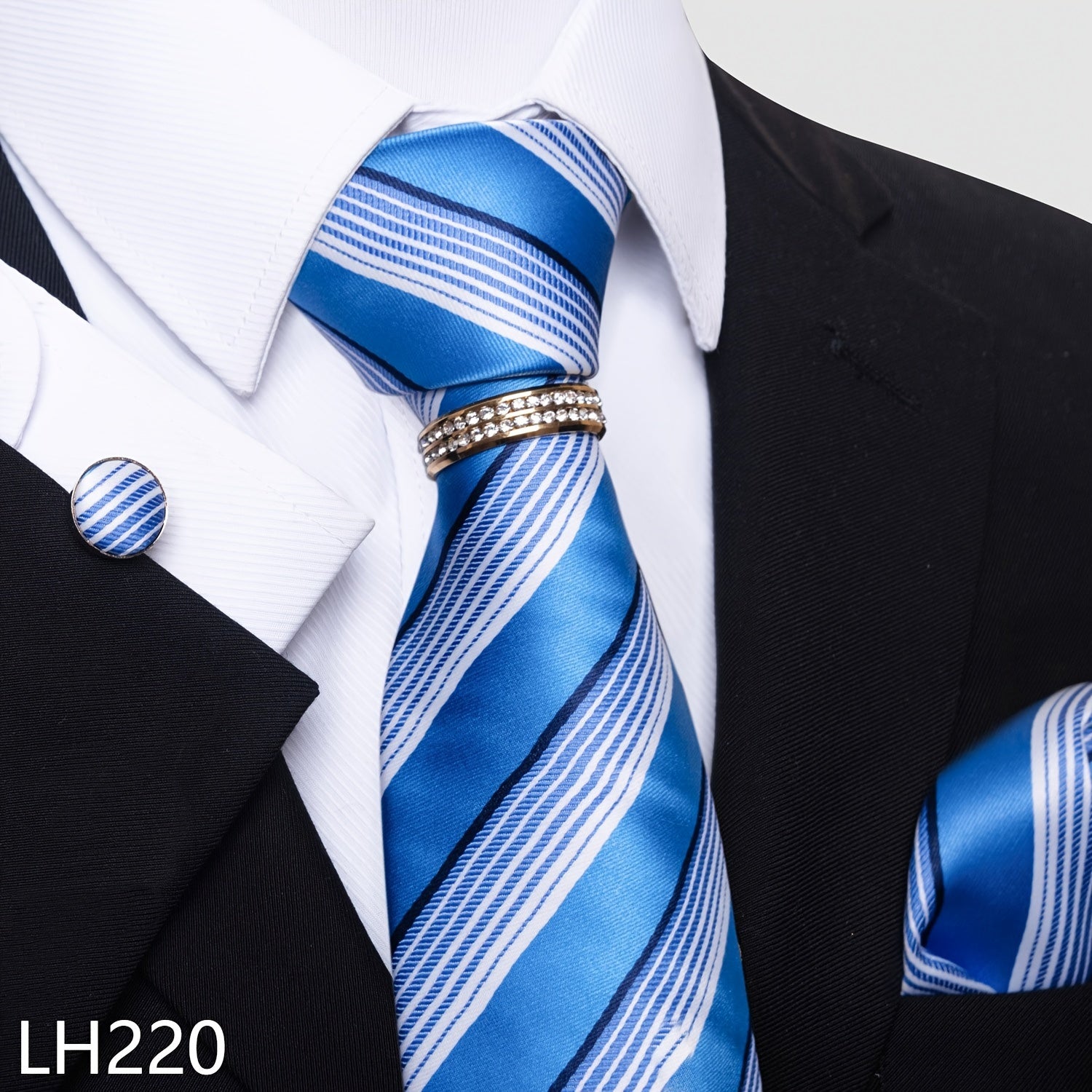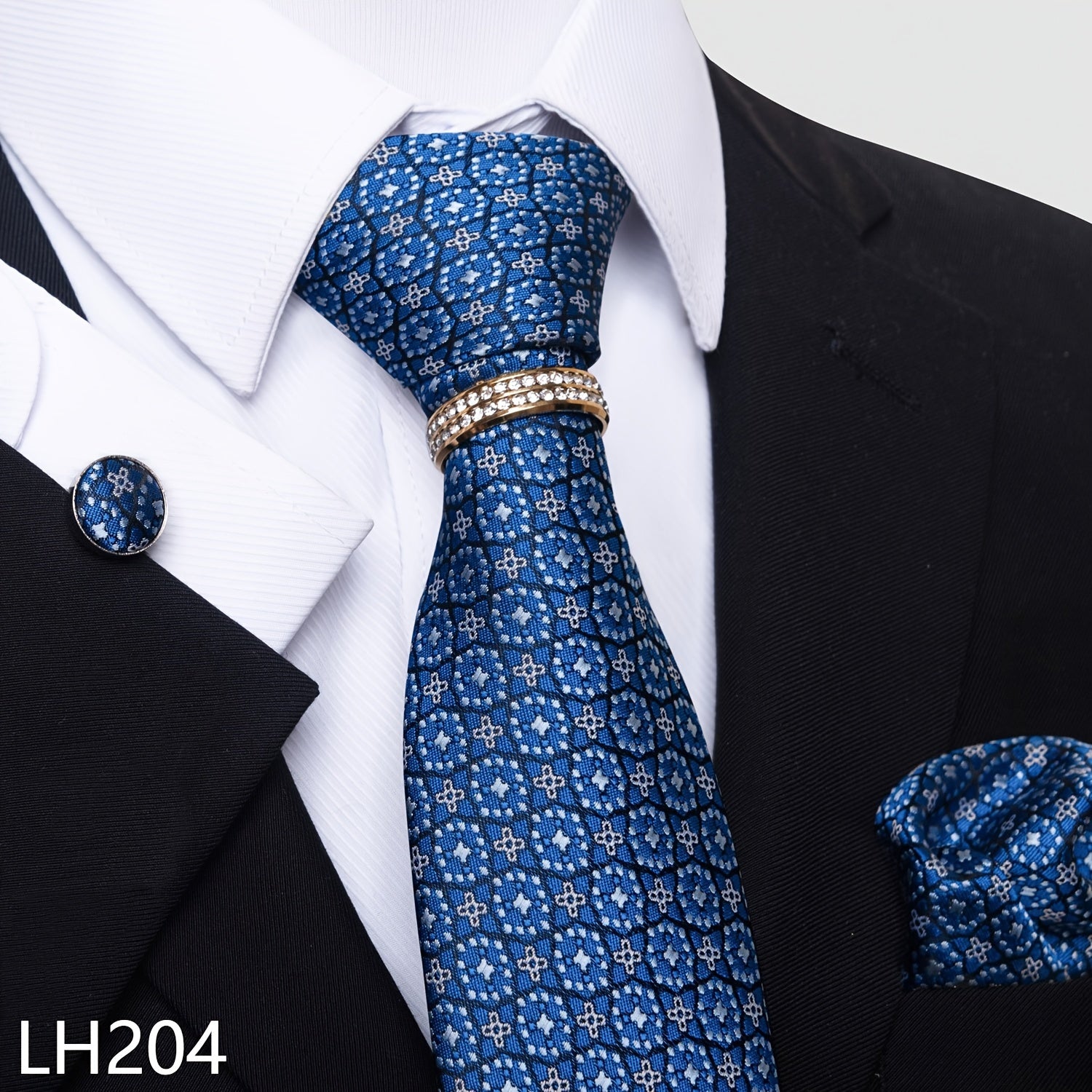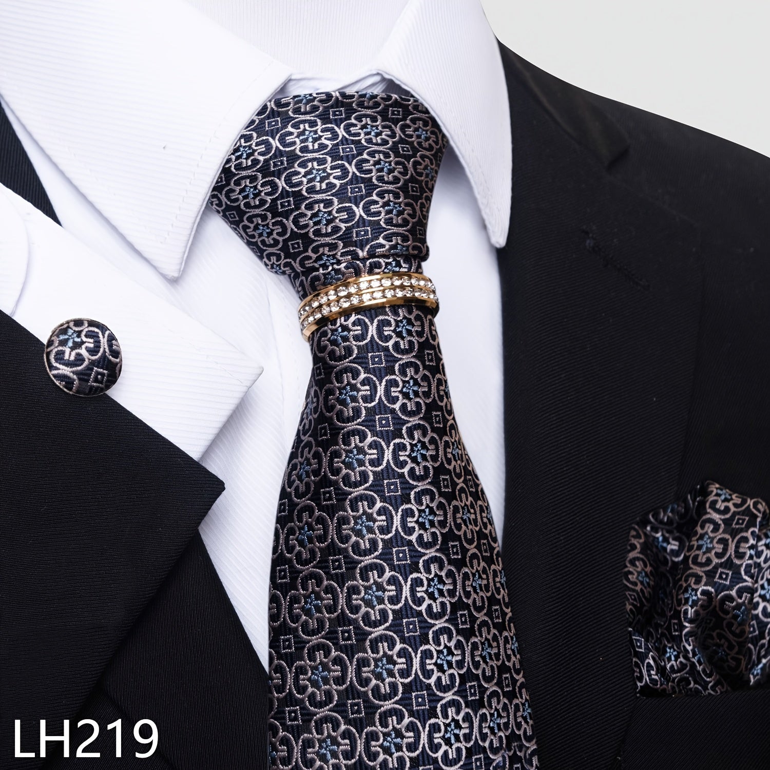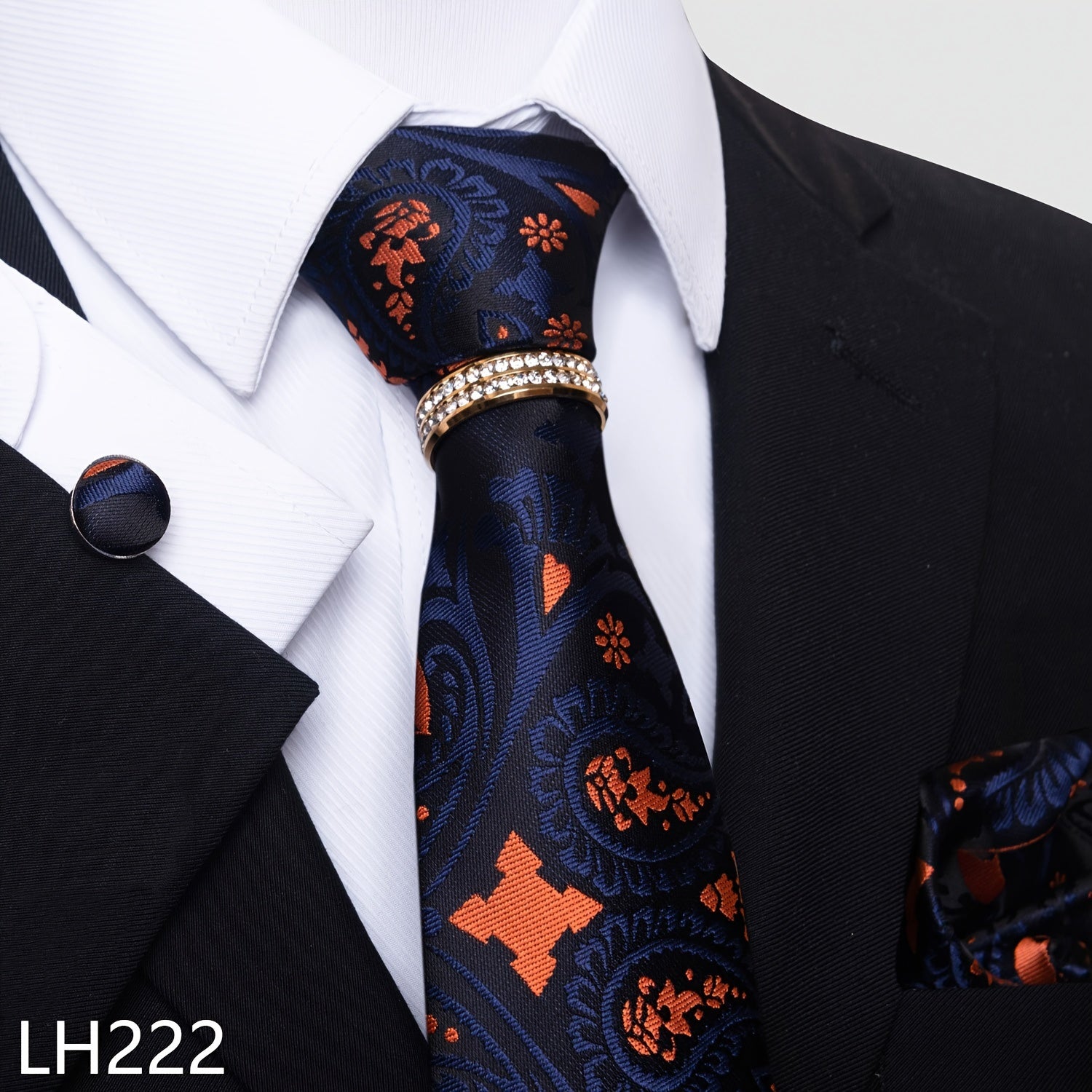 Erkaklar uchun rasmiy ish va to'y kiyimlari to'plami, chiziqli gul naqshli galstuk, cho'ntak sharlari, manşetli kalitlar va uzuk bilan