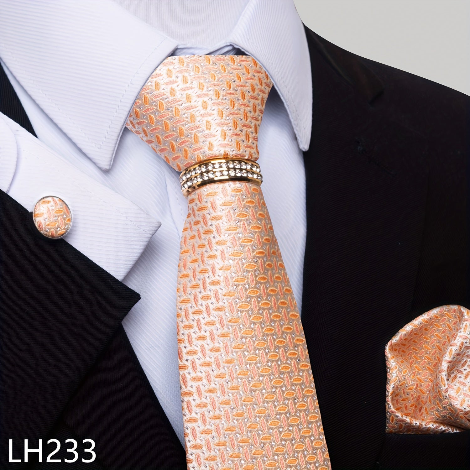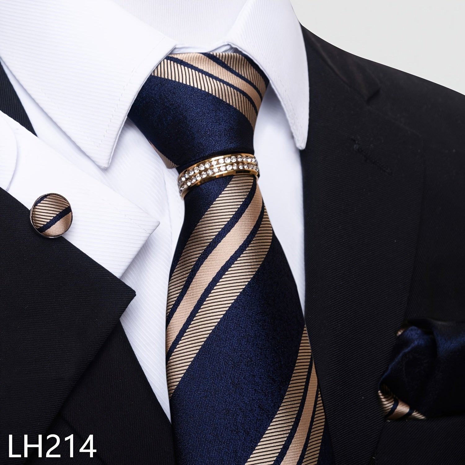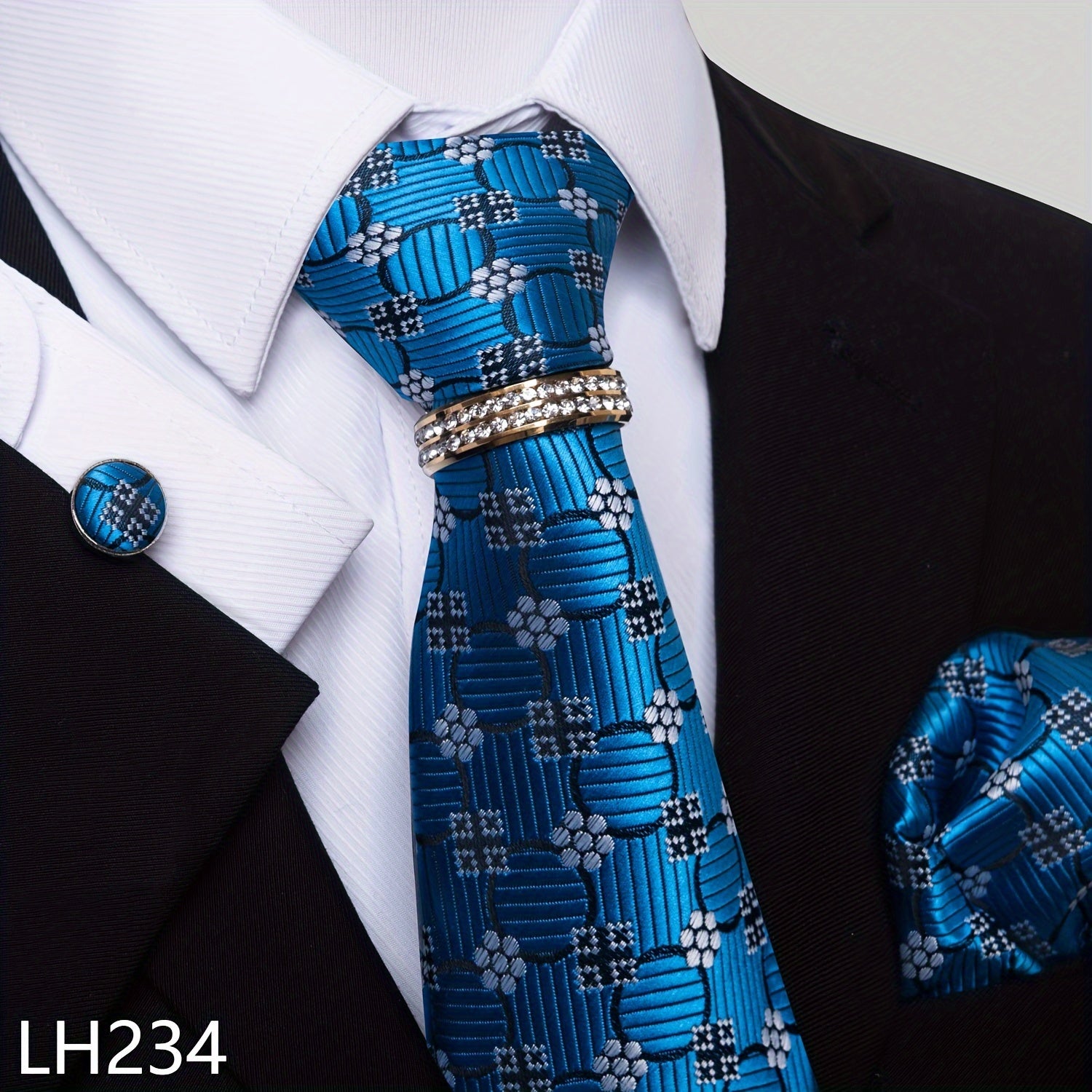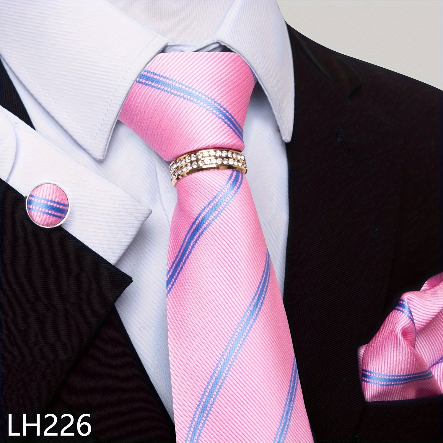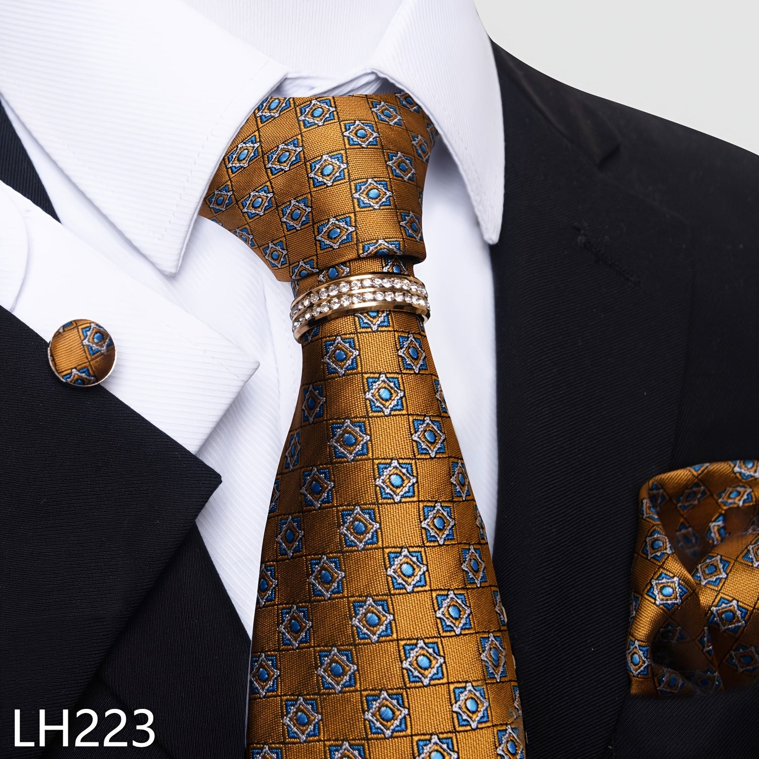 Erkaklar uchun rasmiy ish va to'y kiyimlari to'plami, chiziqli gul naqshli galstuk, cho'ntak sharlari, manşetli kalitlar va uzuk bilan