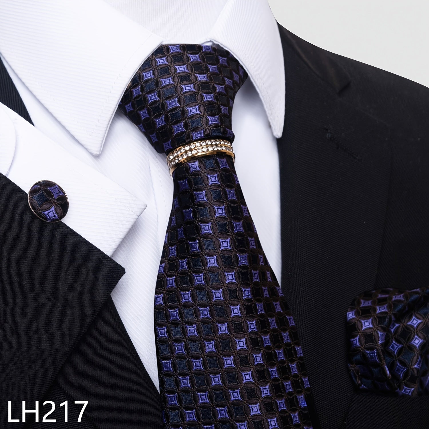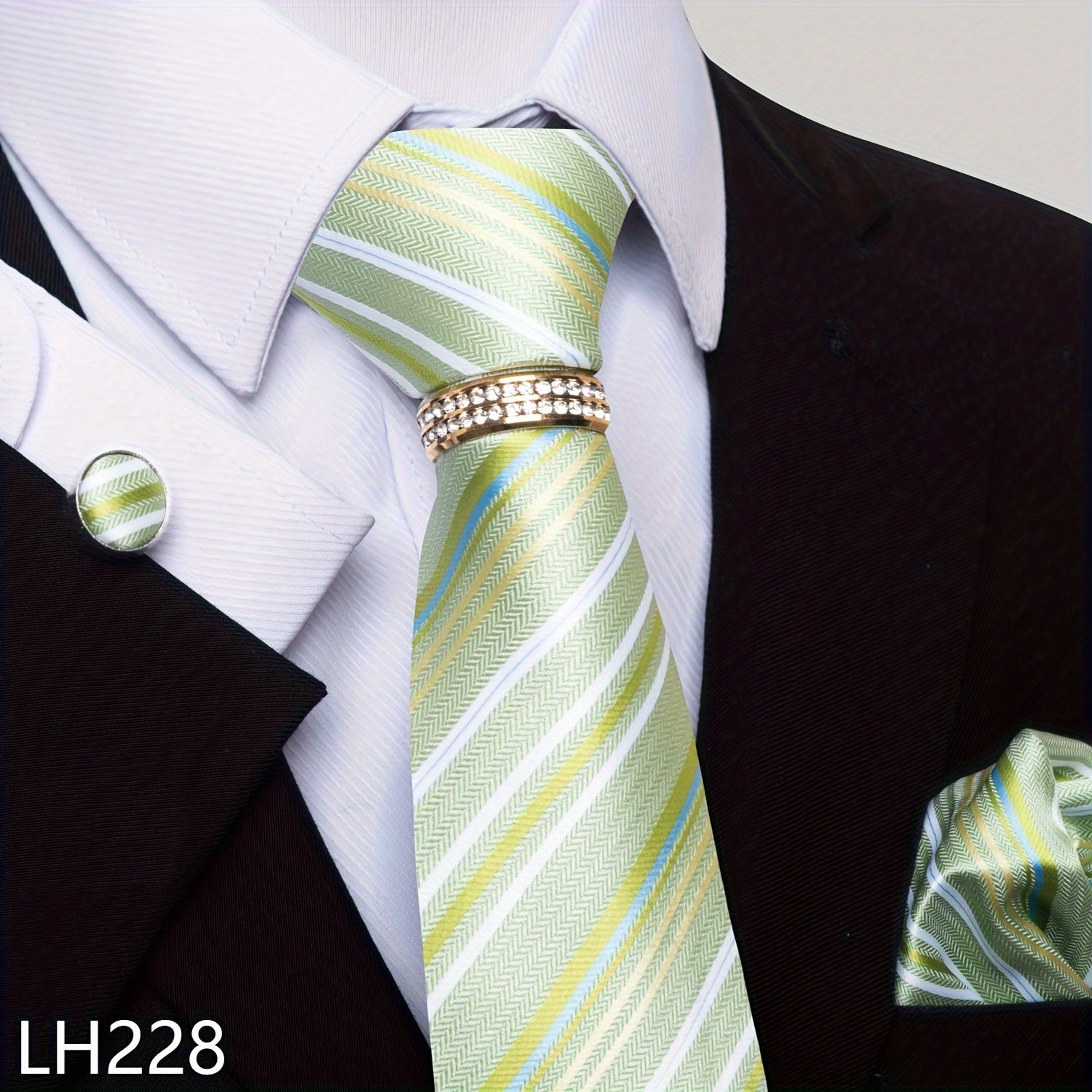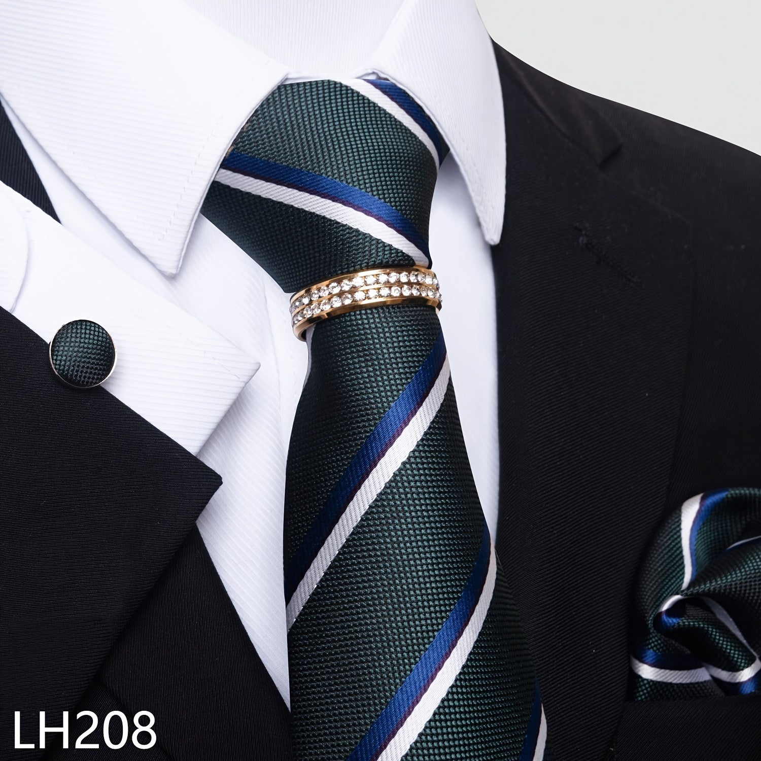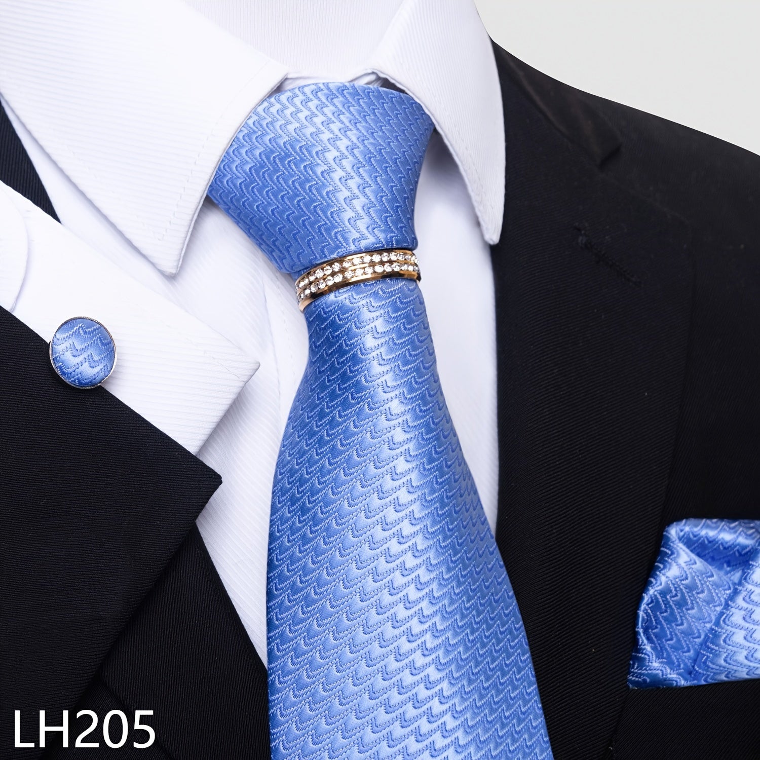 Erkaklar uchun rasmiy ish va to'y kiyimlari to'plami, chiziqli gul naqshli galstuk, cho'ntak sharlari, manşetli kalitlar va uzuk bilan