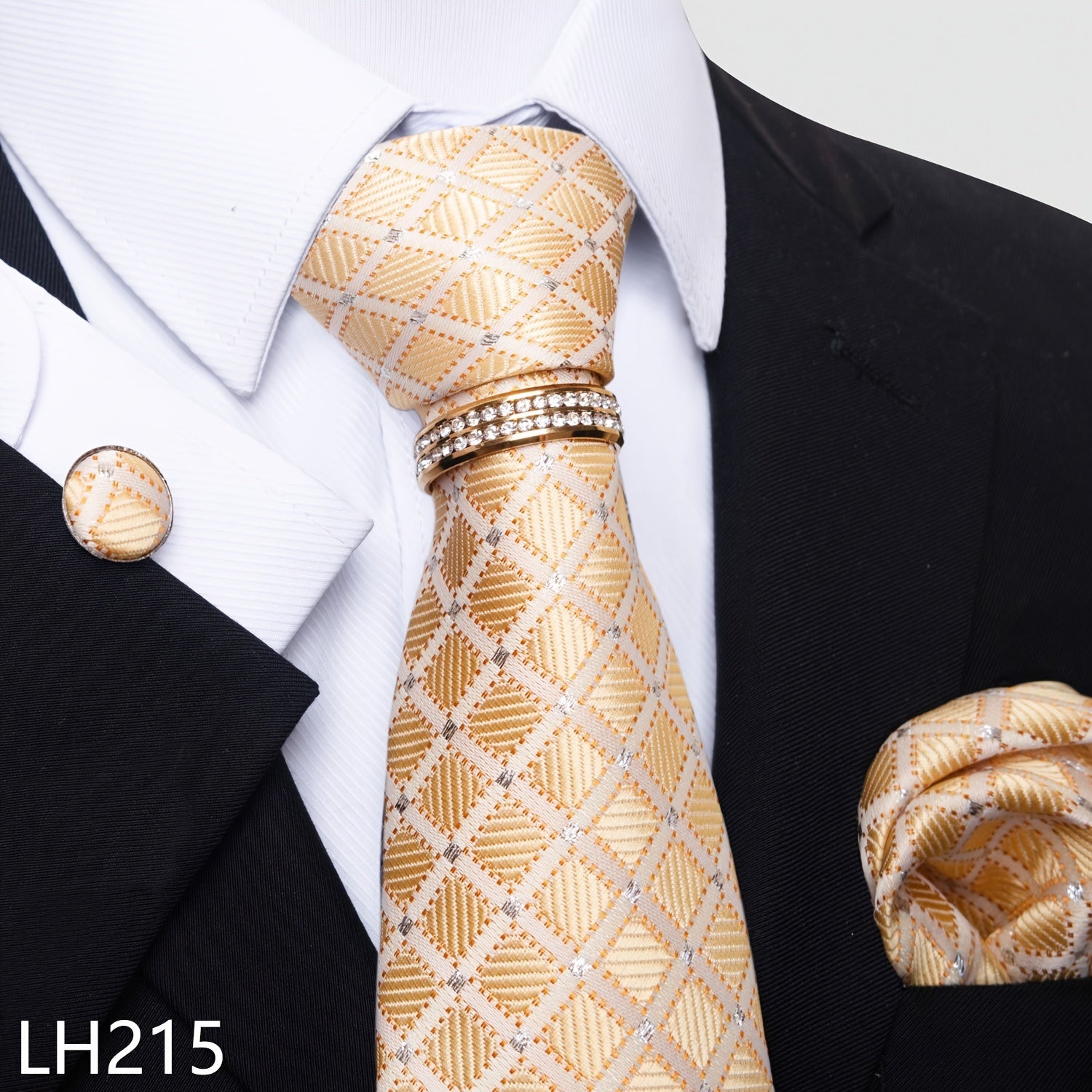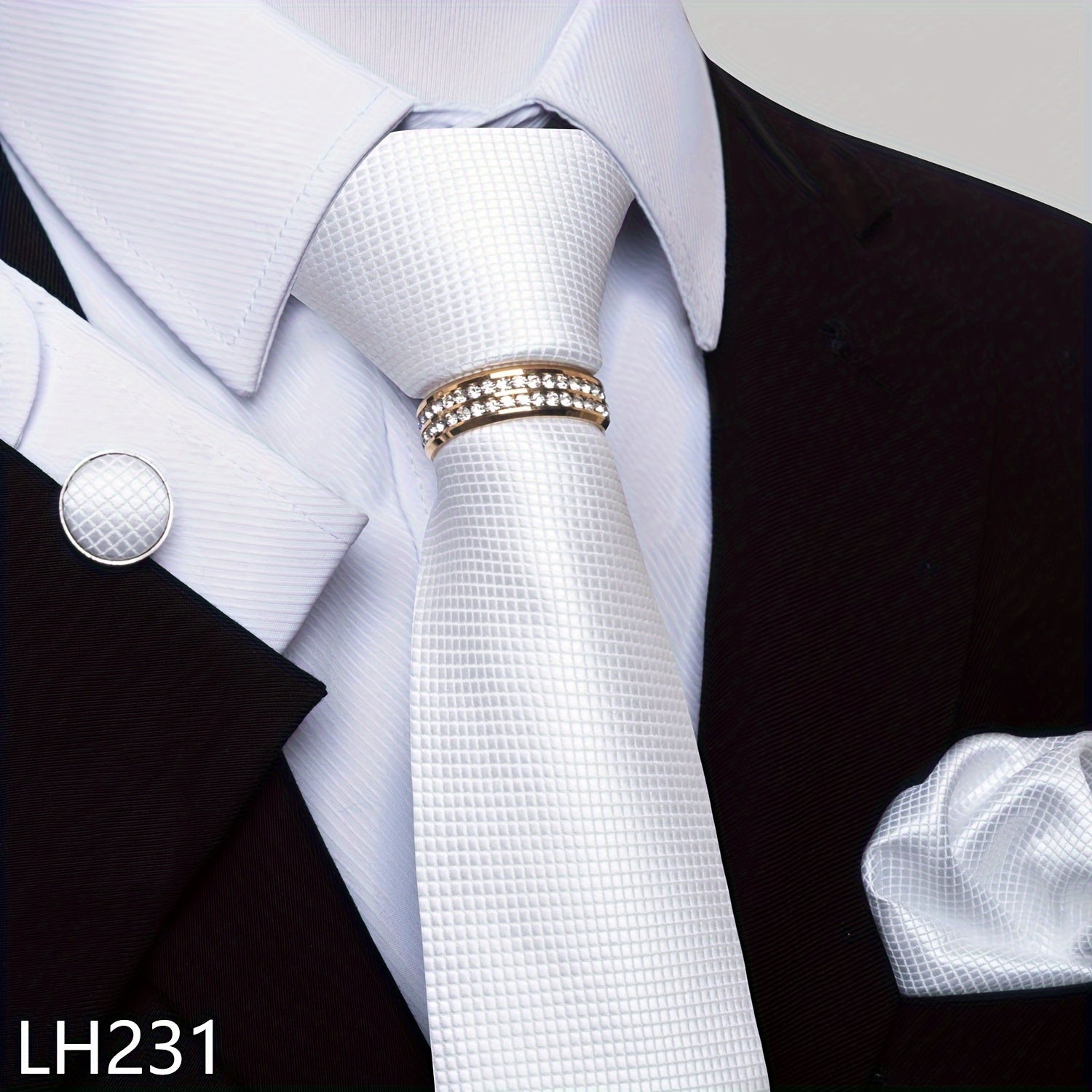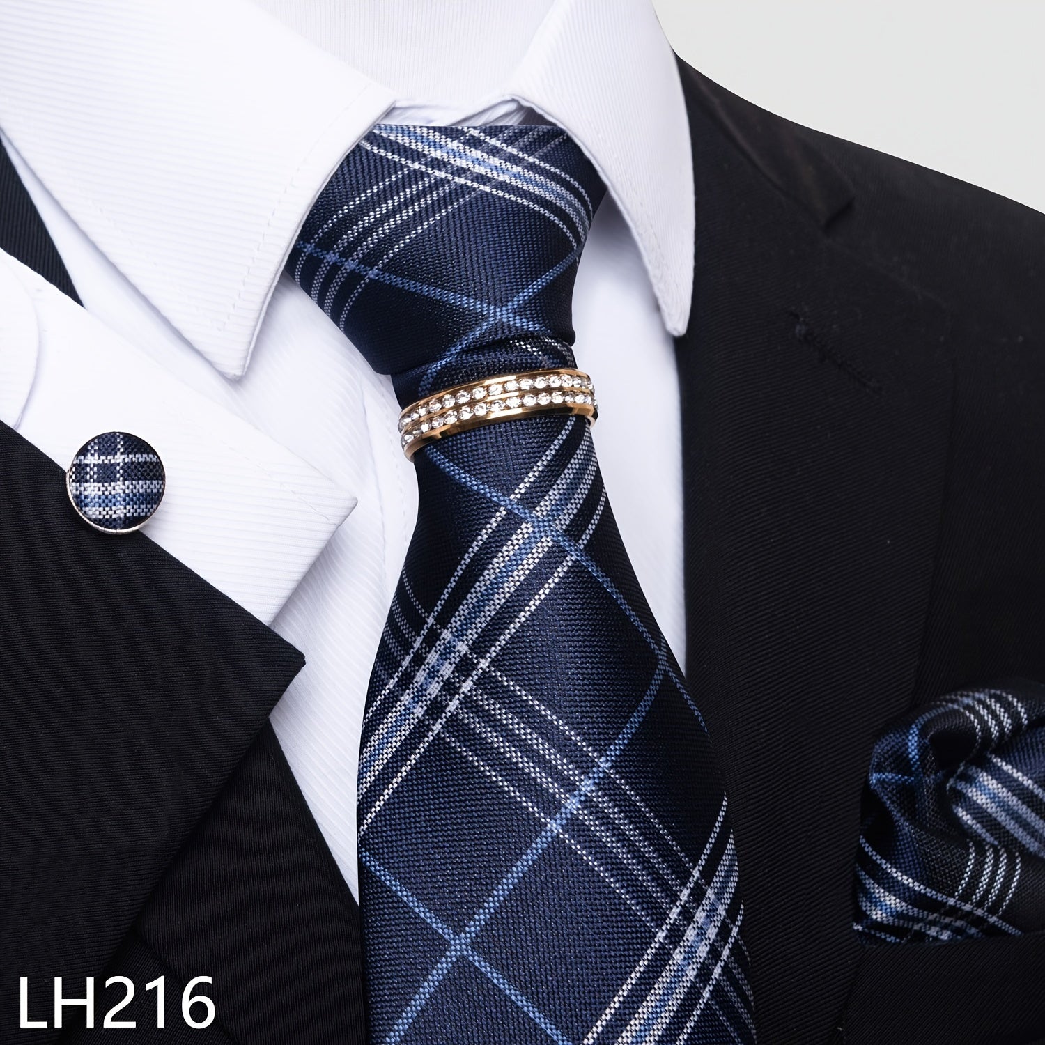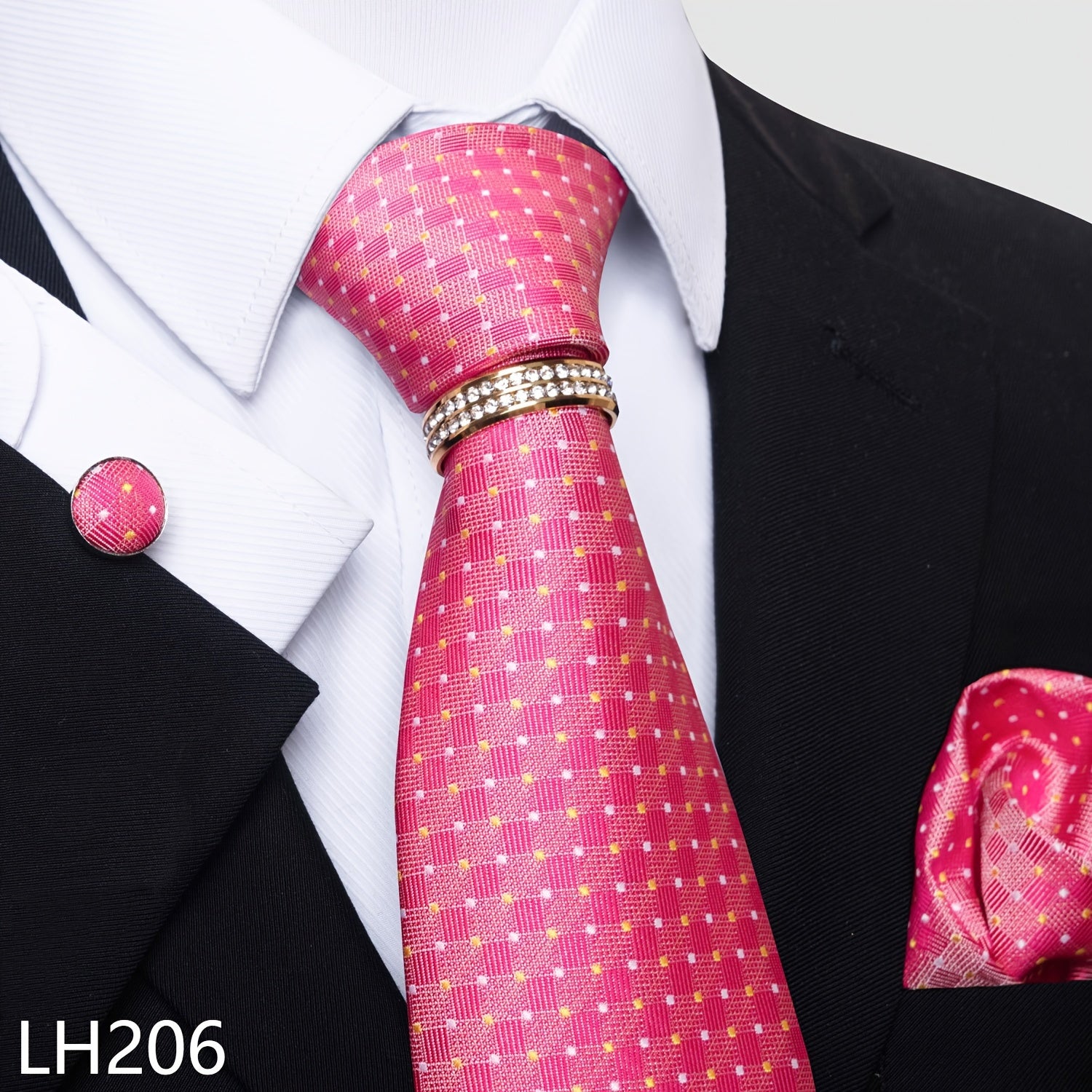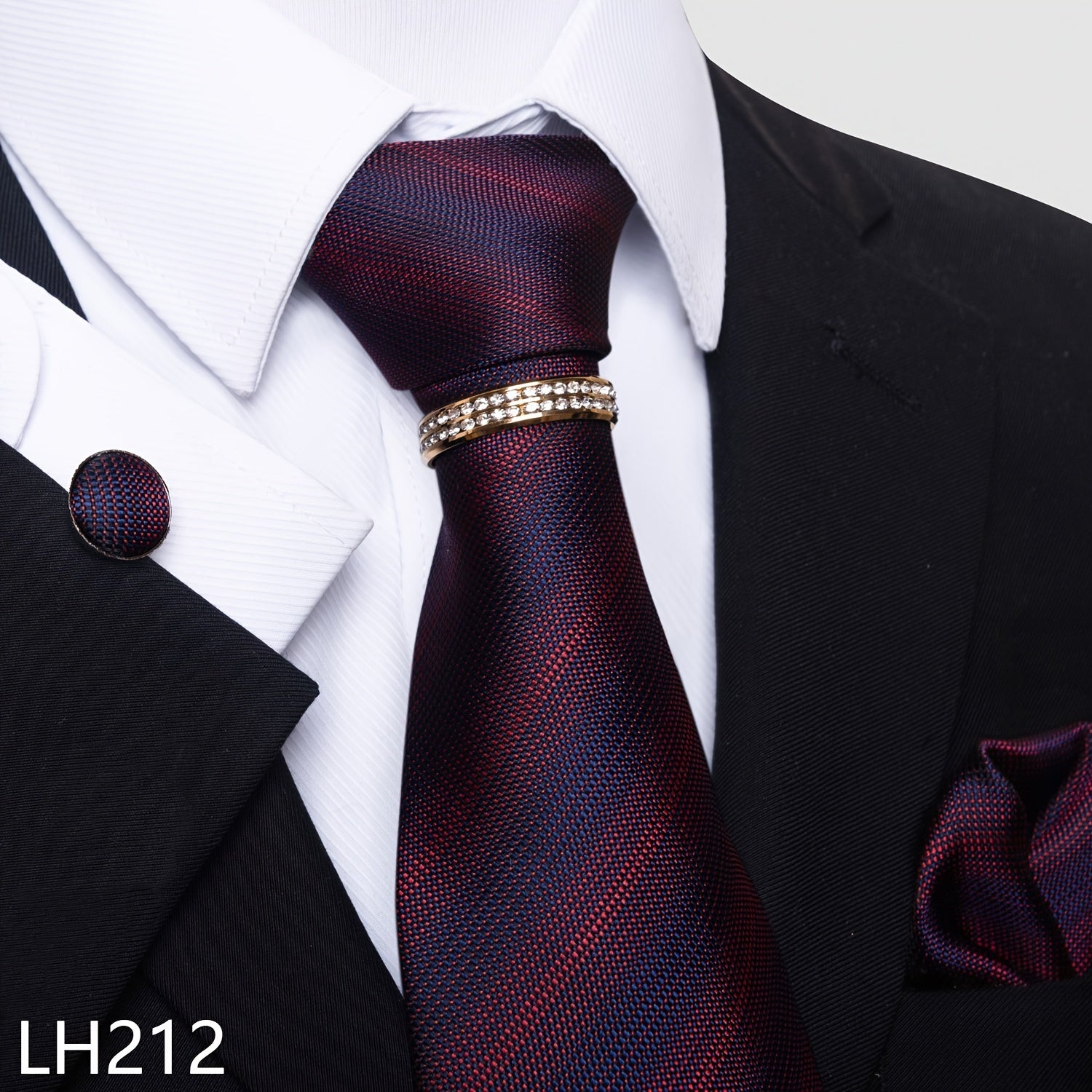 Erkaklar uchun rasmiy ish va to'y kiyimlari to'plami, chiziqli gul naqshli galstuk, cho'ntak sharlari, manşetli kalitlar va uzuk bilan