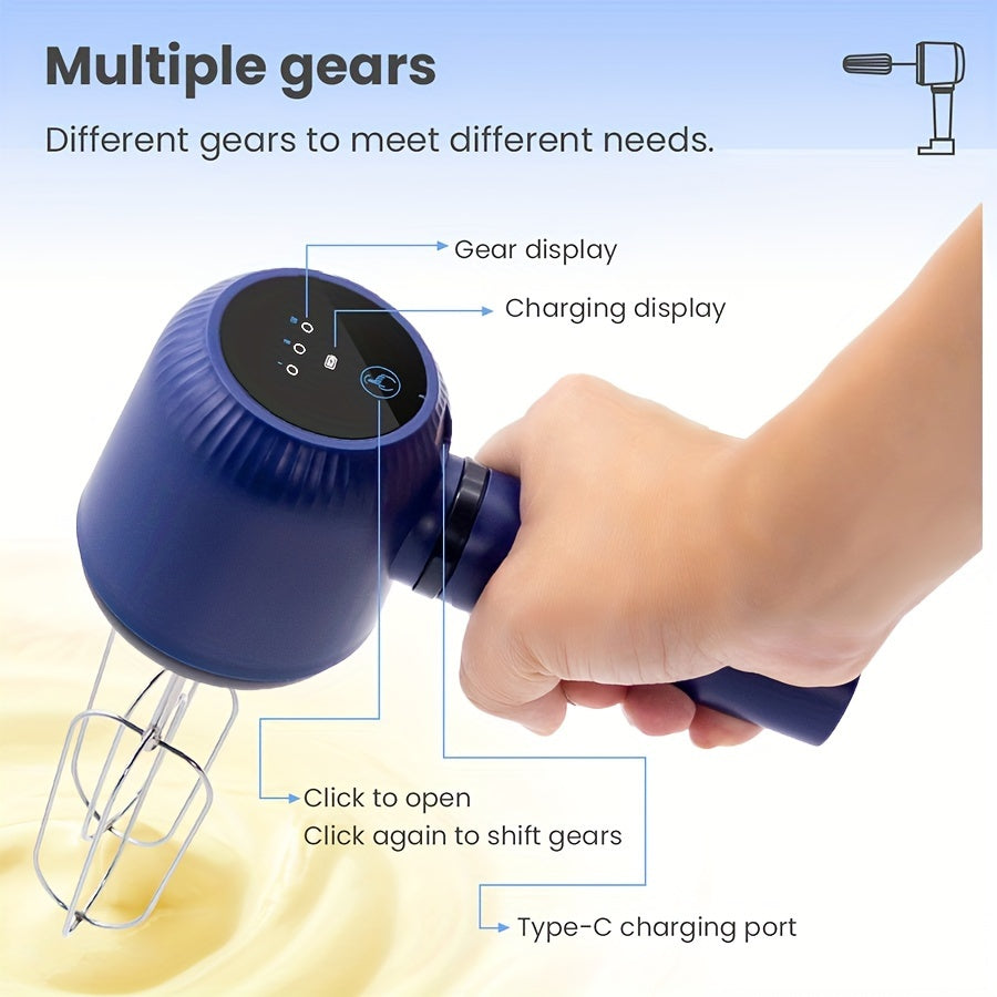 Qayta zaryadlanadigan USB bilan ishlaydigan simsiz elektr qo‘l mikseri, pishirish uchun ikki tomonlama choyshabli qotishmasi