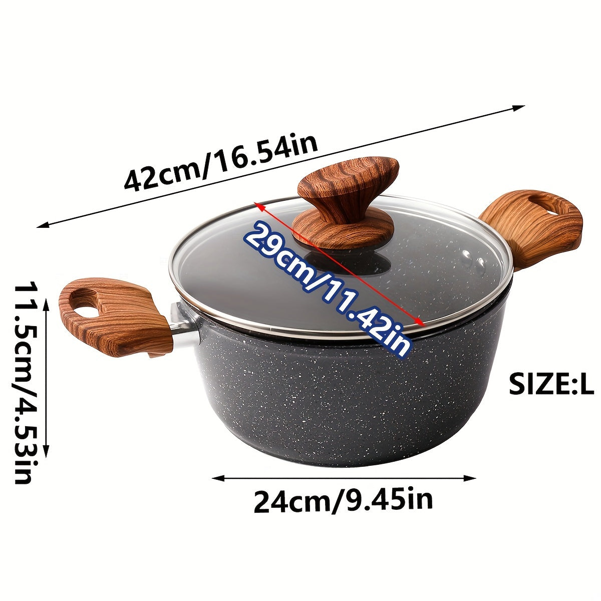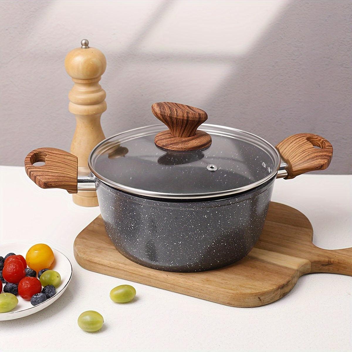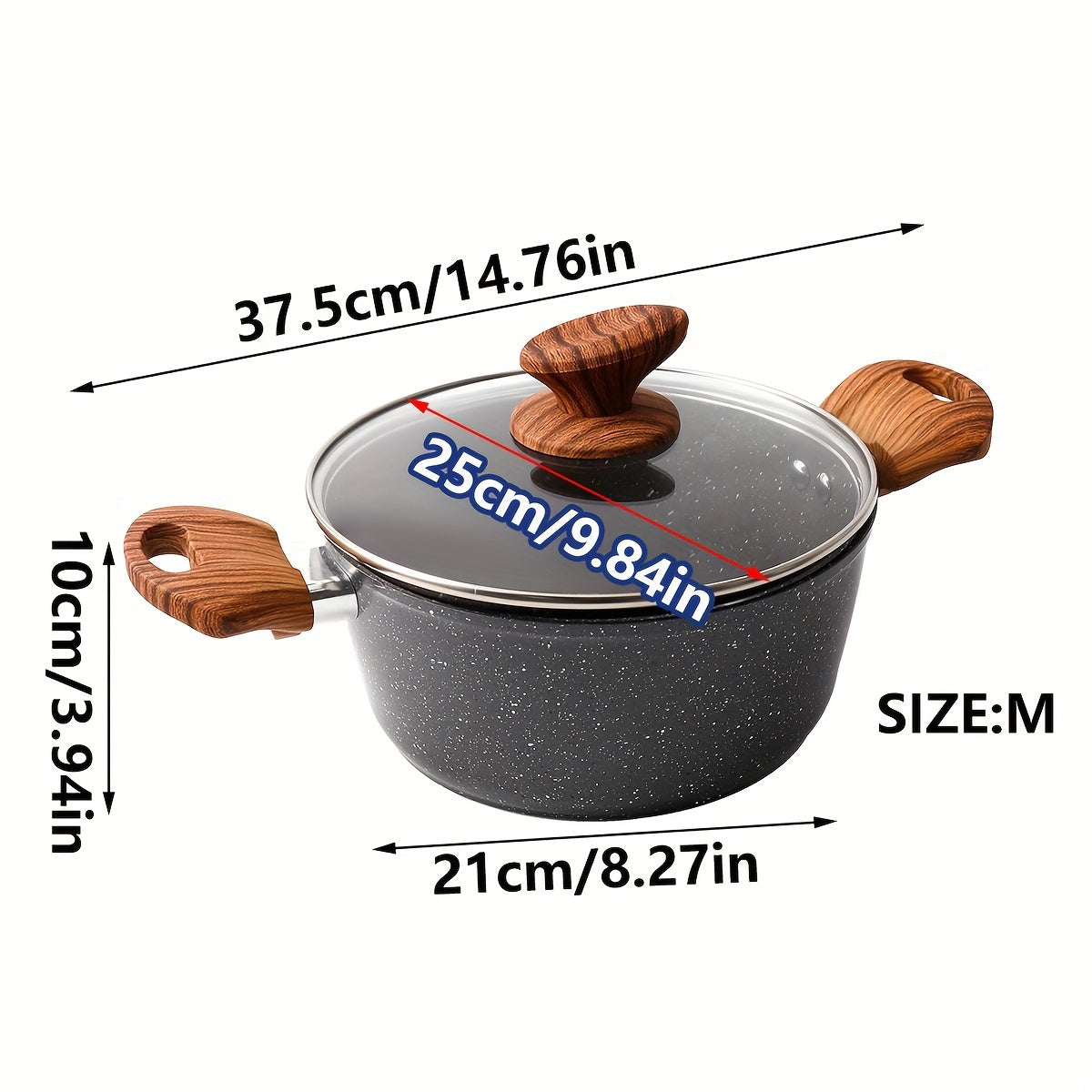 Qoplangan yopishqoq alyuminiy sho'rva qozoni, ikki quloqli tutqichlar bilan - Tez tayyorlanadigan makaron, qaynatish va ramen uchun mukammal - Induksion pechlar va gaz pechlari bilan mos - Thanksgiving va Rojdestvo chiroqlari uchun ajoyib