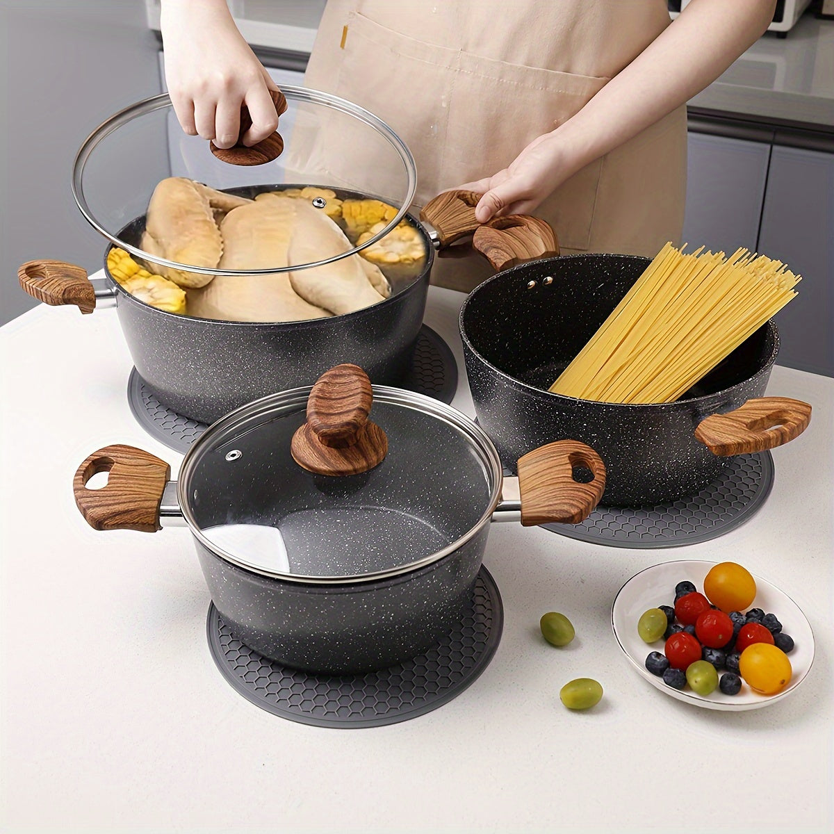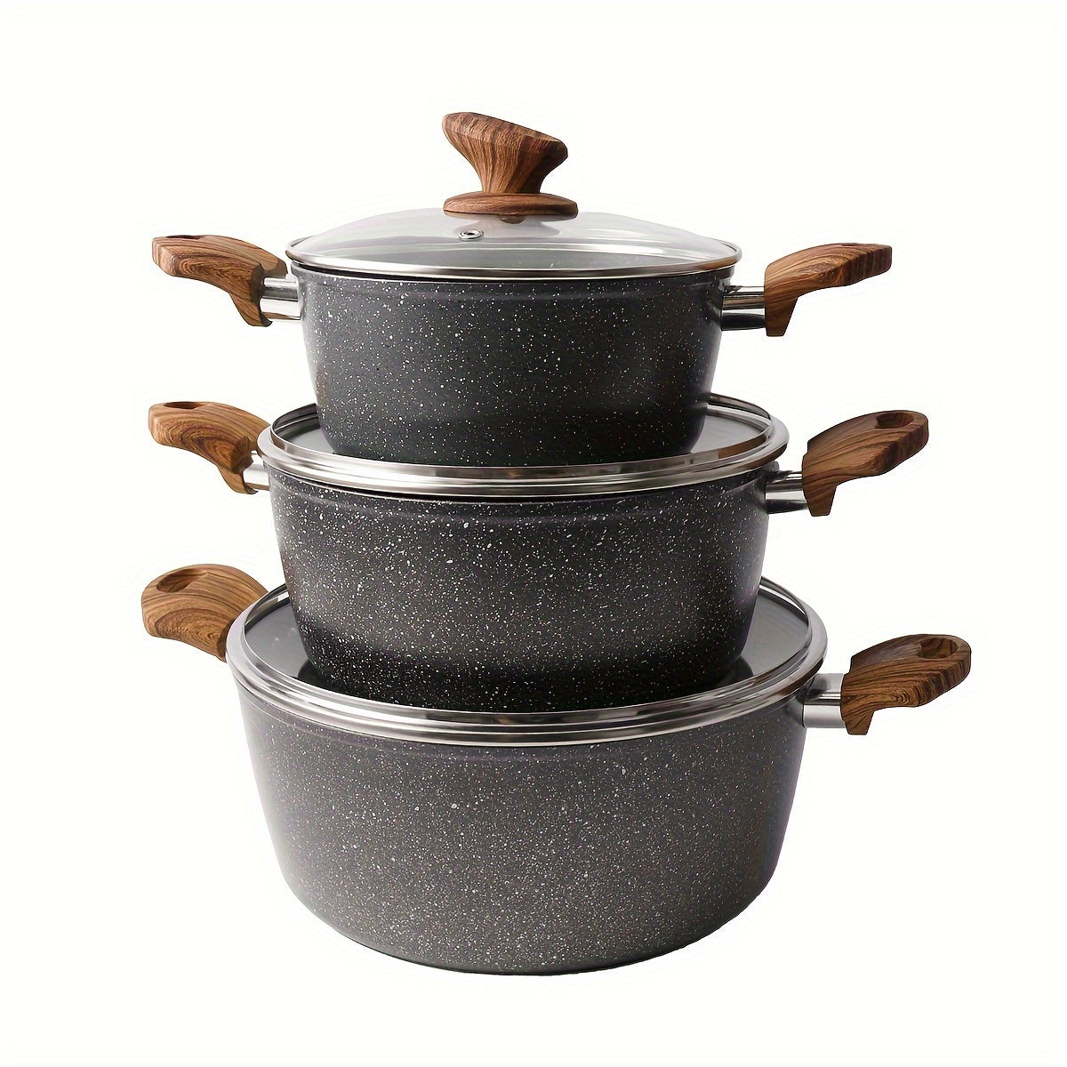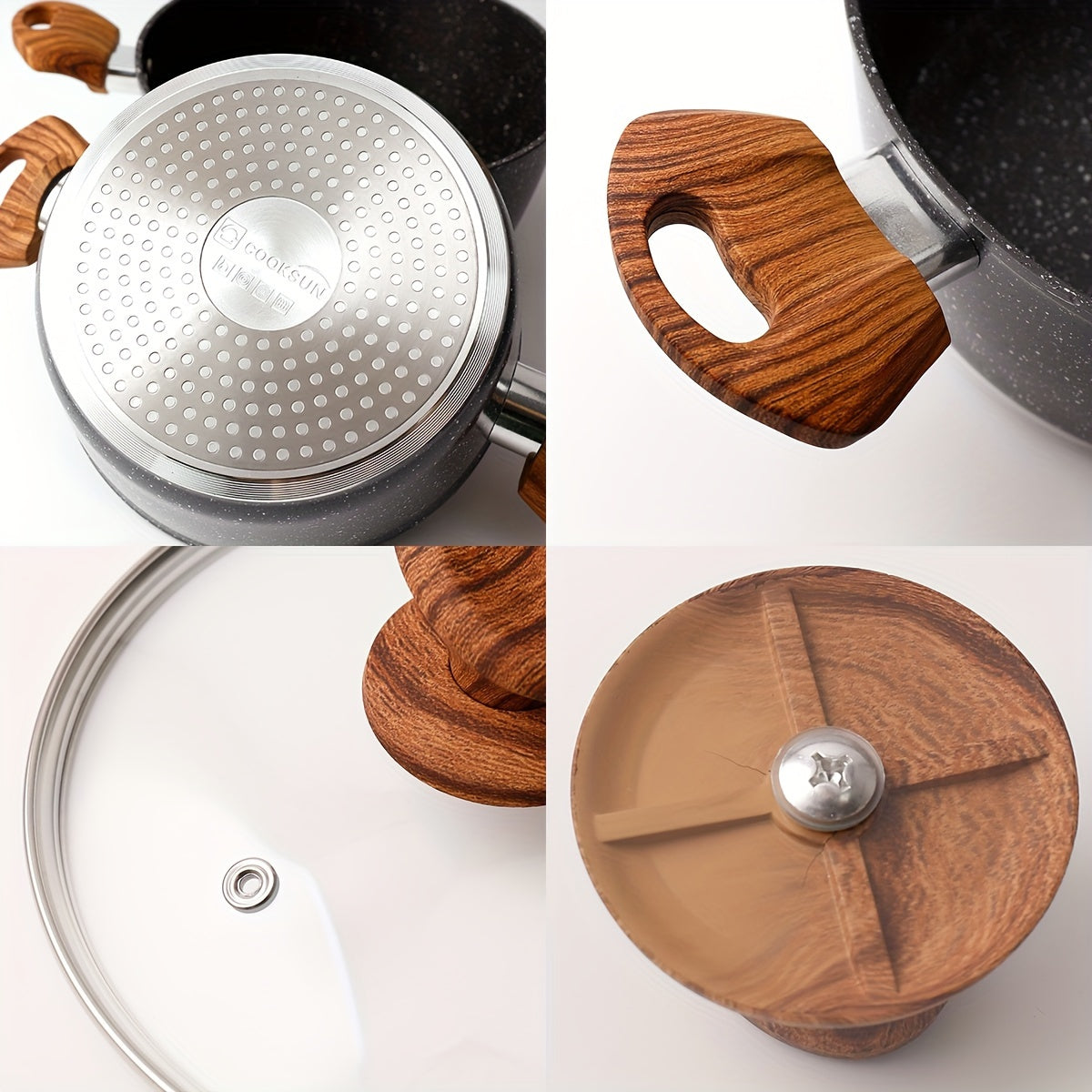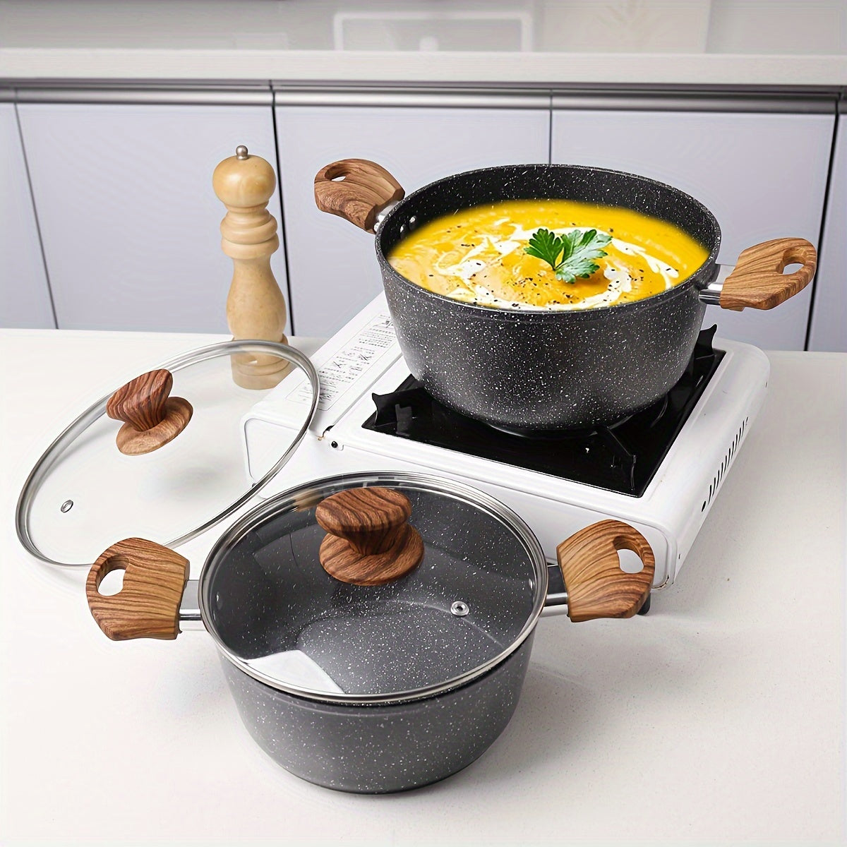 Qoplangan yopishqoq alyuminiy sho'rva qozoni, ikki quloqli tutqichlar bilan - Tez tayyorlanadigan makaron, qaynatish va ramen uchun mukammal - Induksion pechlar va gaz pechlari bilan mos - Thanksgiving va Rojdestvo chiroqlari uchun ajoyib