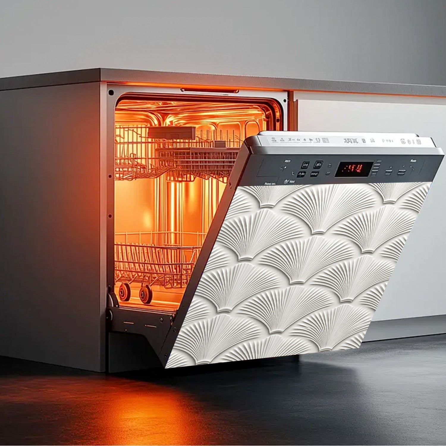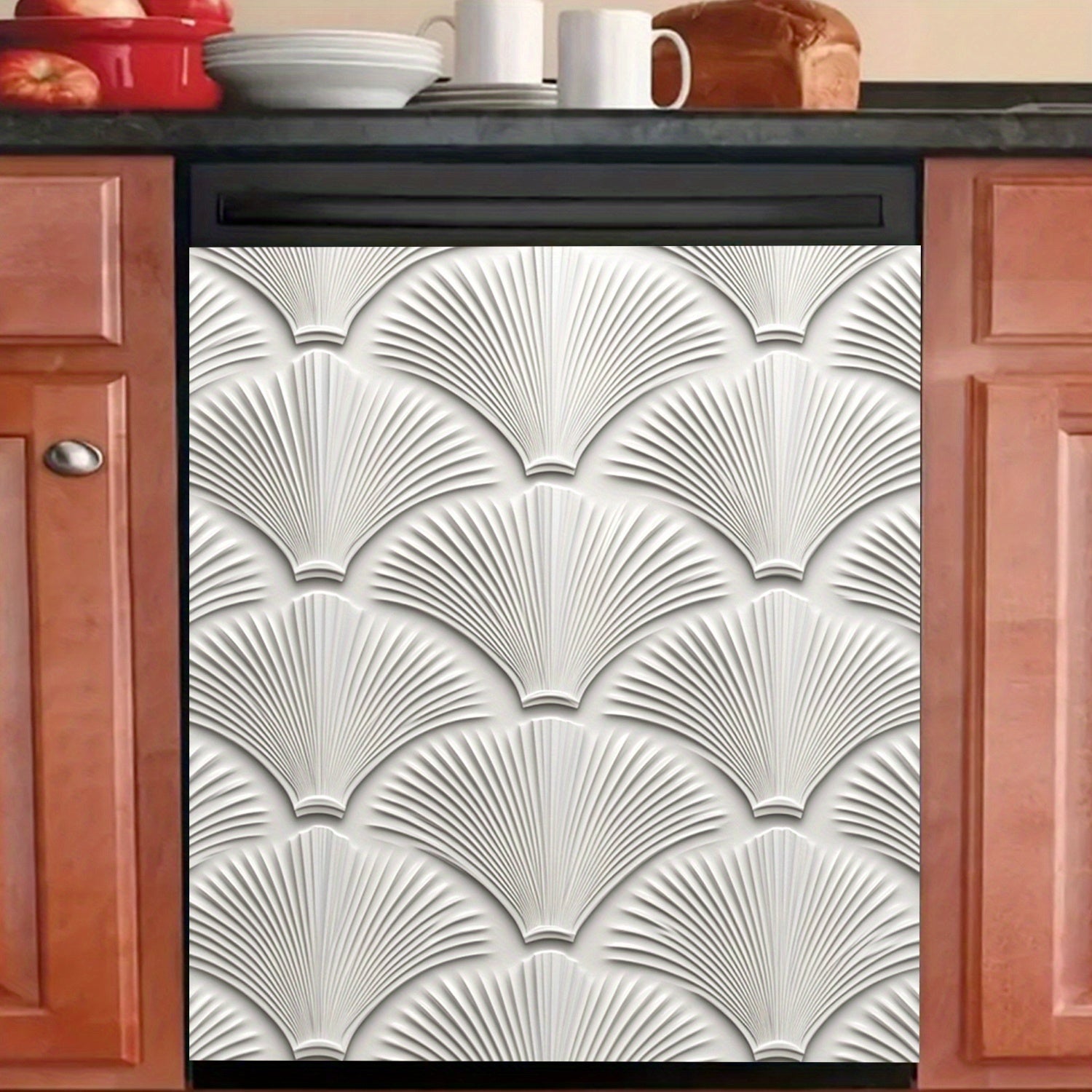 Oq scallop naqshli idish-tovoq magnit qopqog'i, suv o'tkazmaydigan, issiqlikka chidamli PVC 58.5x65 sm