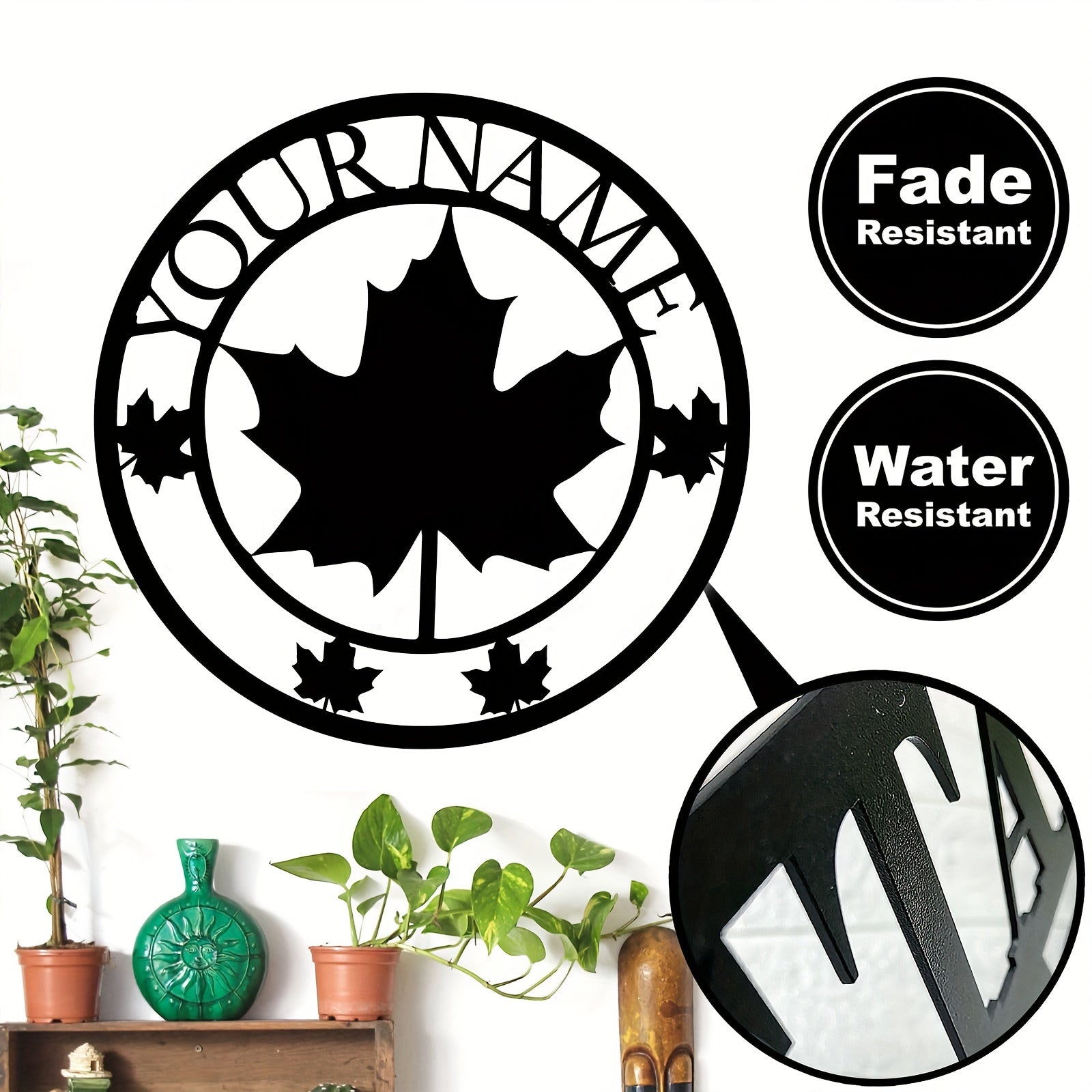 Kanada bezaklari uchun akril yaproq bilan maxsus oilaviy familiya nomi belgisi va metall devor san'ati