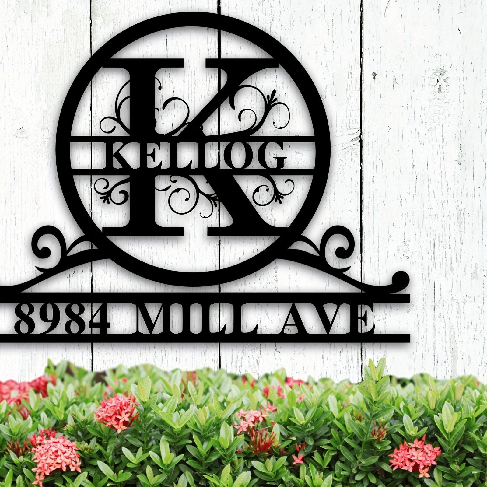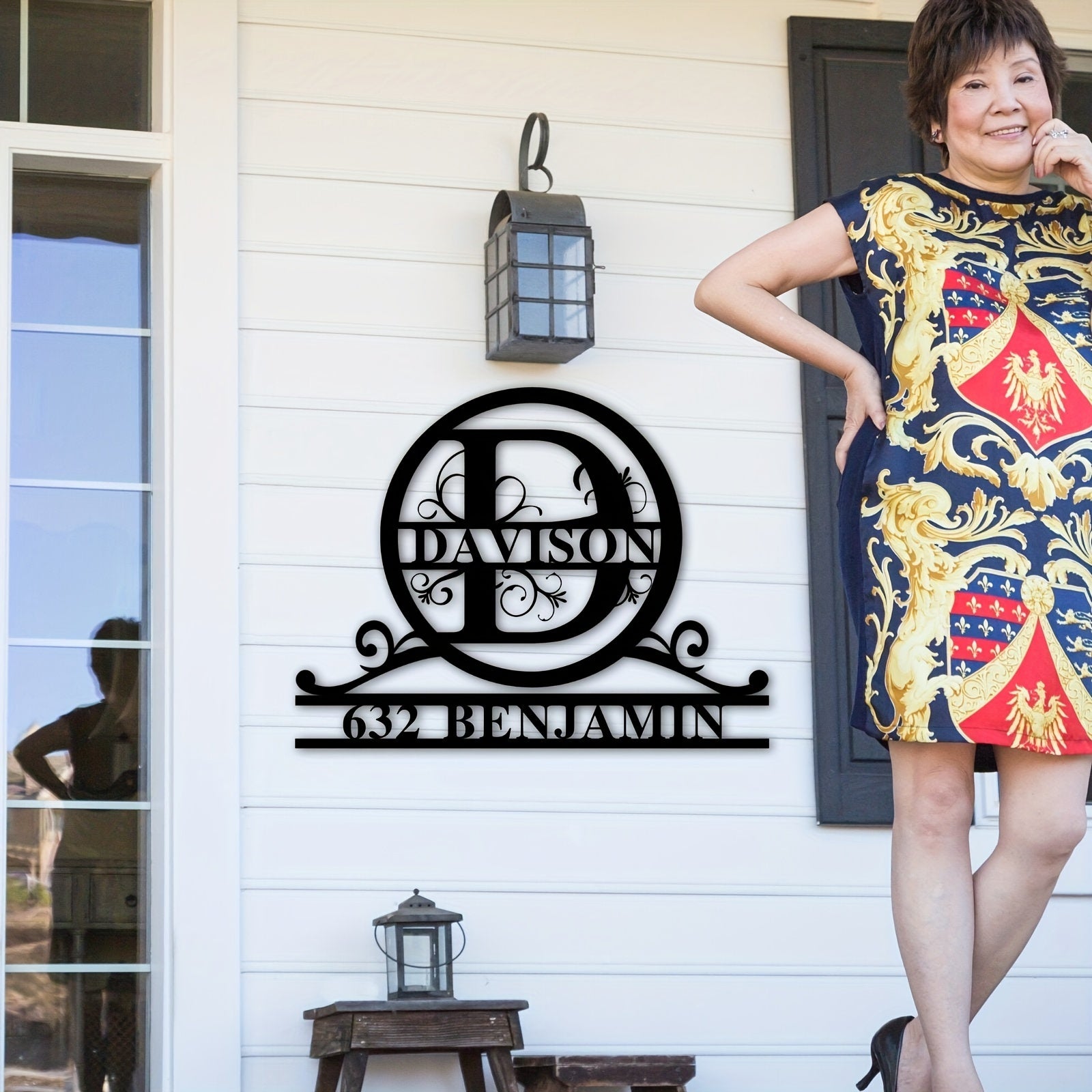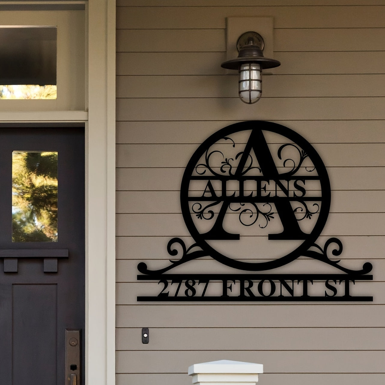Maxsus metall oilaviy nom yozuvi bilan monogram va familiya, ob-havo sharoitiga chidamli, bardoshli va teksturali yakuniy uchun uy bezaklari