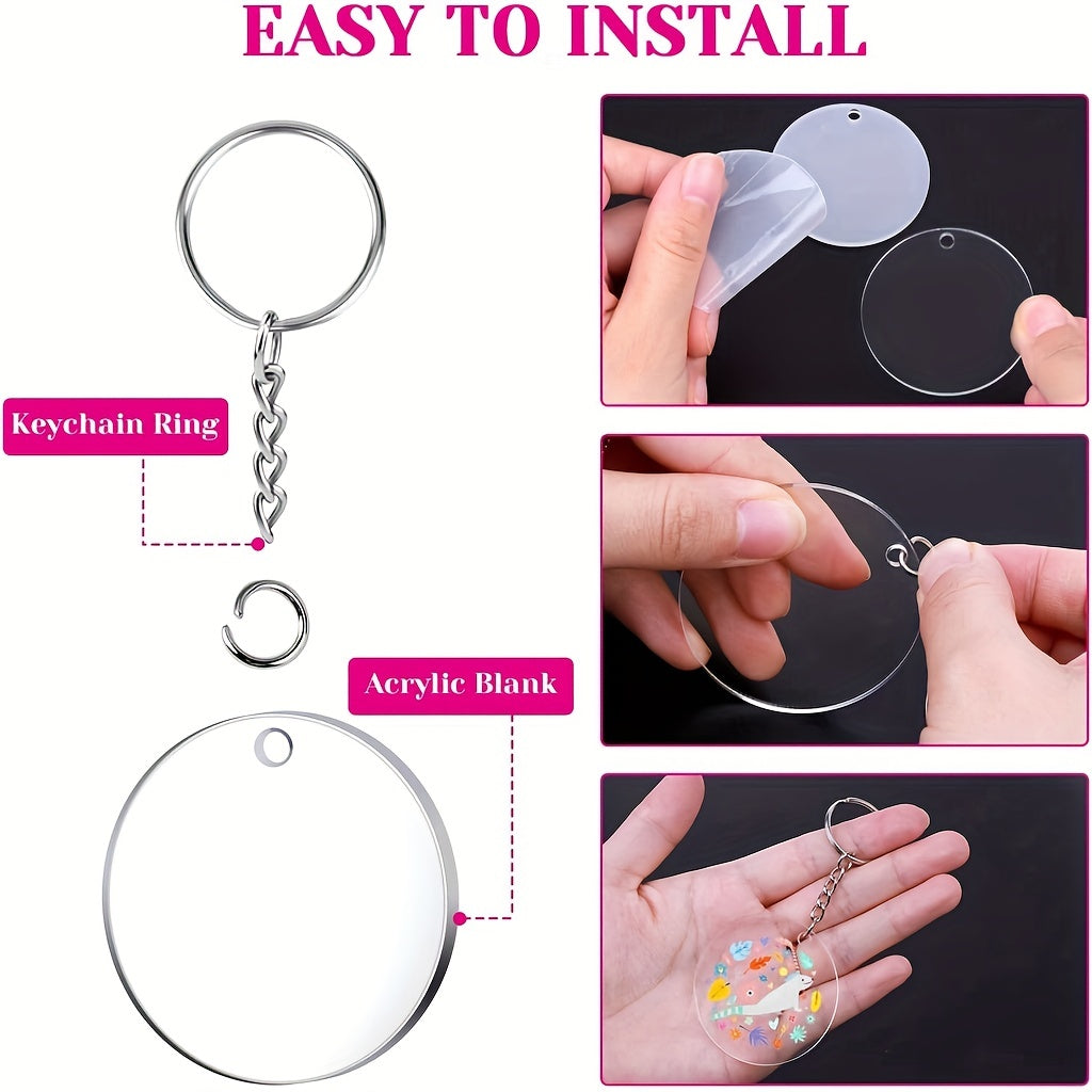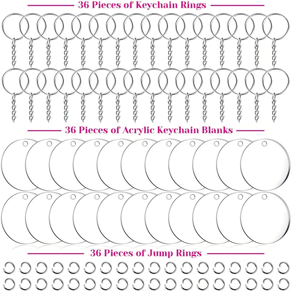 [Mijozlar sevimlisi] 108 ta minimalistik shaffof akril kalit zanjirlar to'plami, qoplamasdan tayyorlangan kumush kalit halqalari va shaxsiylashtirish uchun bo'sh vinil