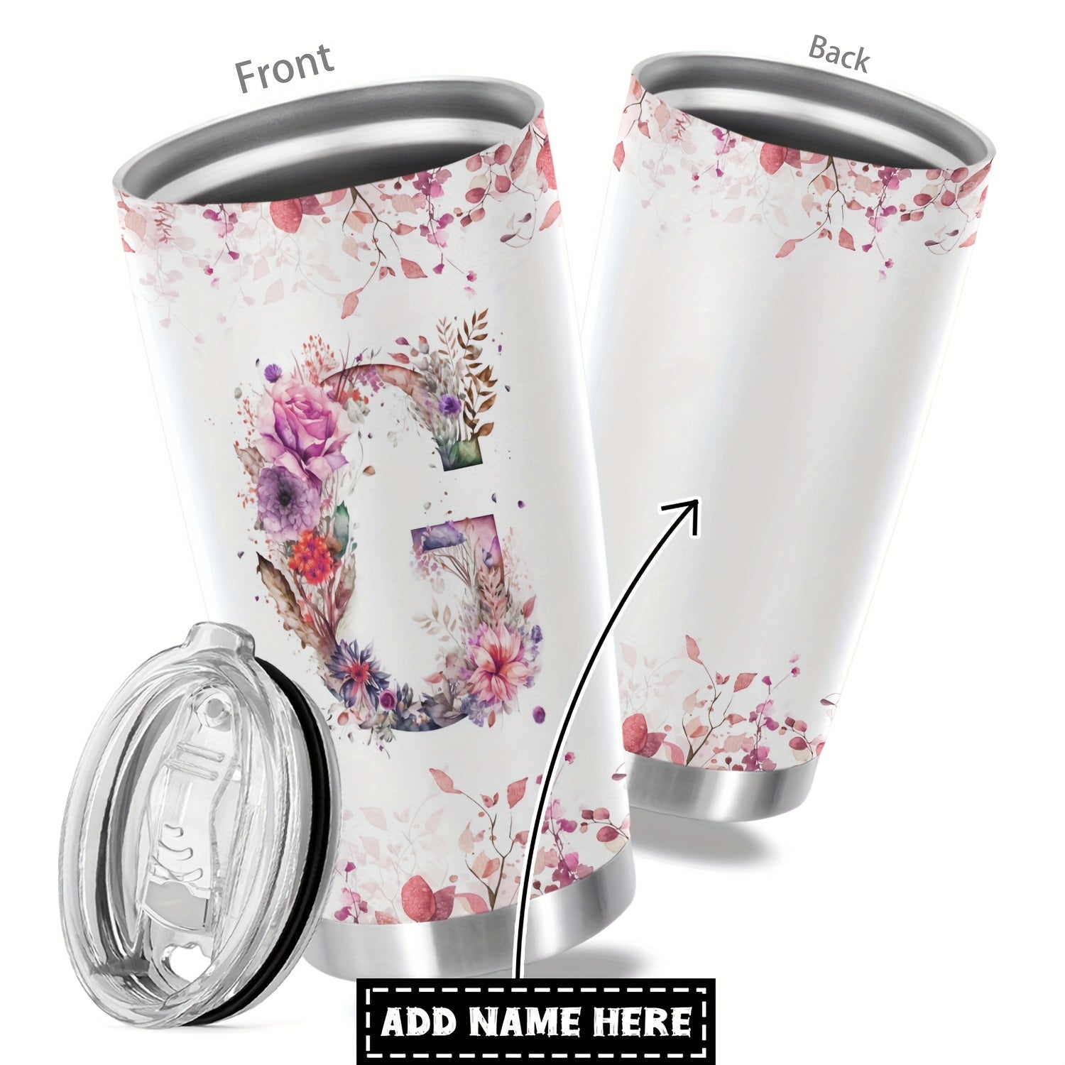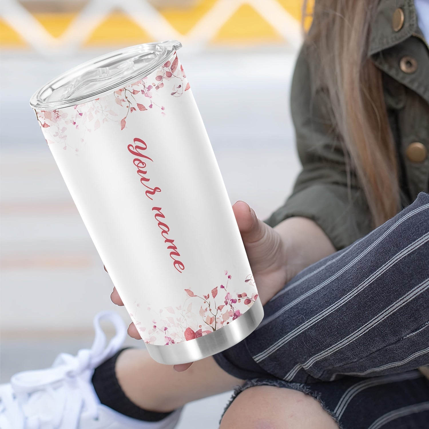 Shaxsiylashtirilgan Ism va Gul Dizayni bilan 20oz Izolyatsiyalangan Rostdan Oltin Terilgan Qattiq Po'latdan Tumbler