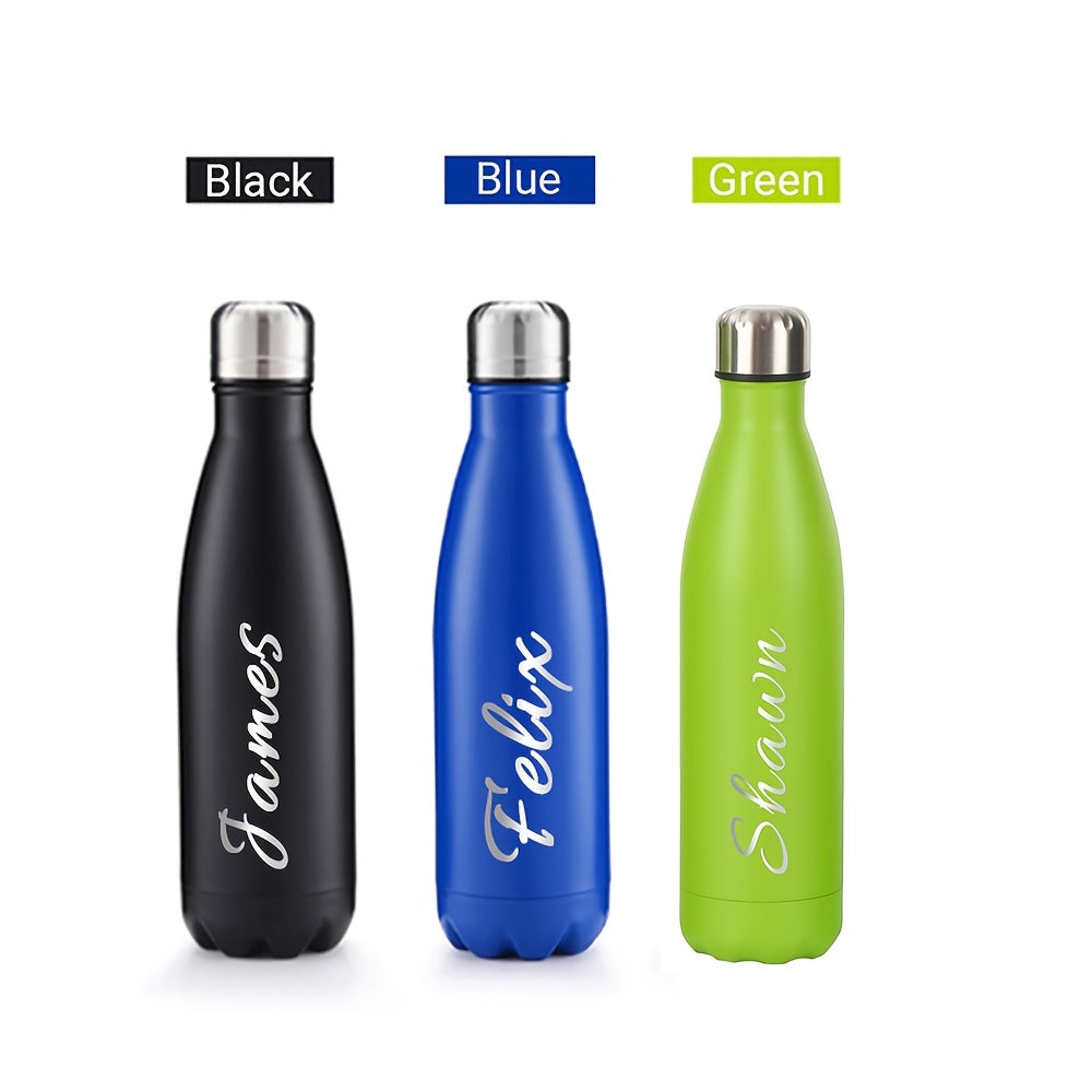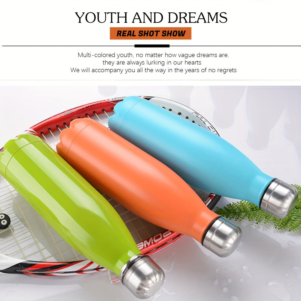 Maxsus ishlab chiqarilgan zanglamas po'latdan yasalgan suv shishasi, 17 oz, oqmas, BPA dan xoli, oval shaklda, sport zali, ofis va ochiq havoda foydalanish uchun izolyatsiyalangan, qo'lda yuvish tavsiya etiladi.