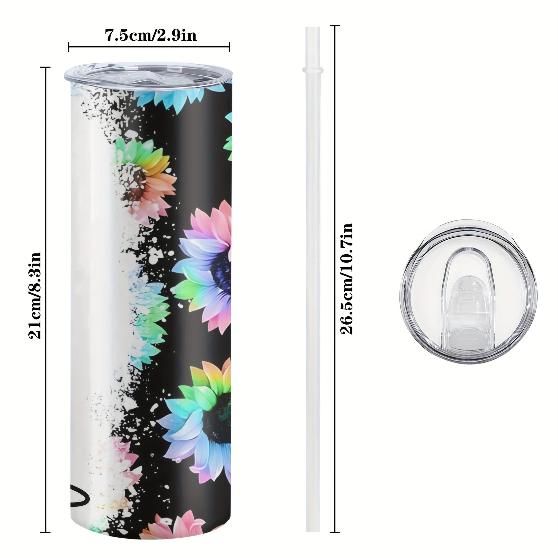 Maxsus quyosh gulidan yasalgan zanglamas po'latdan qilingan suv shishasi, 20oz, qopqoq va qalamcha bilan, BPA-siz, sindirishga chidamli, mashinada yuvish mumkin, ochiq havoda sayohat qilish uchun va 14-fevral sovg'asi uchun mukammal.