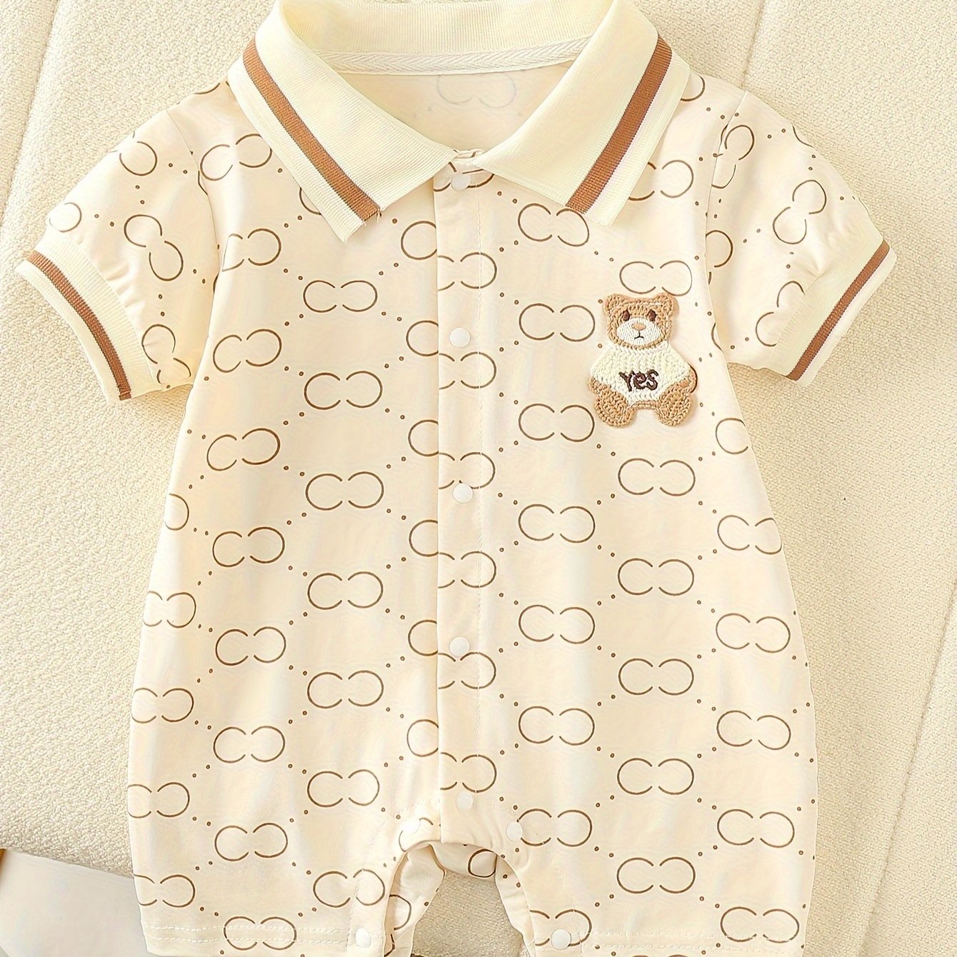 Kichkina qizlar uchun paxta romper yozgi, qisqa qoʻl, butun bo'yi bosma, tizza uzunligi