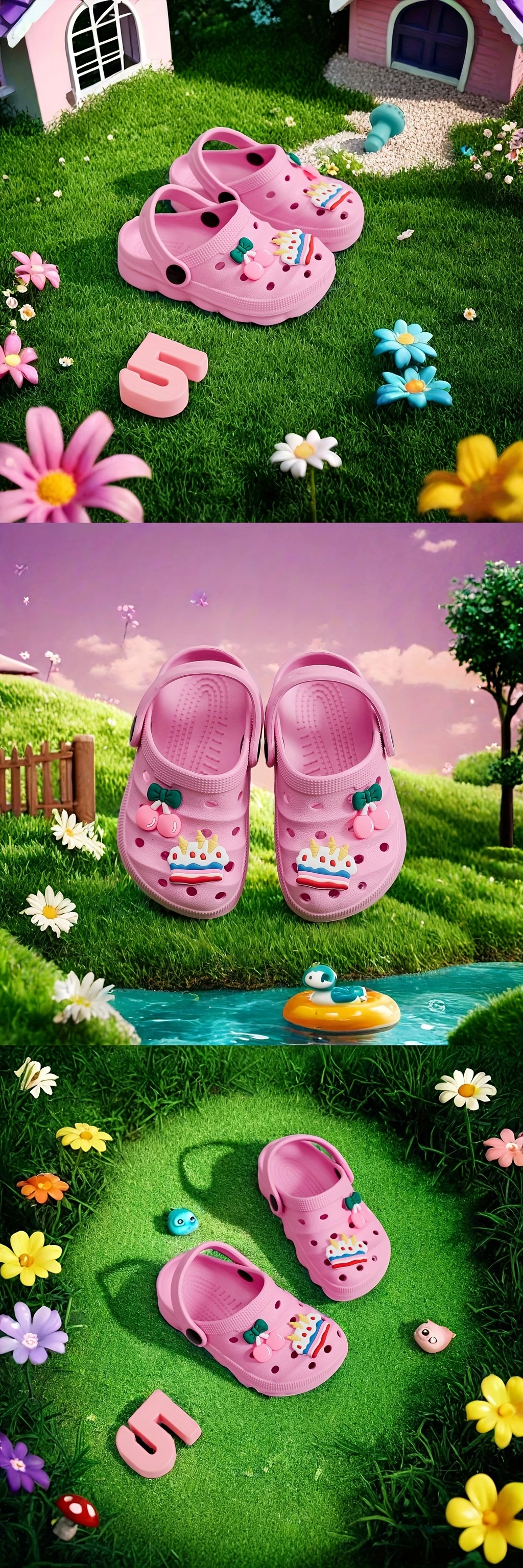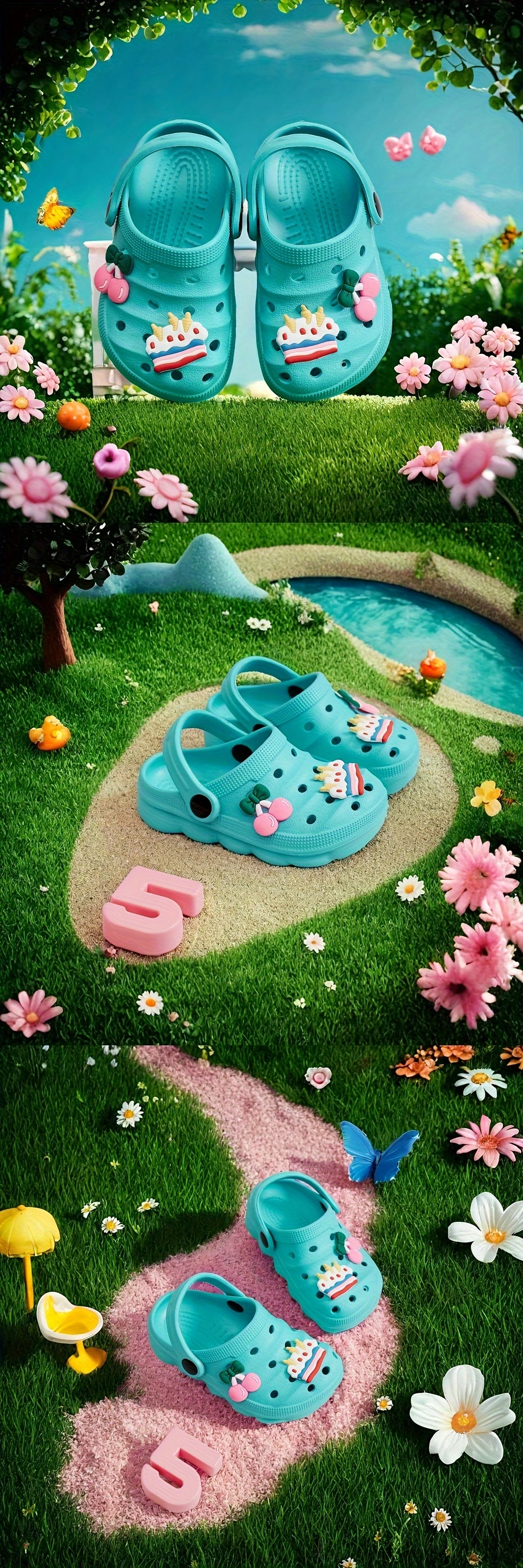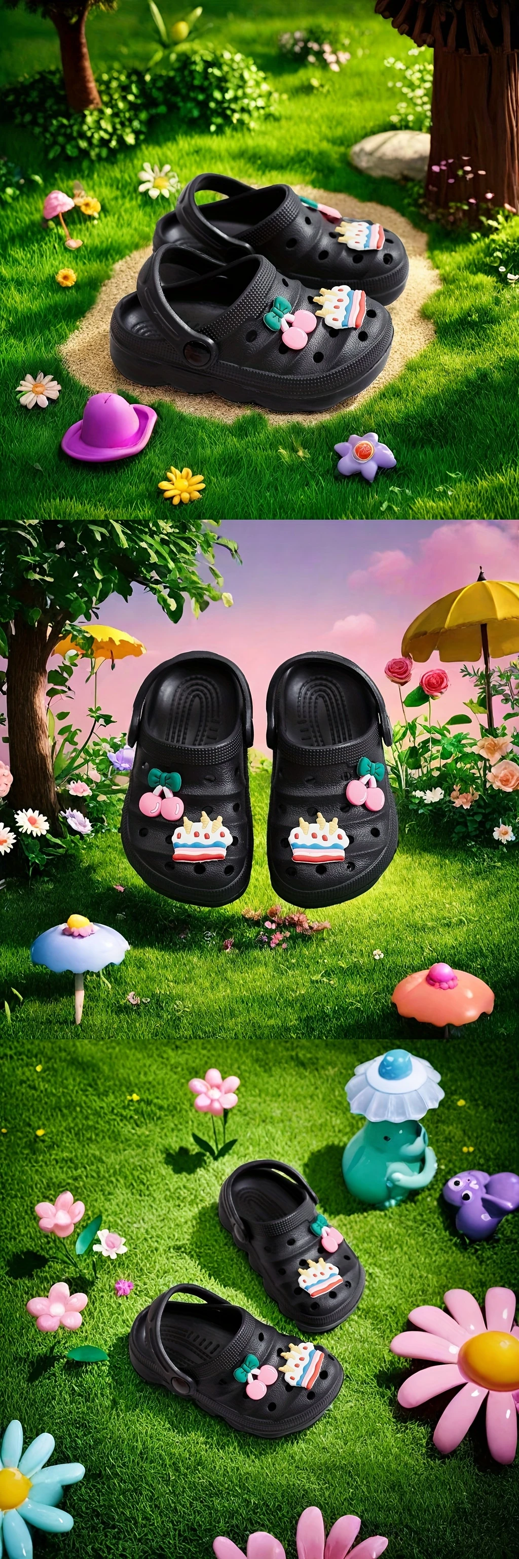Qizlar uchun chiroyli multfilm charm kloplar, ichki va tashqi foydalanish uchun nafas oladigan va tez quriydigan, sirpanishga qarshi taglik bilan.