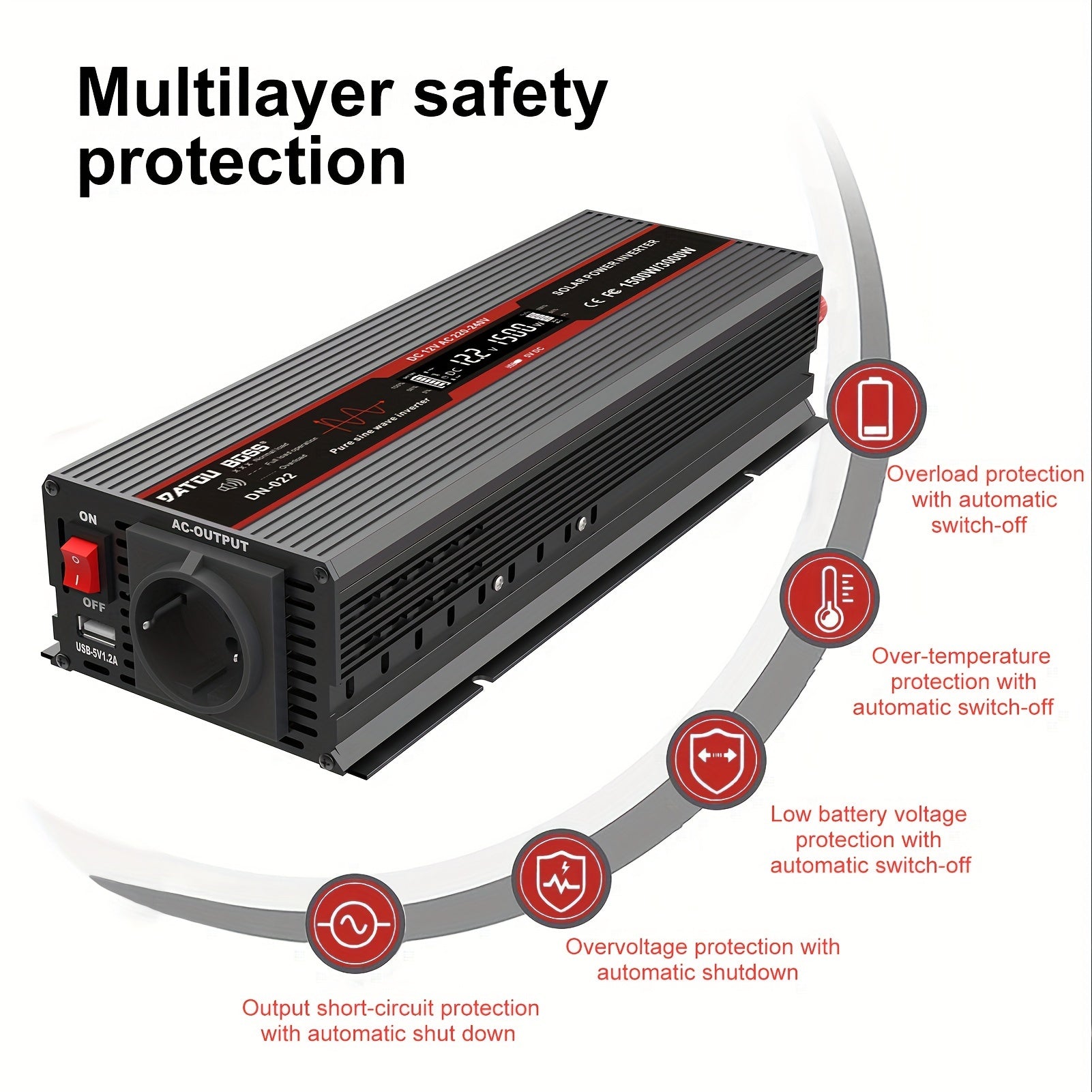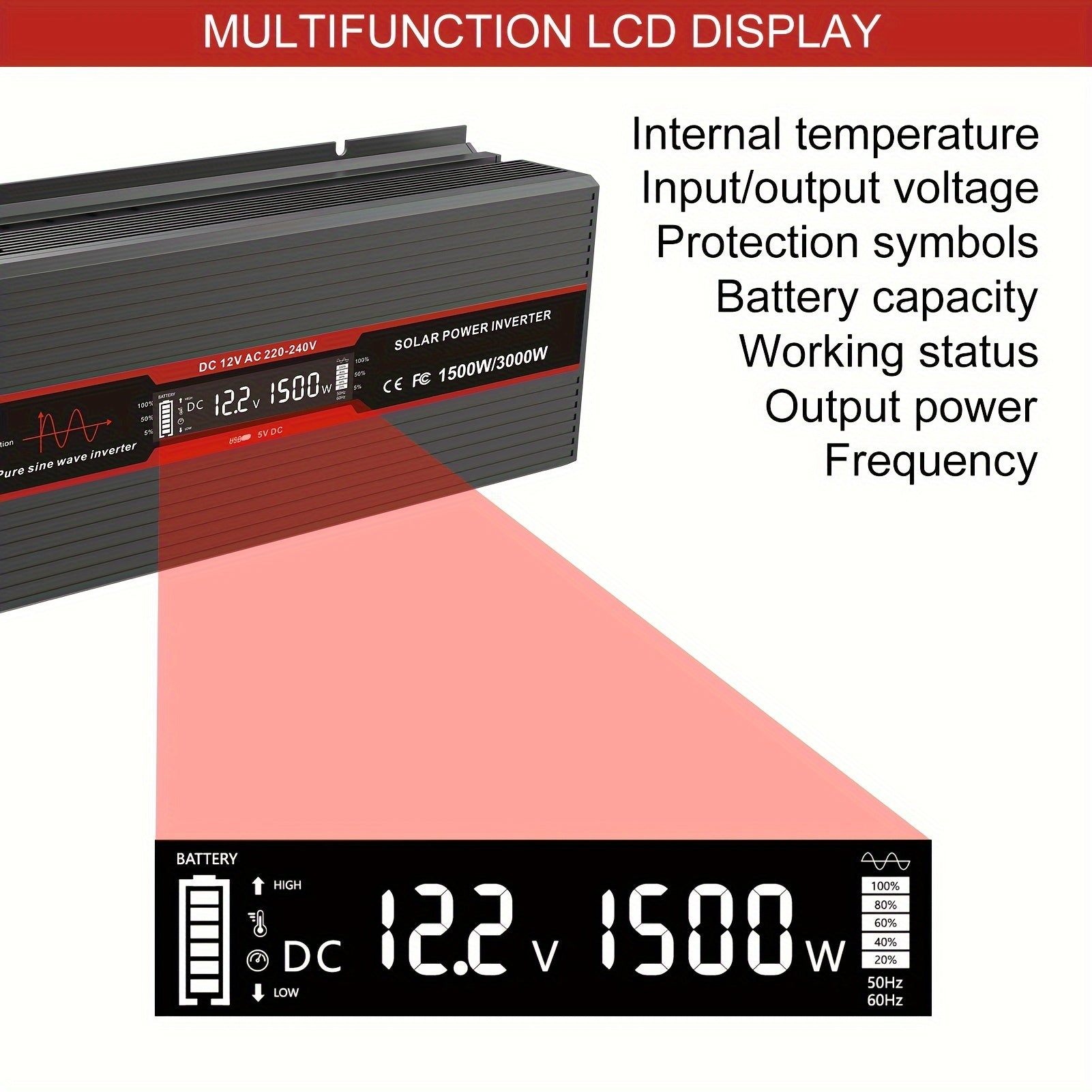 1500W 3000W choʻqqi toza sinus toʻlqinli quvvat invertori sayohat va tabiatda yurish uchun