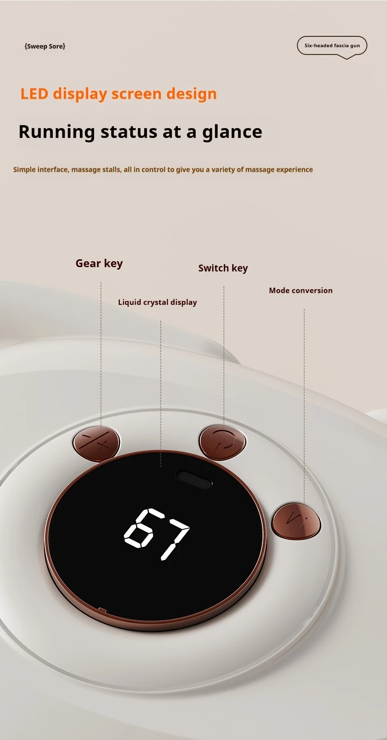 6 boshli chuqur to'qima massaj quroli, USB orqali zaryadlanadigan batareya, to'liq tana vibratsiya massajeri, yuqori chastotali mushaklarni bo'shashtirish, 2000mAh litiy batareya, uyda foydalanish uchun.