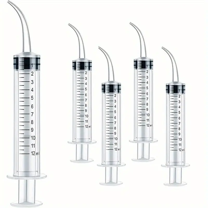 Tish tozalash uchun 12ml foydalaniladigan, bir martalik, shaffof, egilgan uchli tish sug'urtasi shpritslari