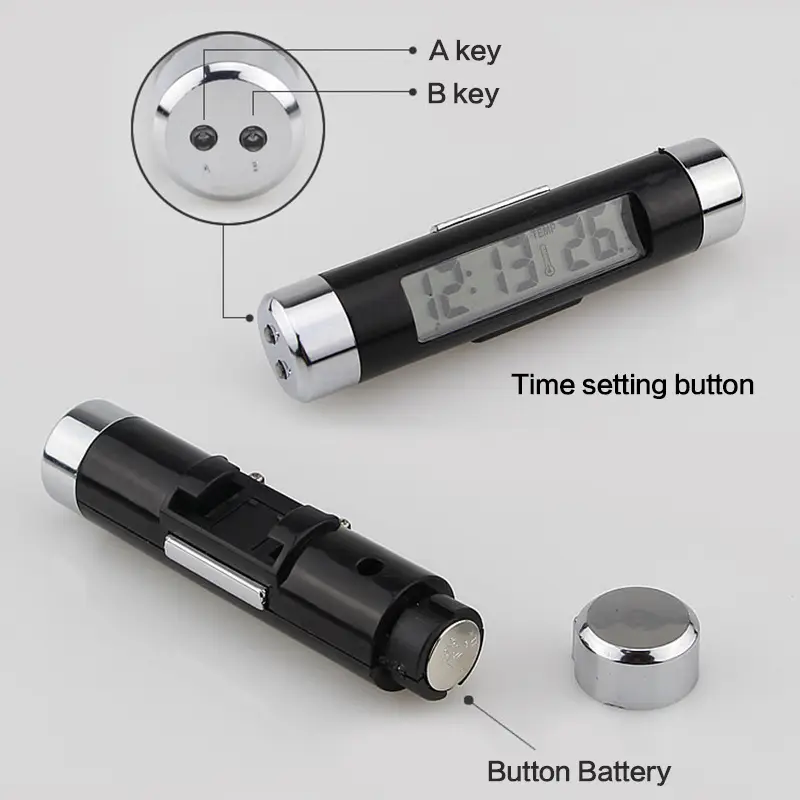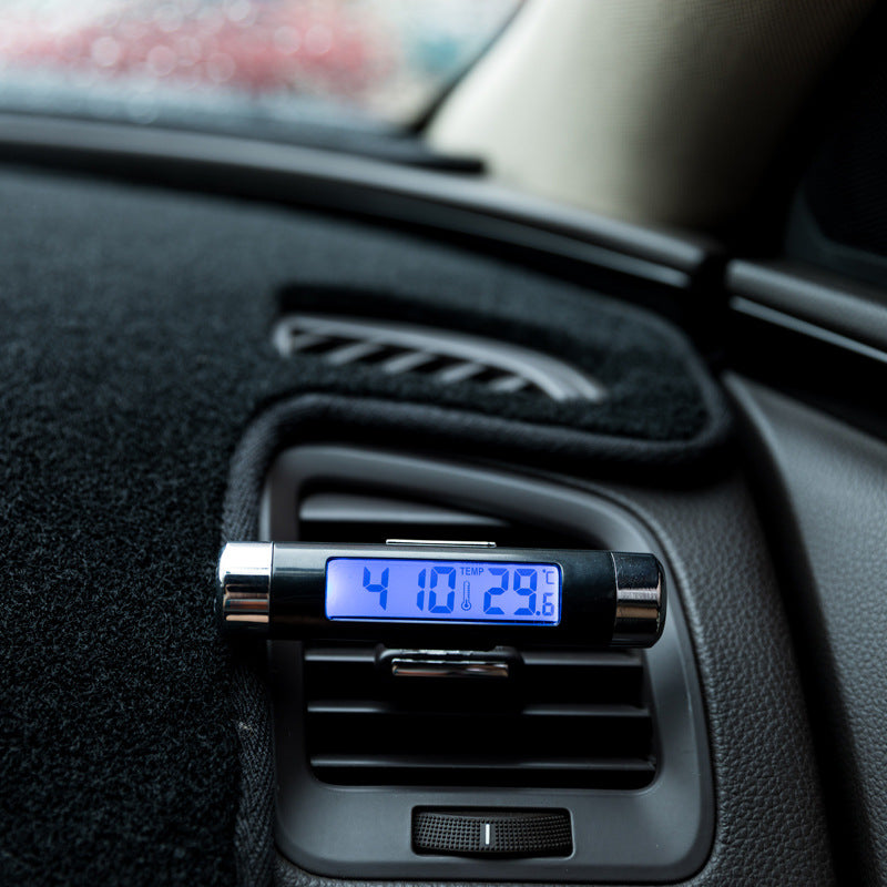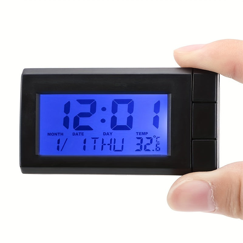 Raqamli avtomobil soati va termometr, Ko'k LED displey, ABS panel bezak