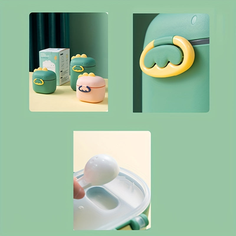 Dinozavr mavzusidagi katta sig'imli sut kukuni tarqatuvchi - Bolalar uchun ko'chma ikki qatlamli formula idishi, qopqoq bilan muhrlangan saqlash, BPA-free plastik