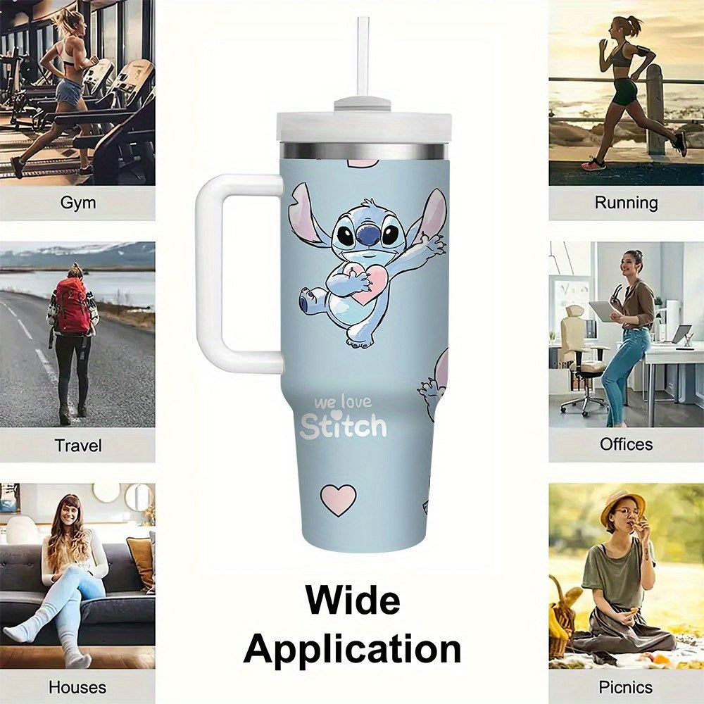 Disney Stitch 40oz zanglamas po'latdan yasalgan suv shishasi, qopqoq va solgich bilan, oqimga chidamli, ikki devorli vakuum izolyatsiyalangan, katta sig'imli, sayohat uchun mukammal.