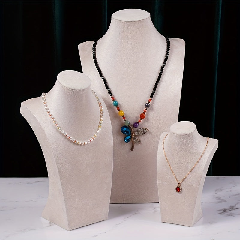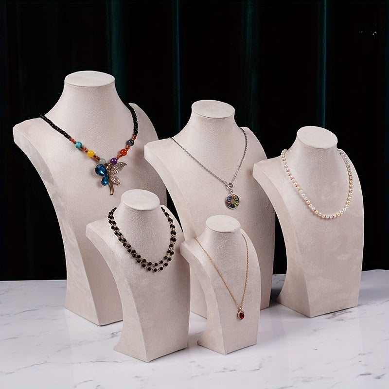 Zargarlik buyumlarini namoyish qilish uchun taqinchoqlar va zanjirlar uchun stand, guruch rangli velvettan tayyorlangan, H-shaklidagi portret modeli