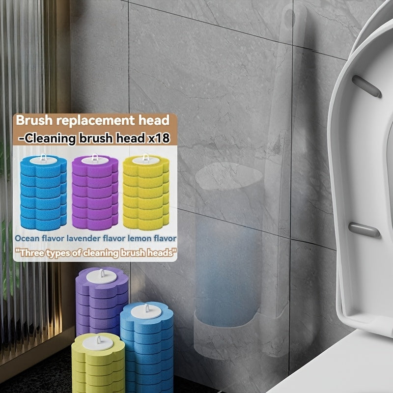 Bir martalik hojatxona cho'tkasi to'plami - oson tozalanadigan, devorga o'rnatiladigan, batareyasiz, hojatxona va hojatxona tozalash uchun ideal.