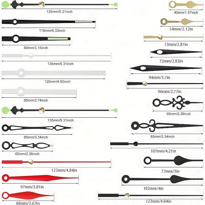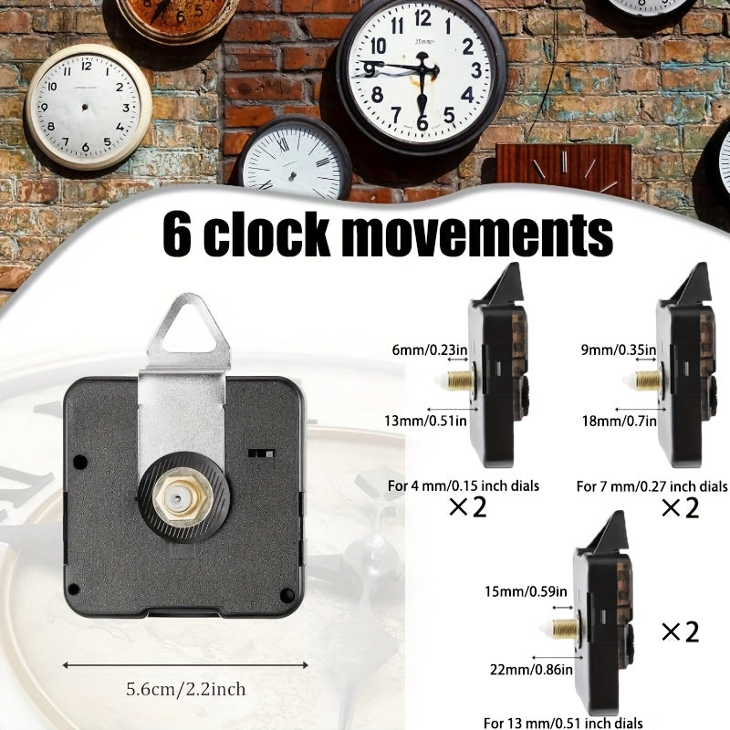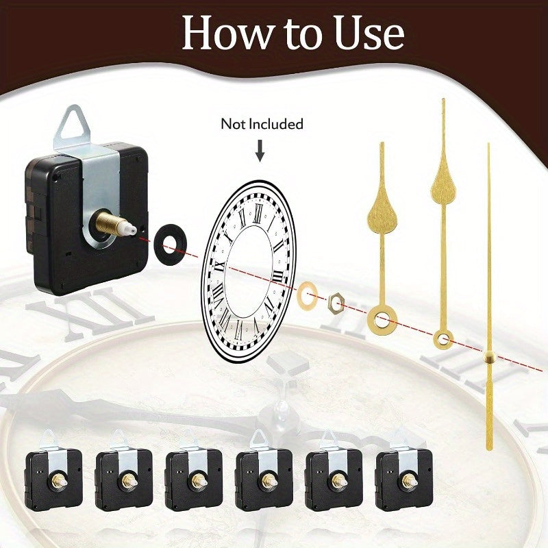 54 ta qismdan iborat DIY soat ta'mirlash to'plami, 6 ta kvarts harakati va 24 ta qo'lni o'z ichiga oladi. Plastikdan tayyorlangan. Devor soati mexanizmi va noyob bezak uchun yig'ish talab etiladi.