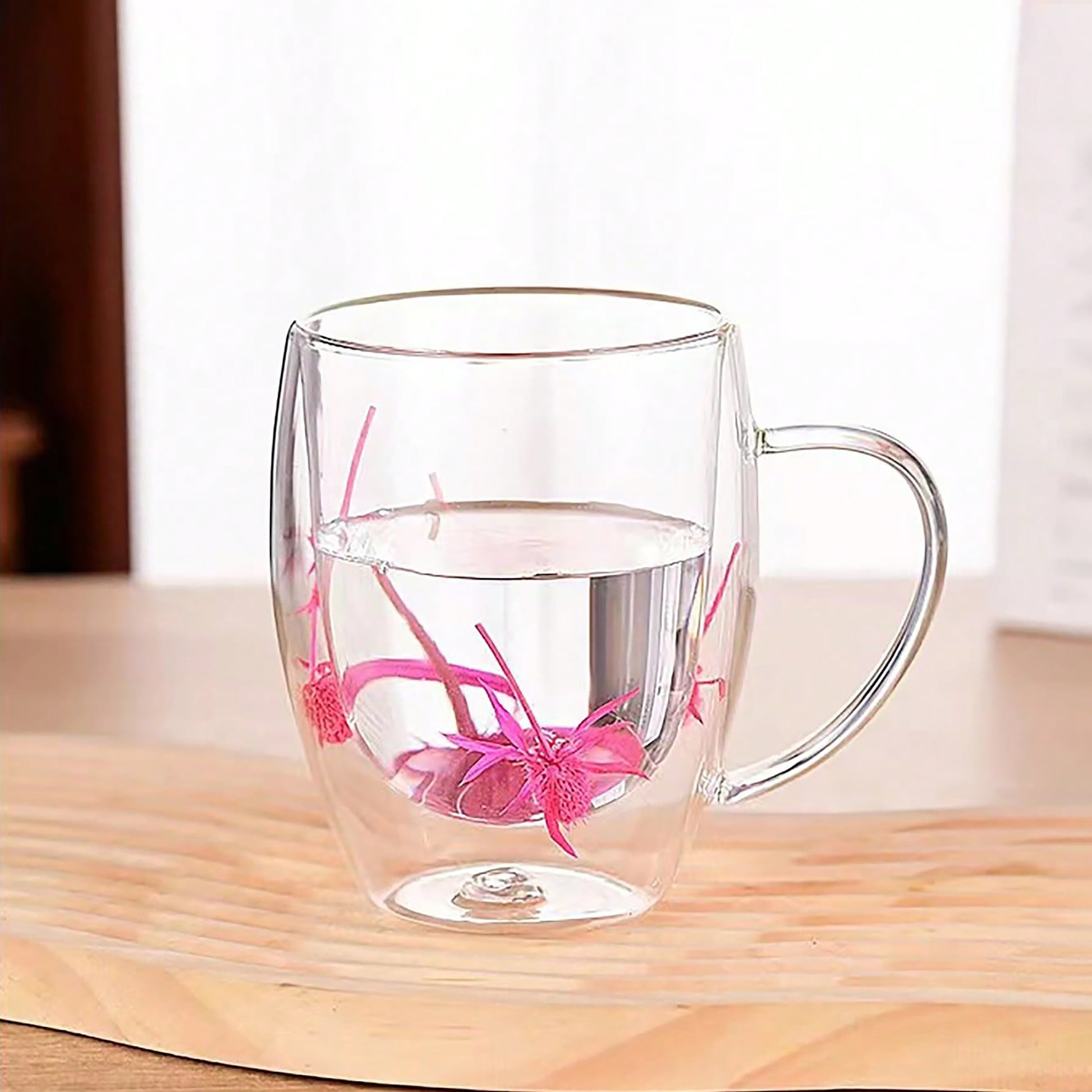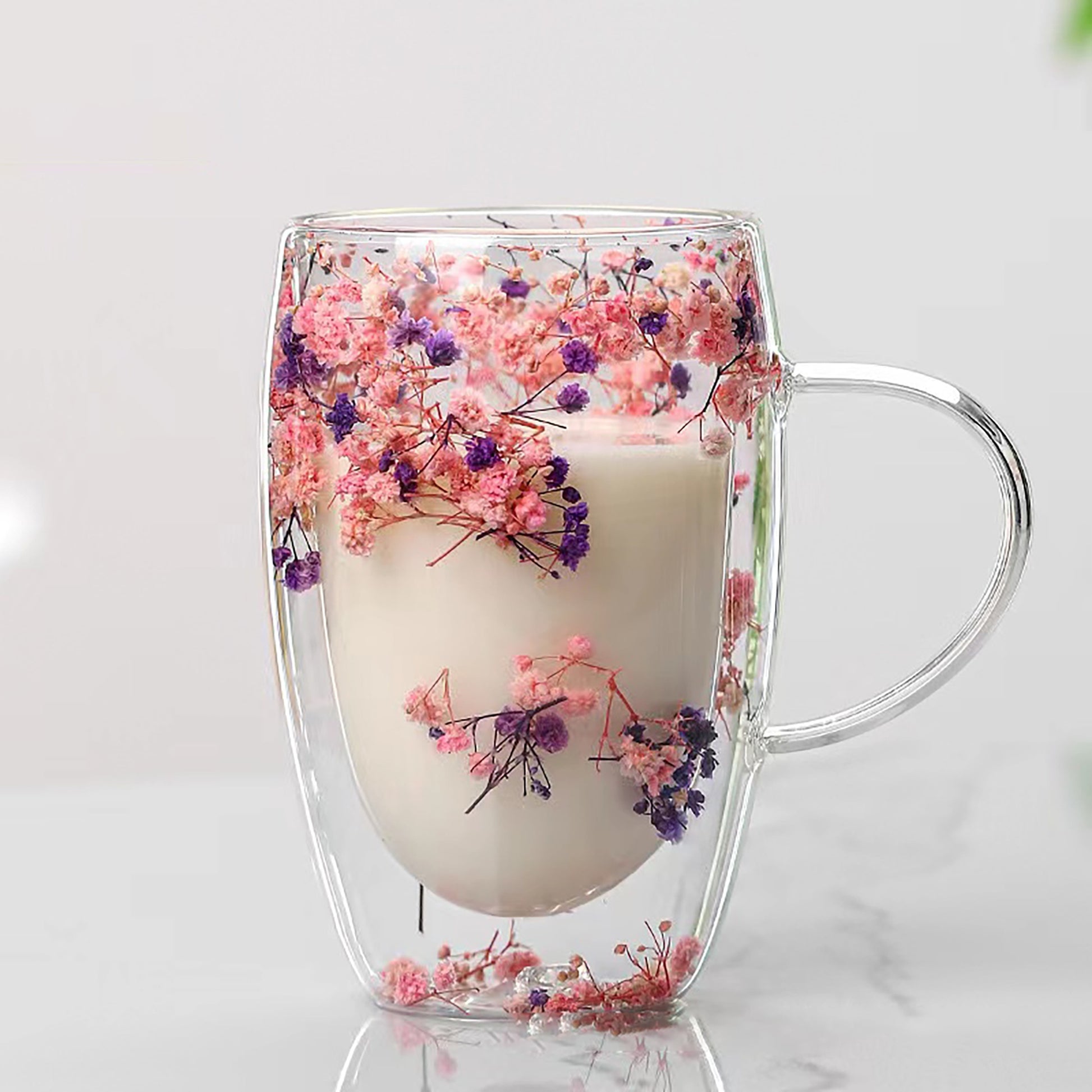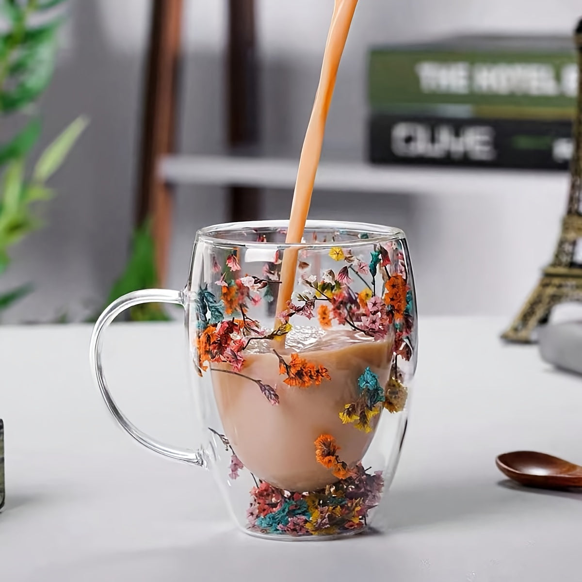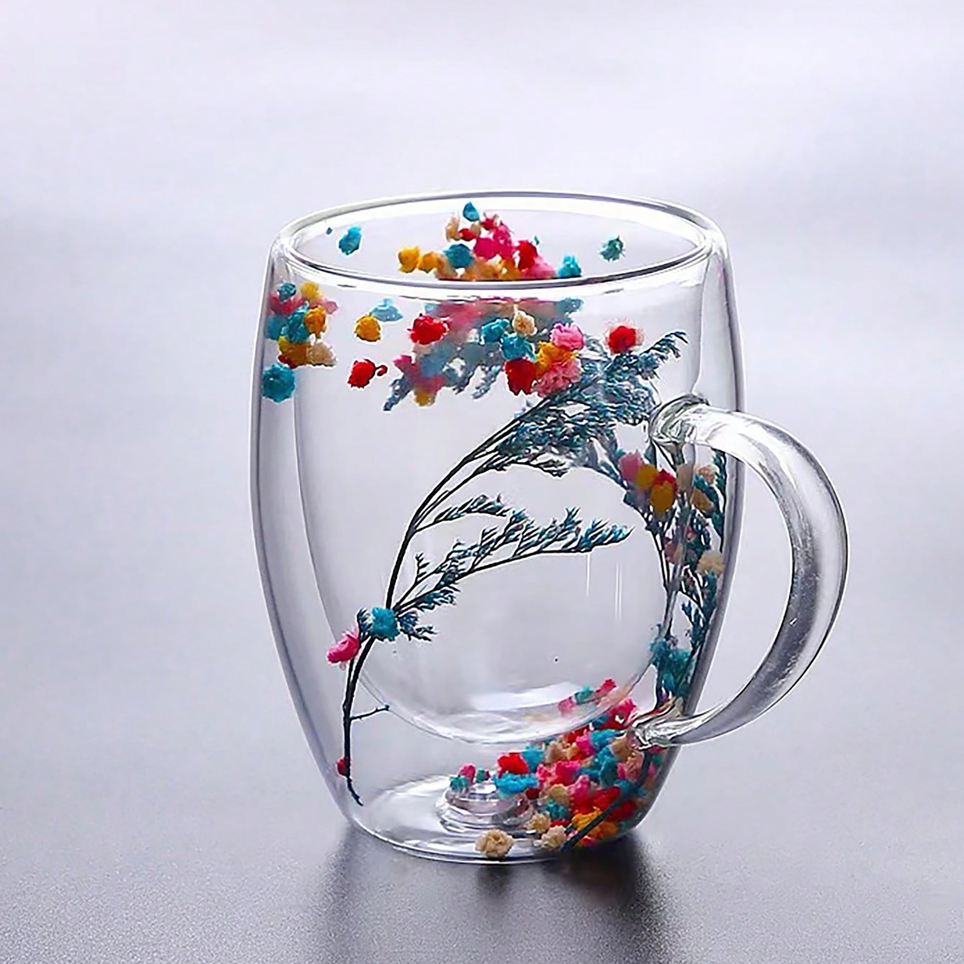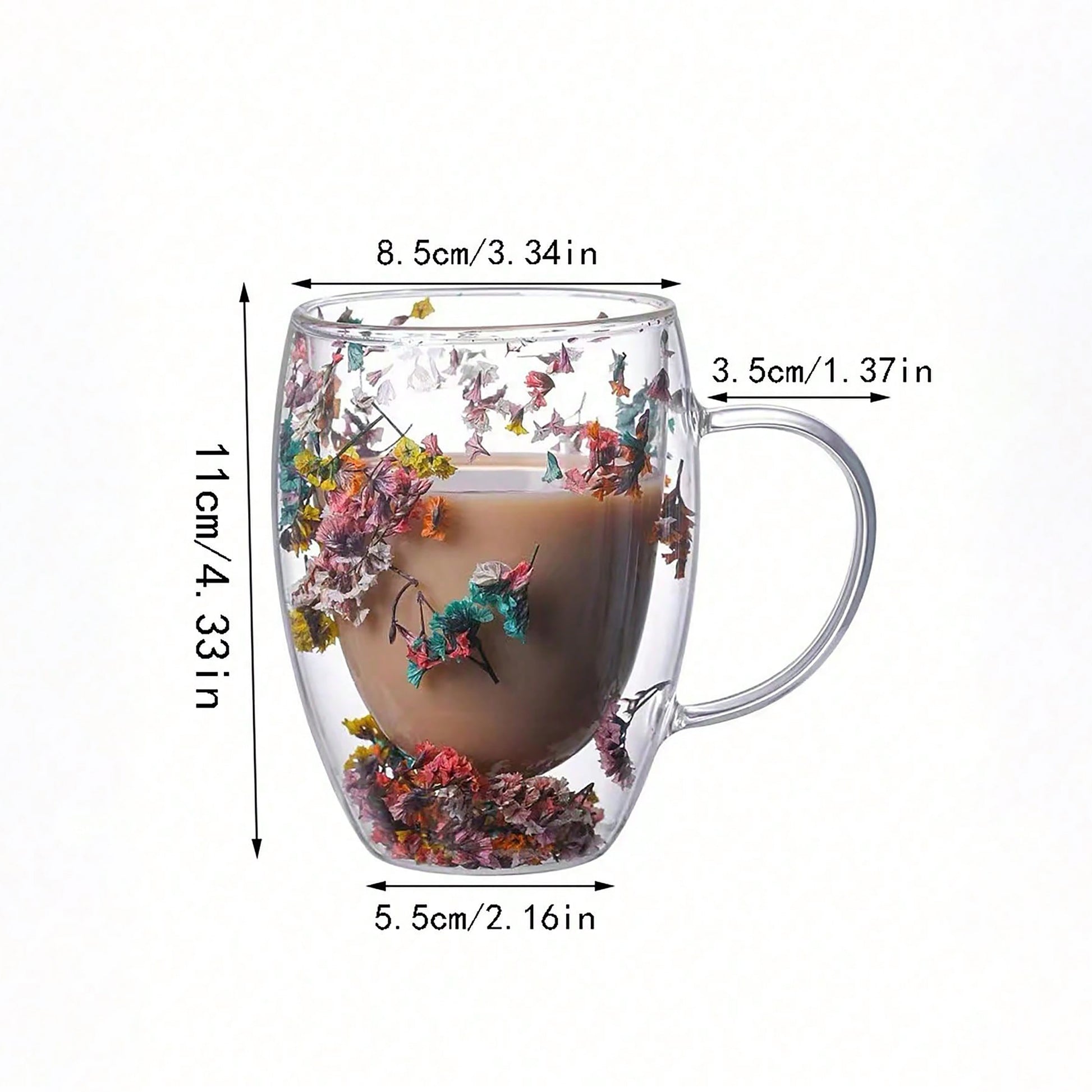 Ikkita qatlamli qahva stakani yangi gullar bilan, uy va ofis uchun mos, ajoyib bayram sovg'asi.