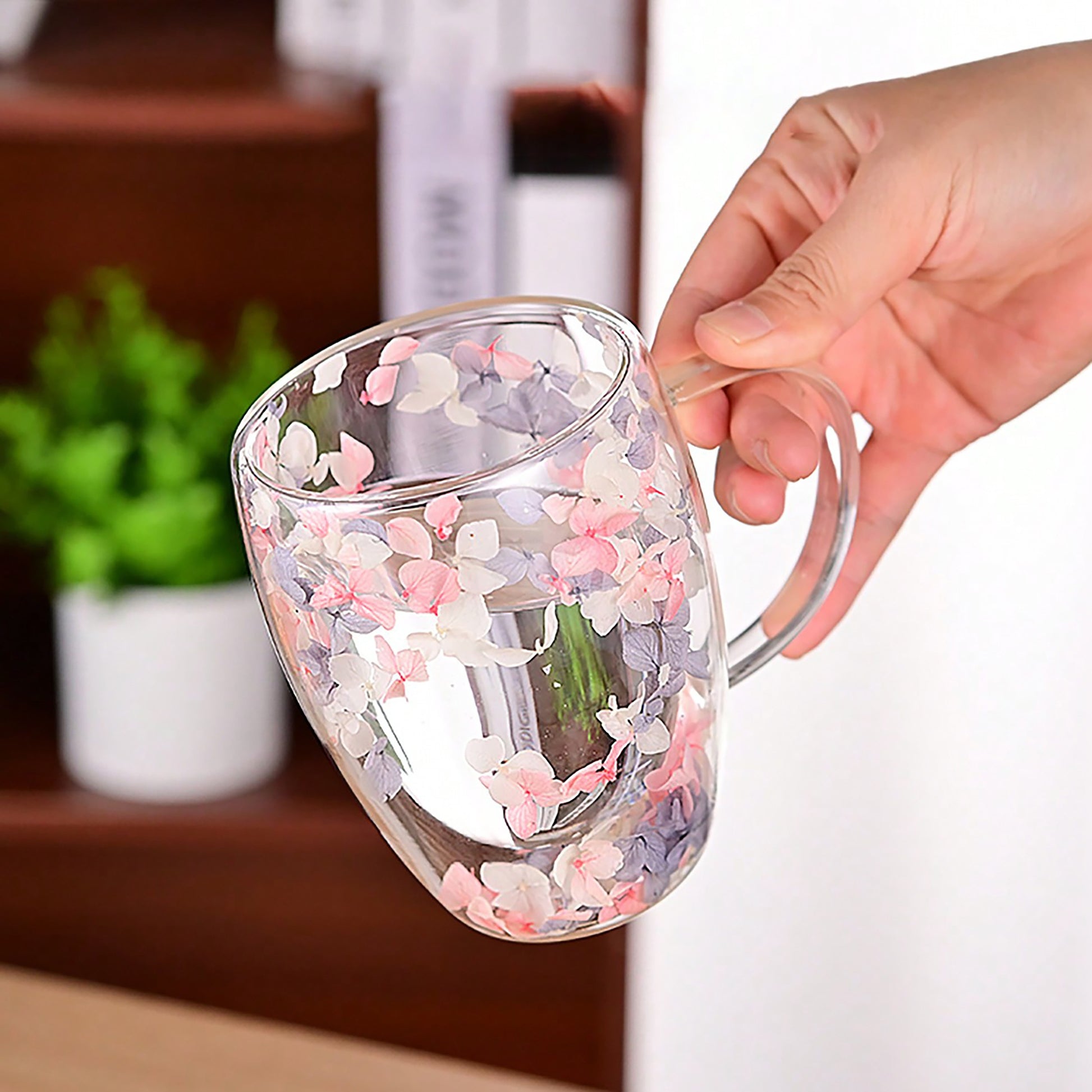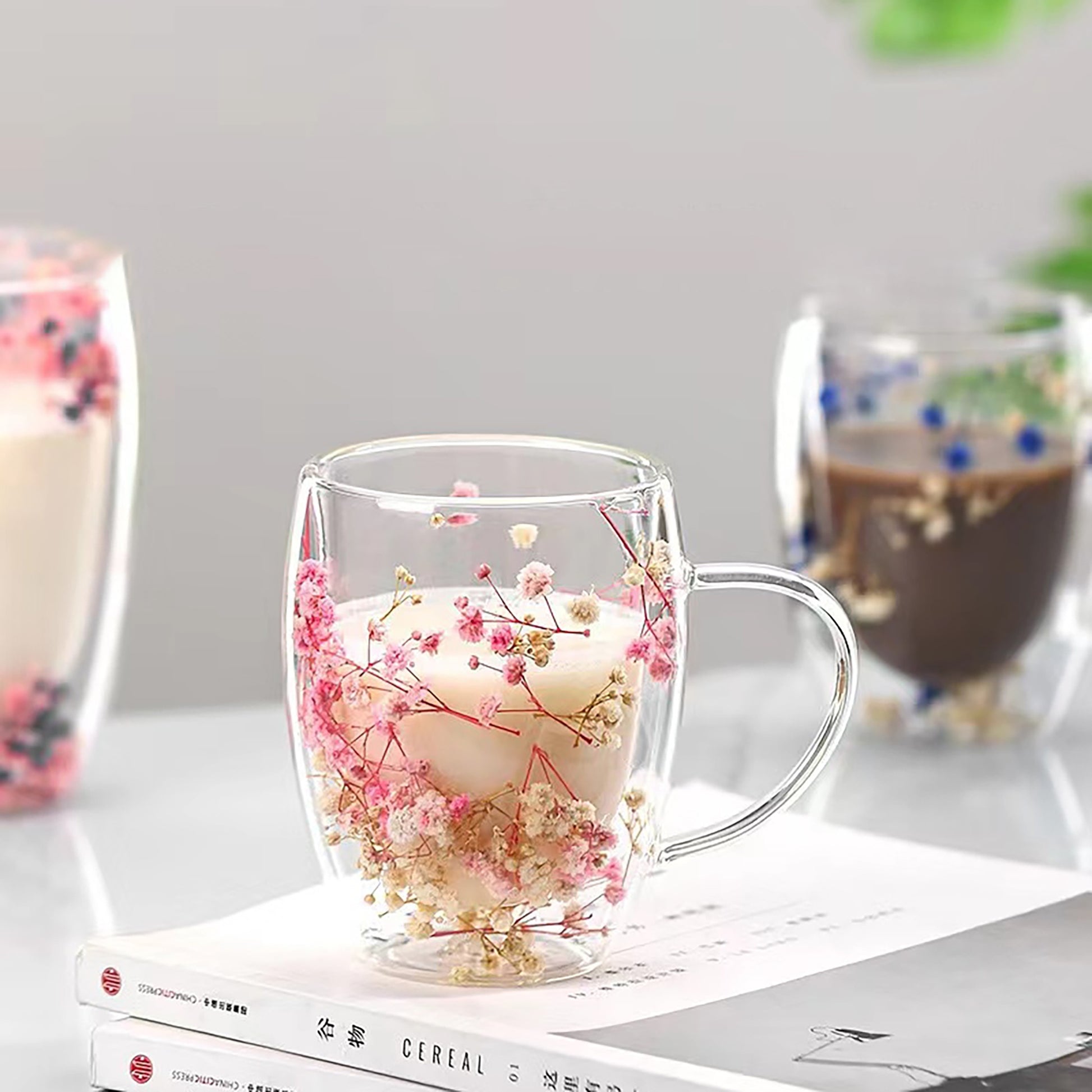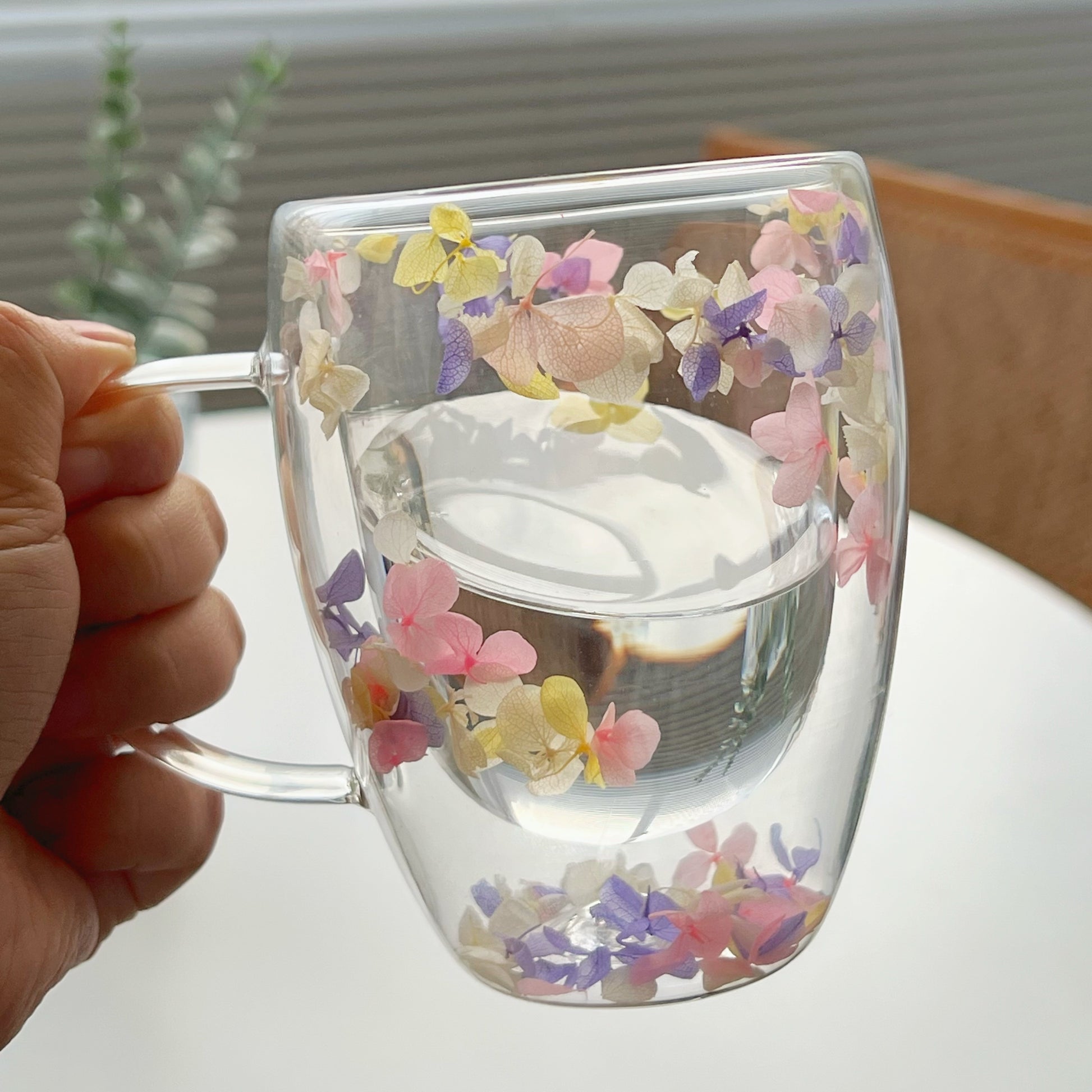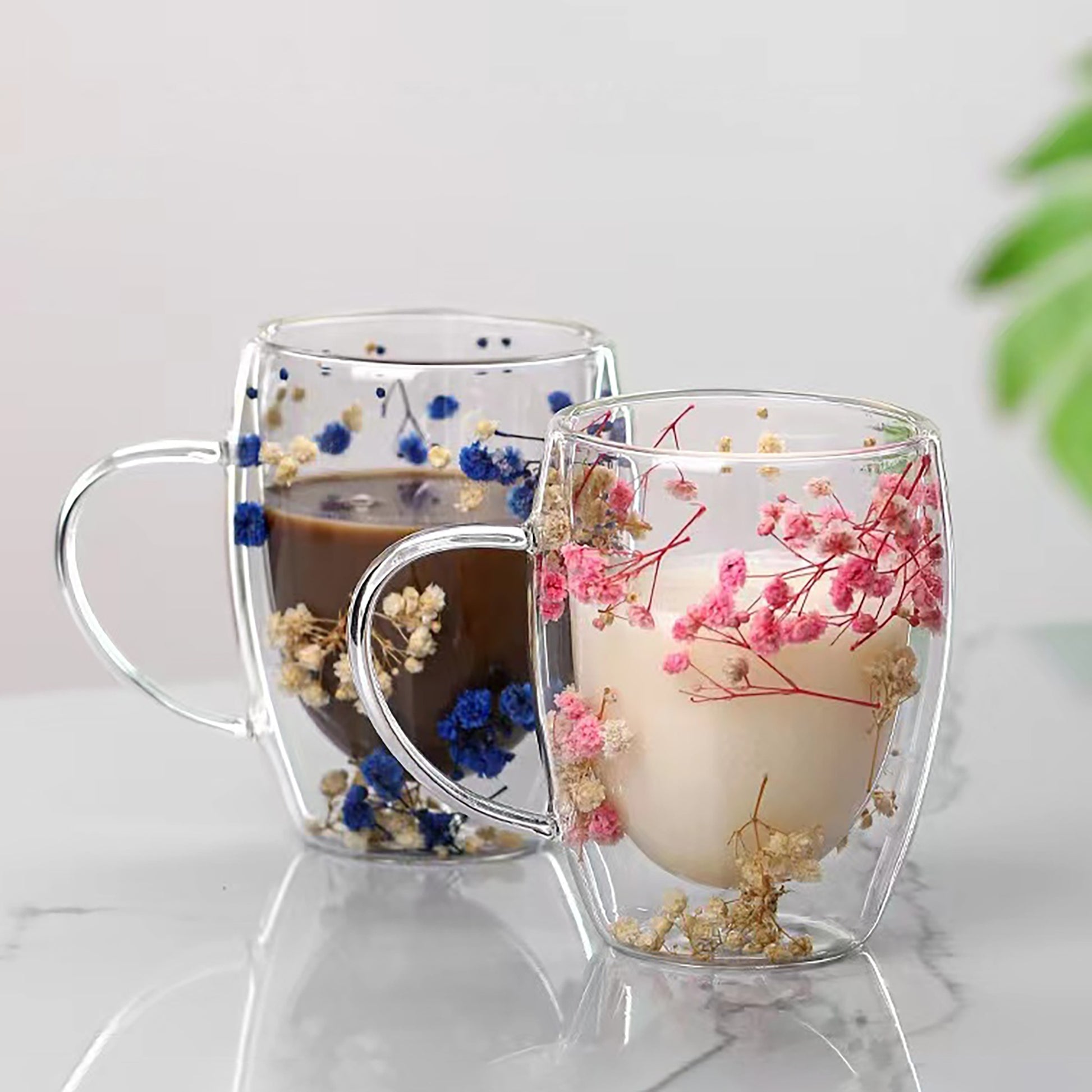 Ikkita qatlamli qahva stakani yangi gullar bilan, uy va ofis uchun mos, ajoyib bayram sovg'asi.