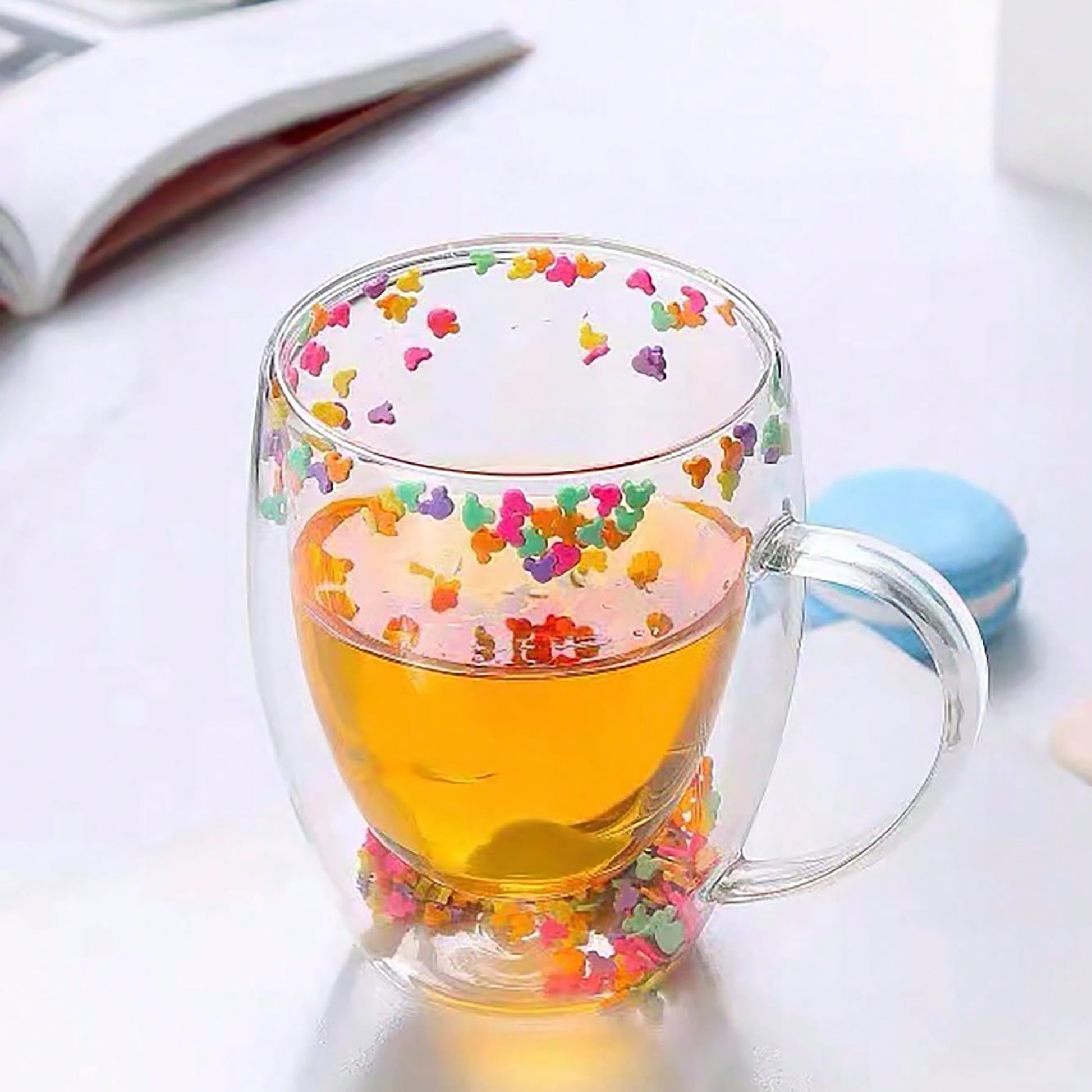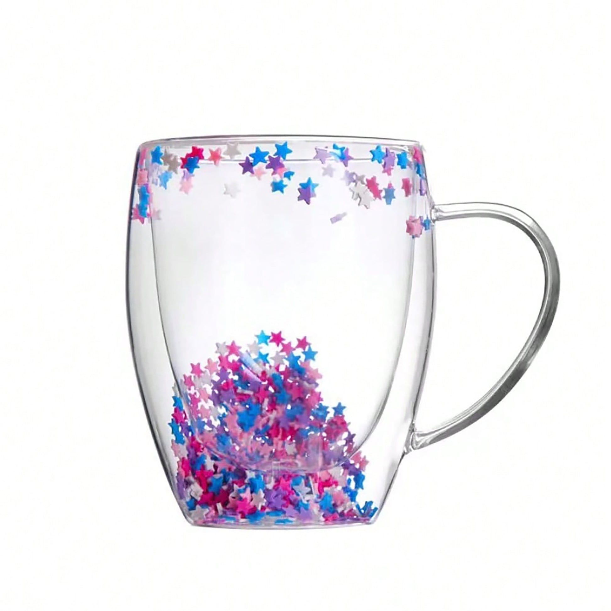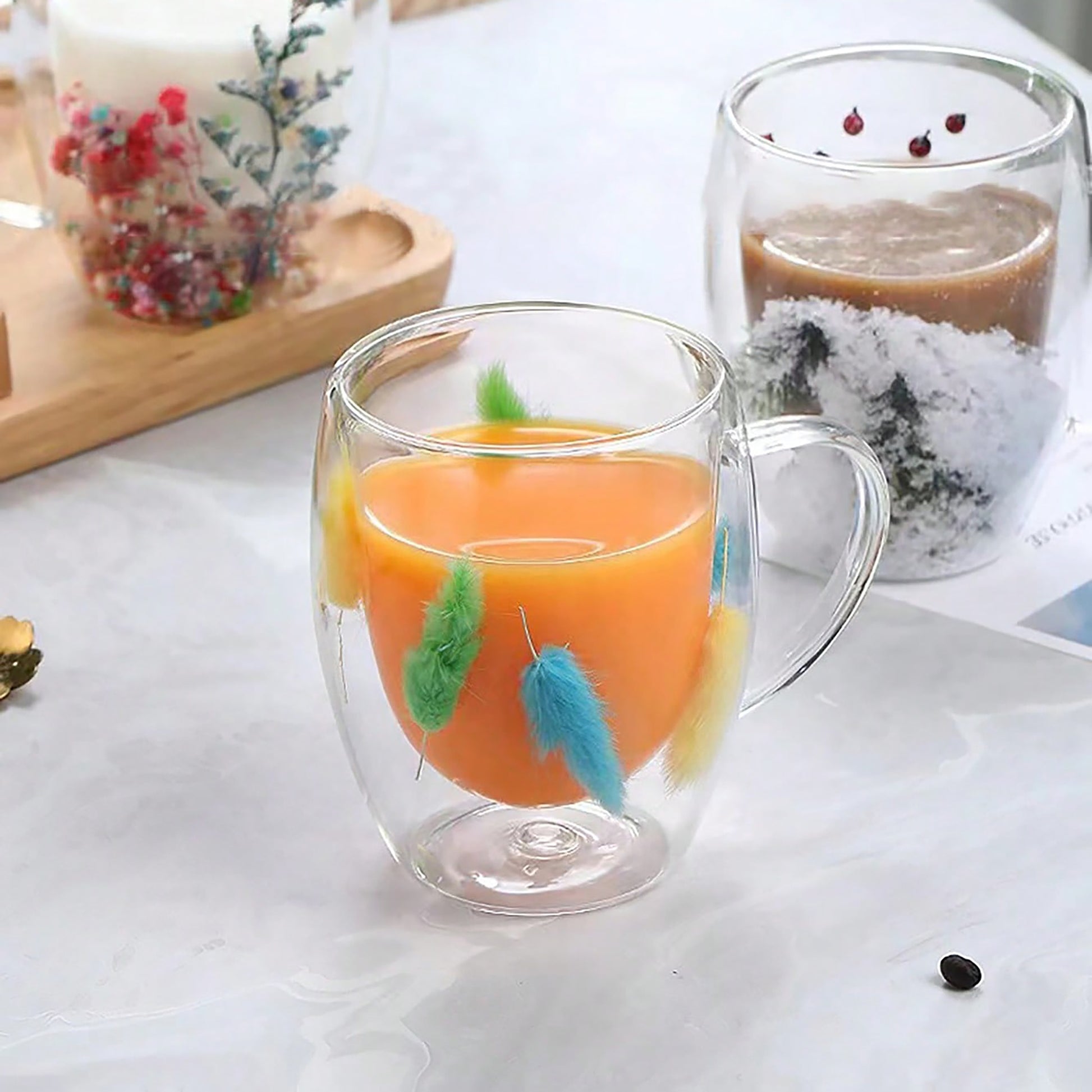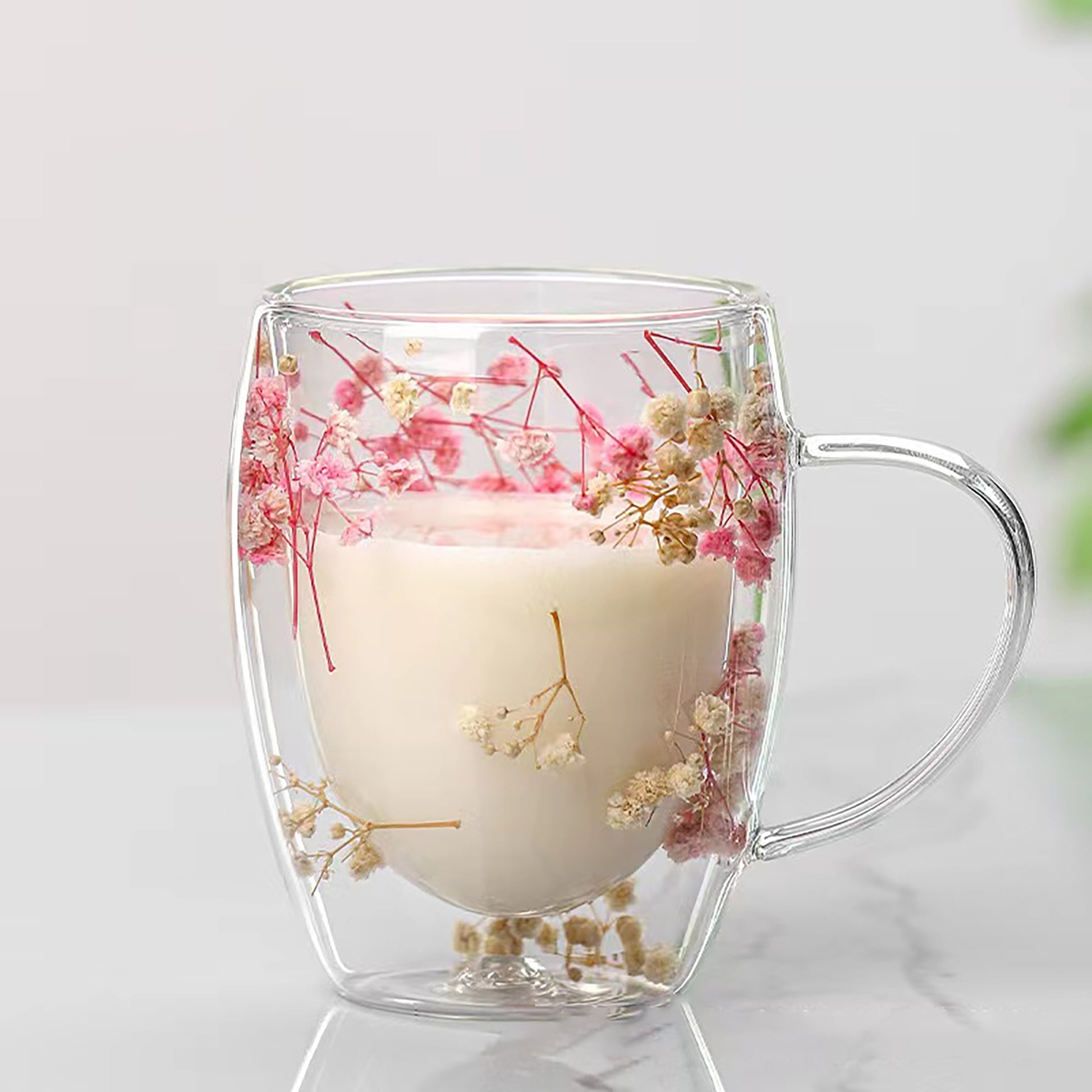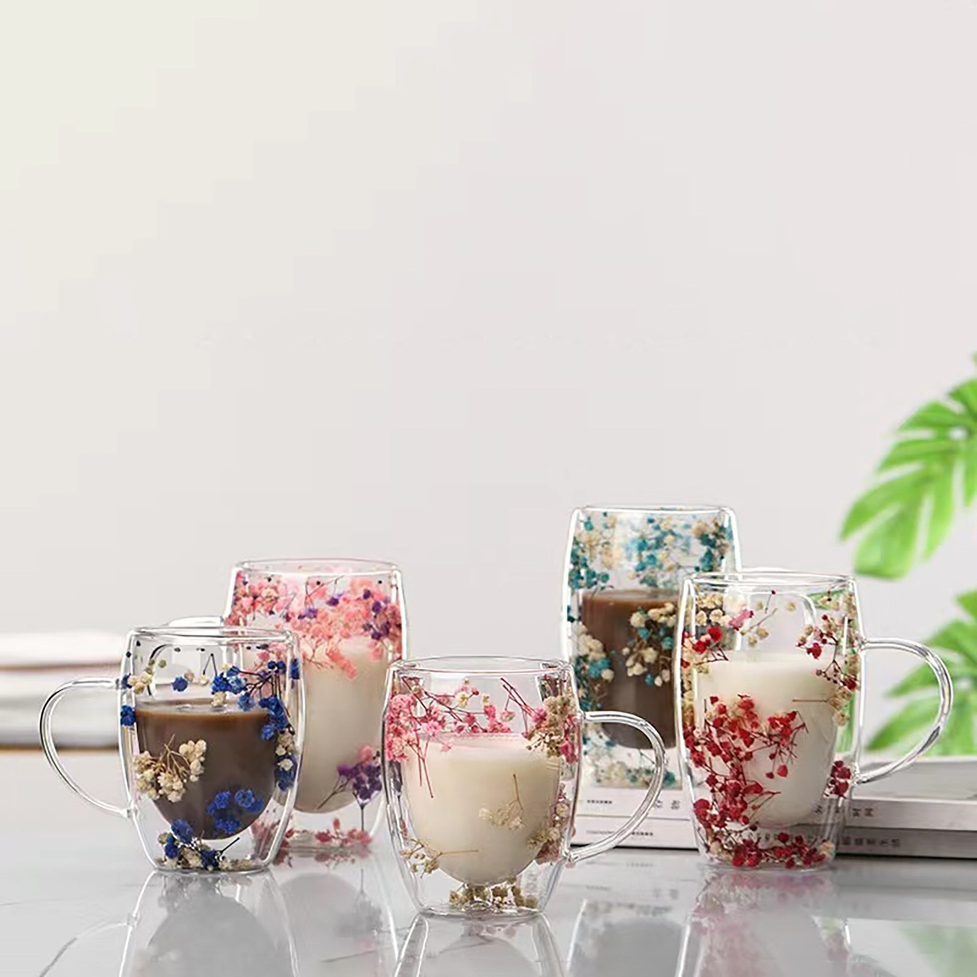 Ikkita qatlamli qahva stakani yangi gullar bilan, uy va ofis uchun mos, ajoyib bayram sovg'asi.