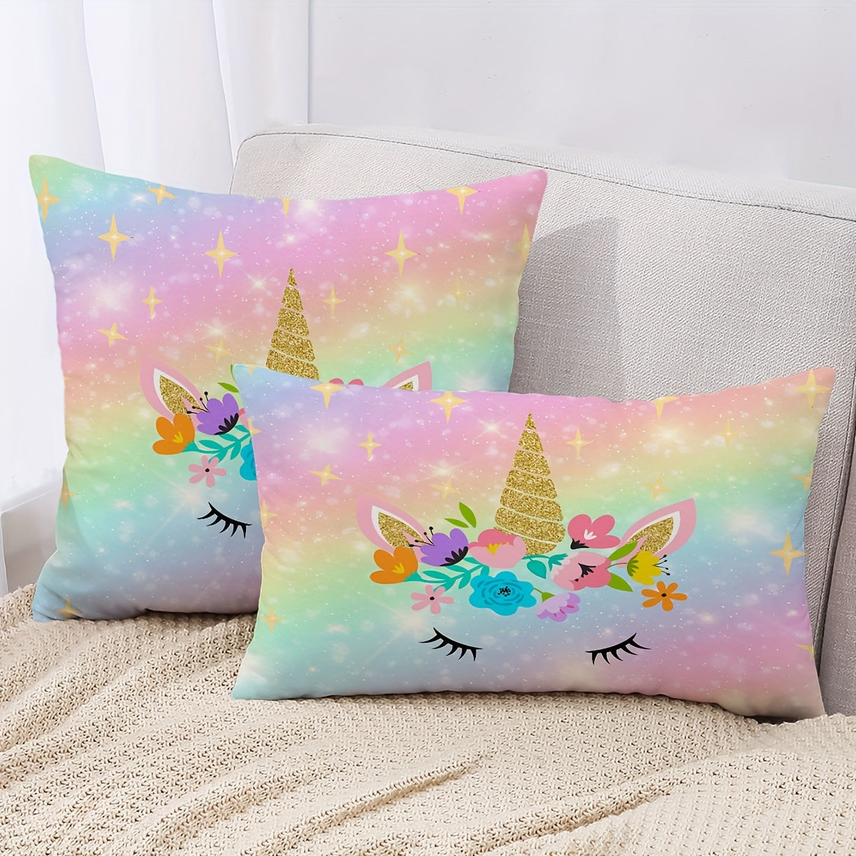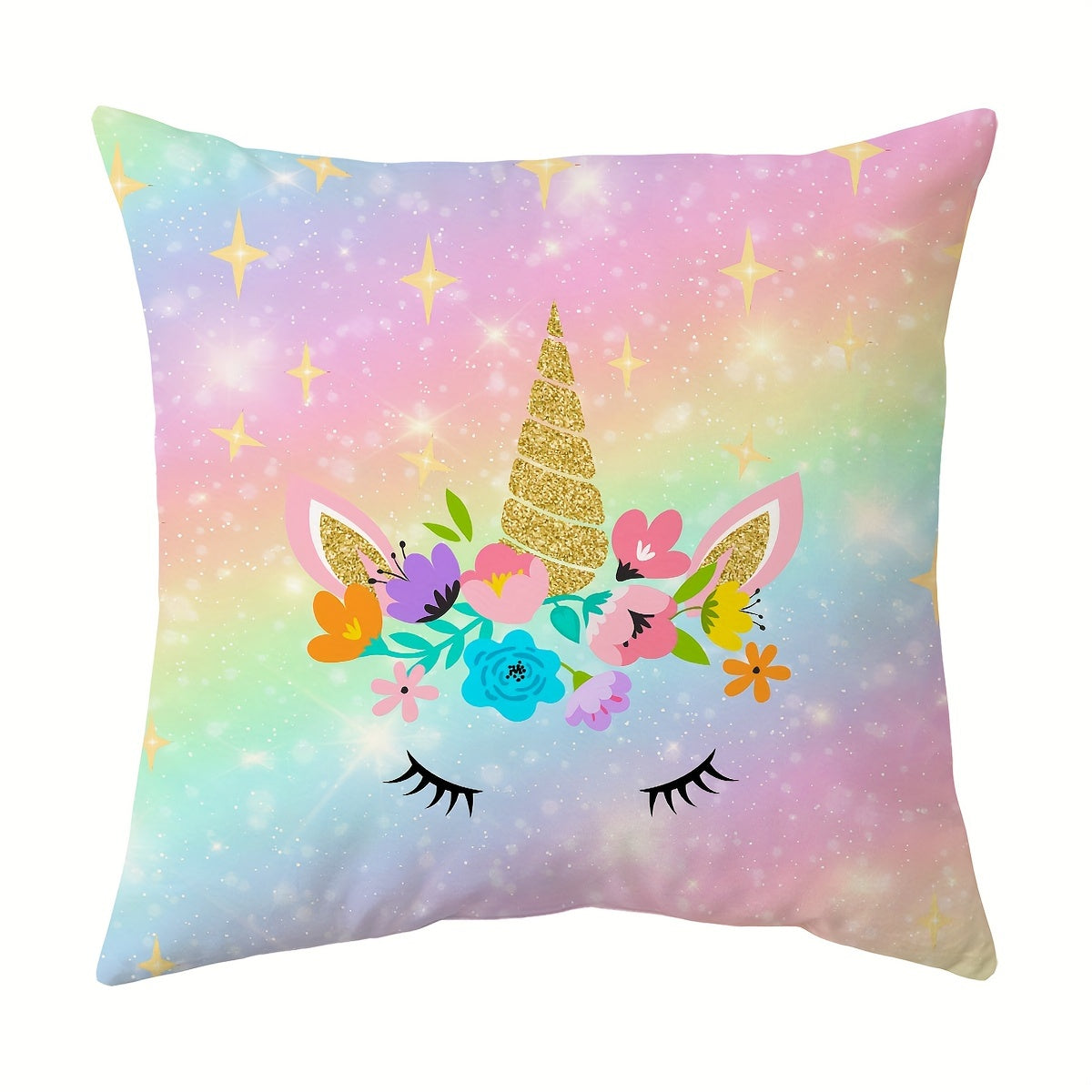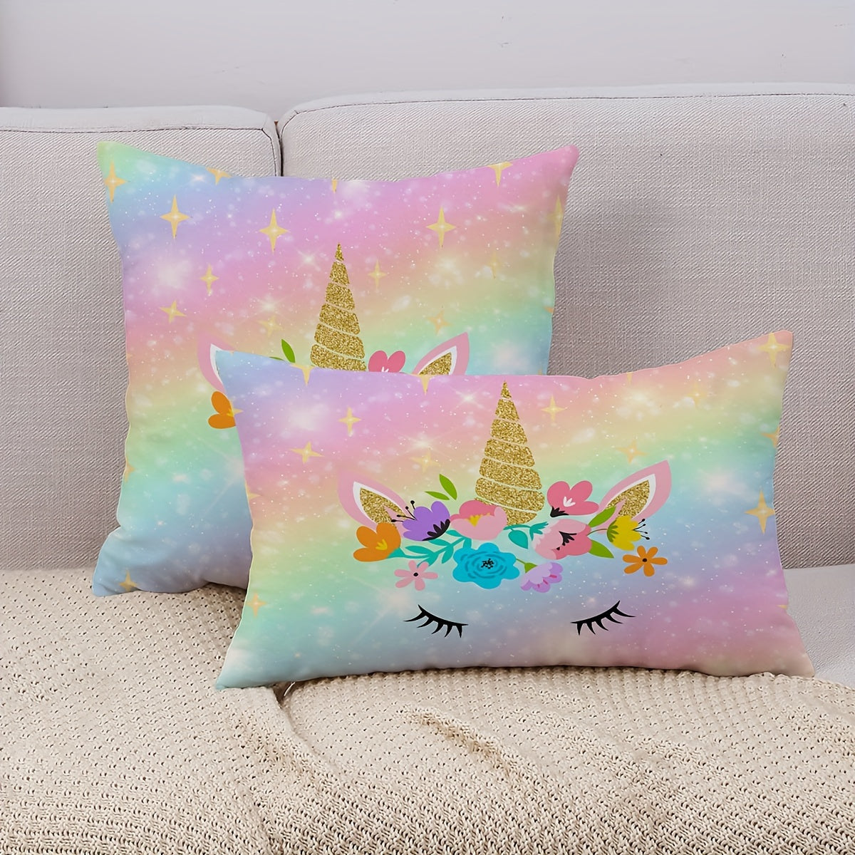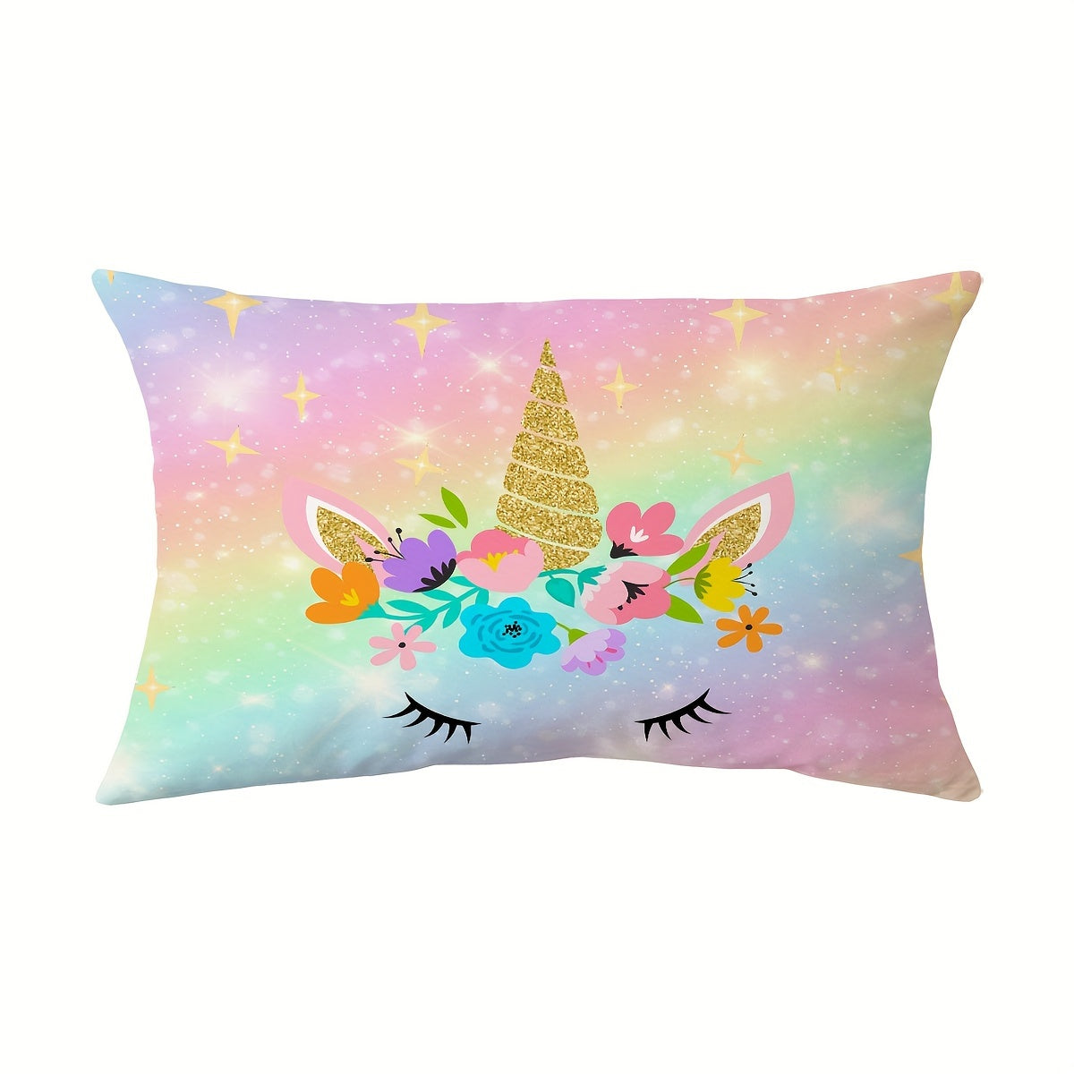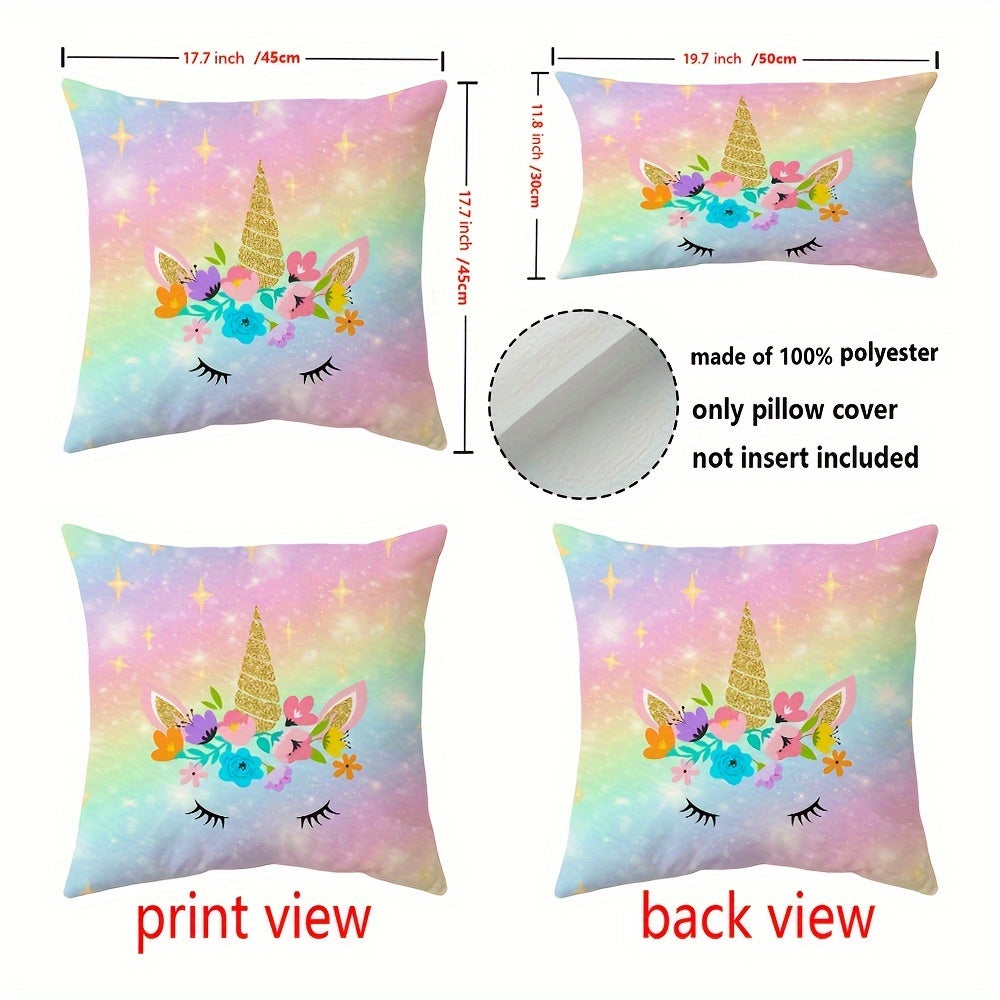Qiziqarli tashqi ko'rinishga ega, ikki tomonlama bosma, kamalak porlashi galaktikasi dizayni bilan bezatilgan yostiq qopqog'i, divan, kreslo, yashash xonasi yoki yotoqxona uchun mukammal. Yostiq ichki qismi kiritilmagan.