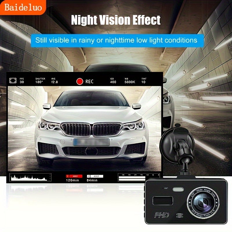 Ikki linzali avtomobil kamerası 720p kechqurun ko‘rish uchun, qayta zaryadlanuvchi, 12-24V o‘rnatish