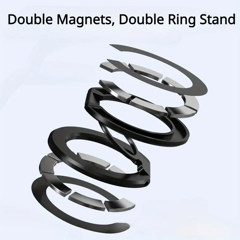 IPhone va smartfonlar uchun sozlanadigan ushlagich va tayanish bilan ikki tomonlama magnit telefon halqasi.