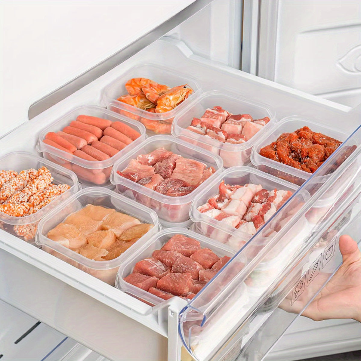 10, 15 va 20 ta to'plamlarda mustahkam ABS yig'iladigan muzxona saqlash idishlari - go'sht va muzqaymoqni saqlash uchun muhrlangan