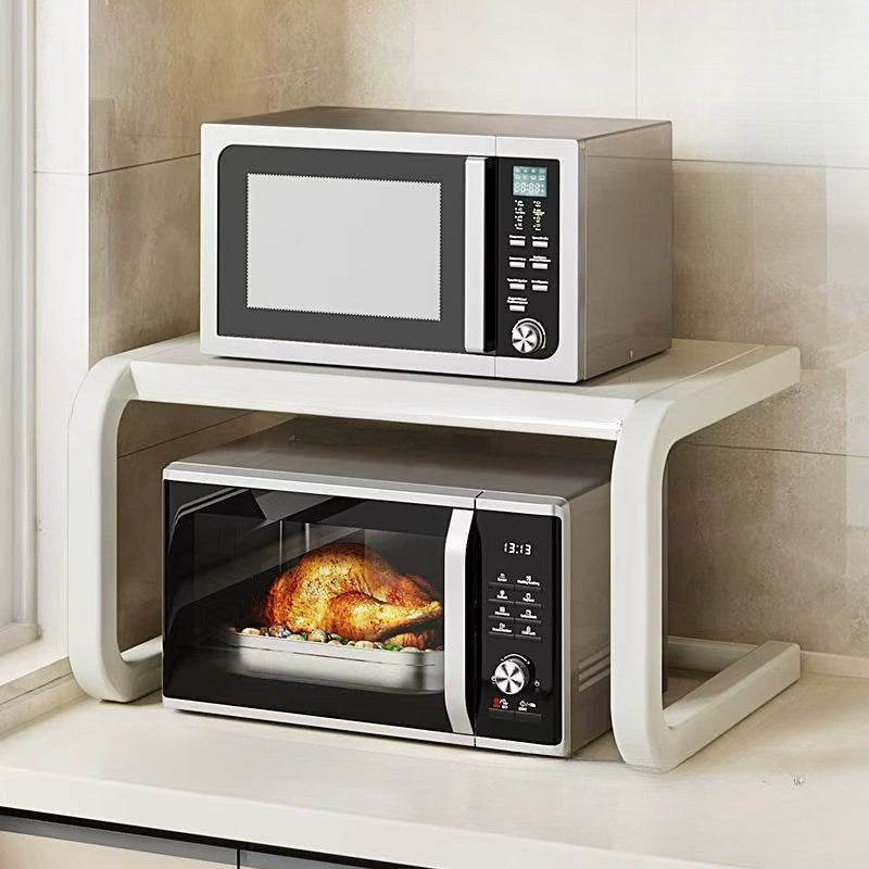 Ko‘p funksiyali mikroto‘lqinli pech uchun javon, himoya qopqog‘i bilan, qora, kumush va oq, stol usti tashkilotchisi