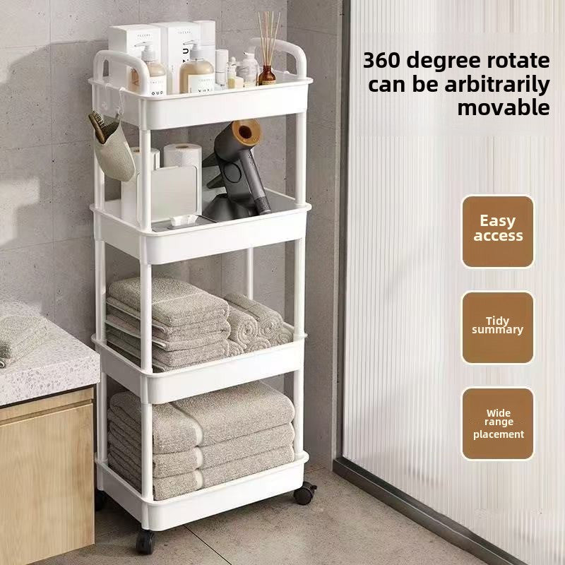 Kichkina, hammom va yotoqxonani tartibga solish uchun ko'p qavatli mustahkam plastik saqlash aravachasi. Uy tartibi uchun savatchalar, qutilar va idishlar bilan oson yig'iladi.