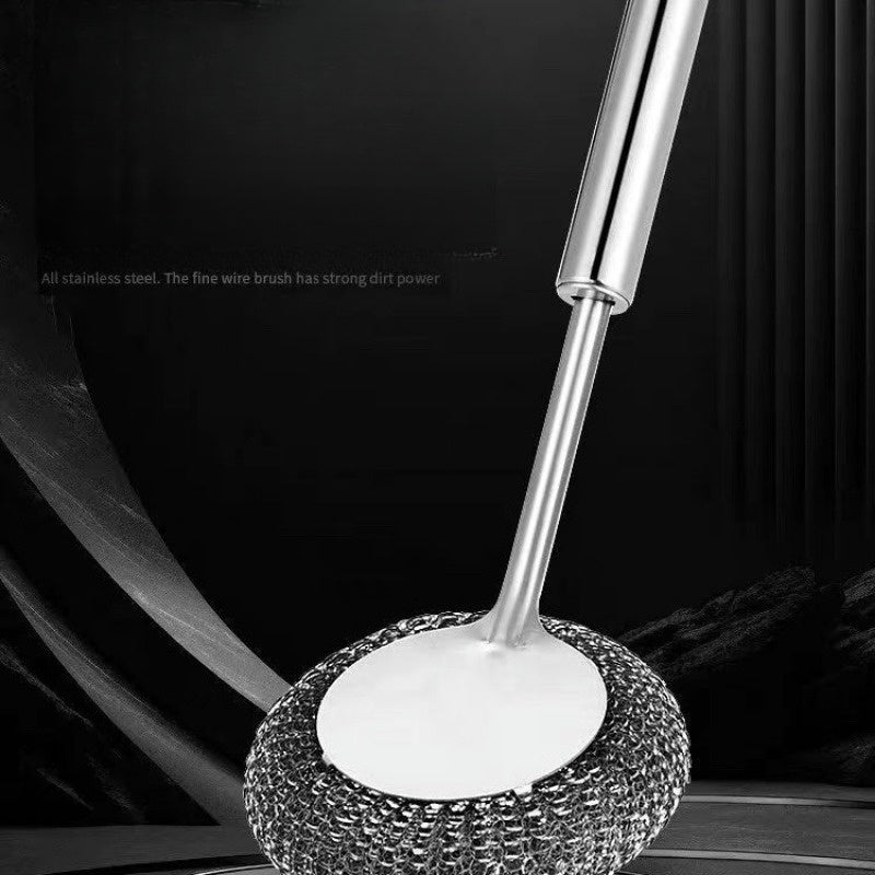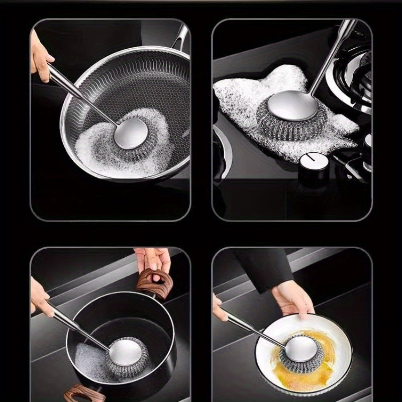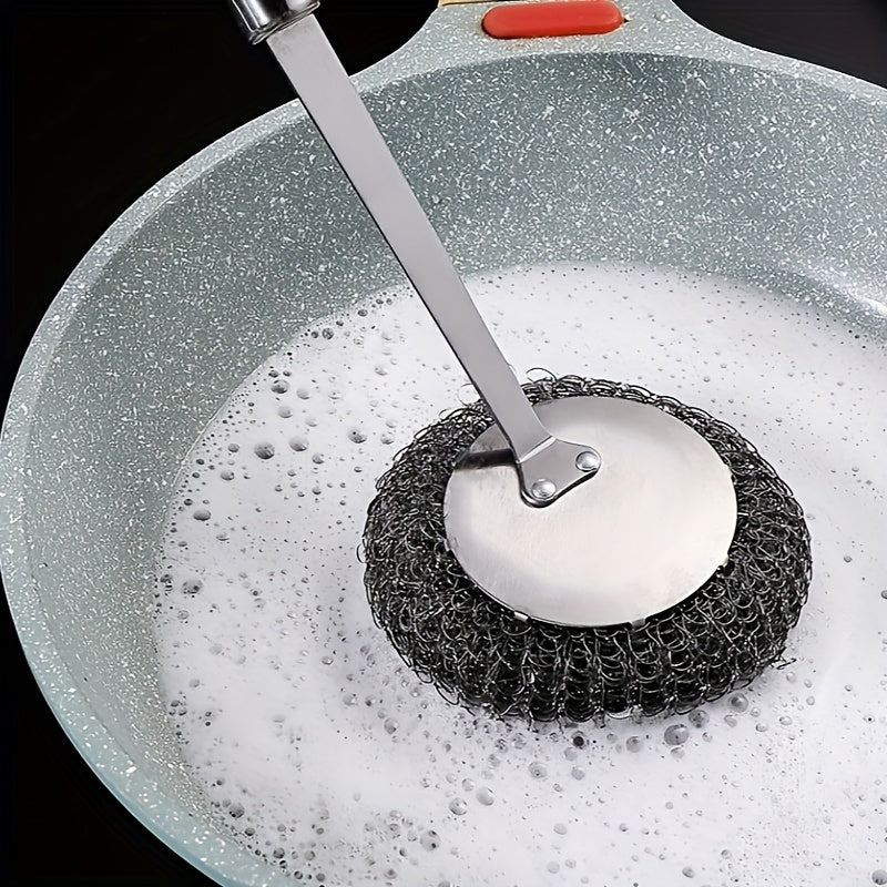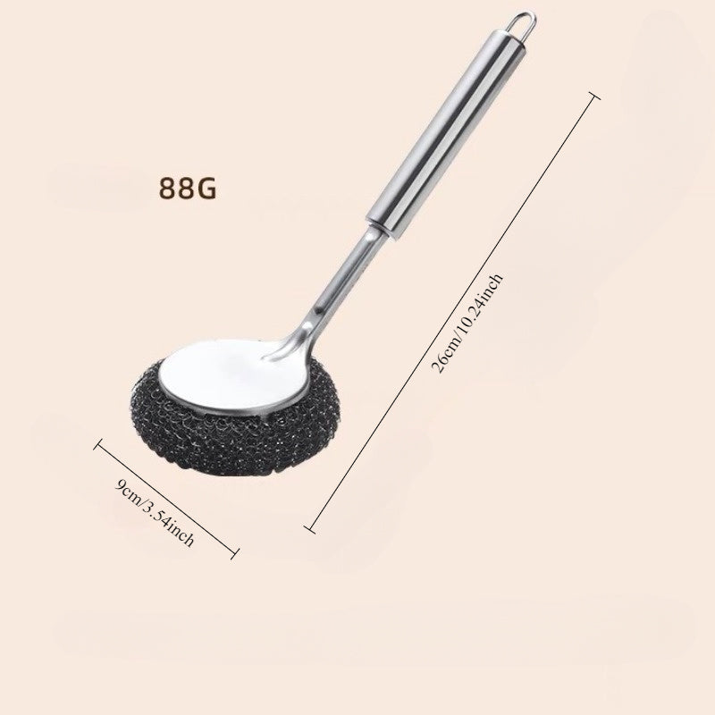 Uzoq tutqichi bilan mustahkam zanglamaydigan po'latdan yasalgan oshxona tozalash cho'tkasi, yog' dog'lariga chidamli, qozonlar va idishlarni tozalash uchun mukammal.