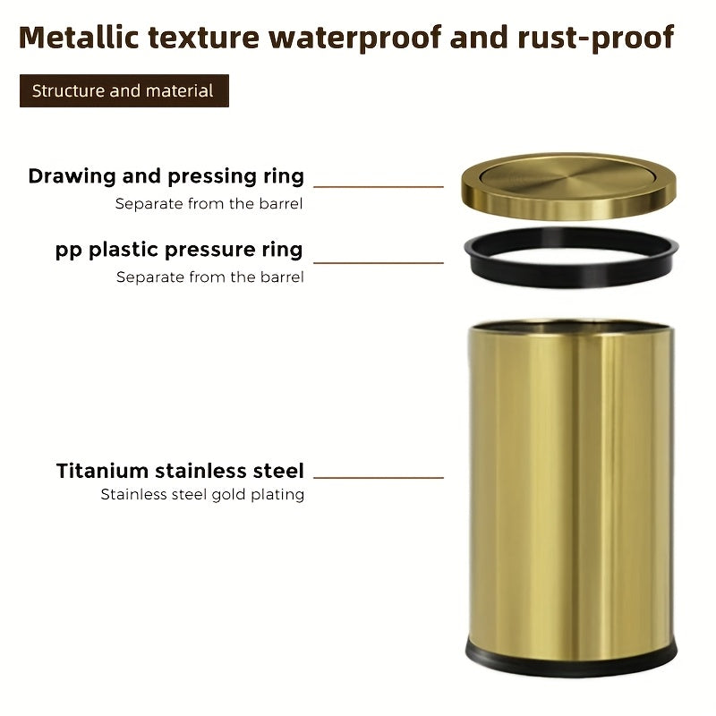 Boshliq bilan zanglamaydigan po'latdan yasalgan axlat qutisi, katta hajmli, oshxona, hammom, mehmonxona uchun