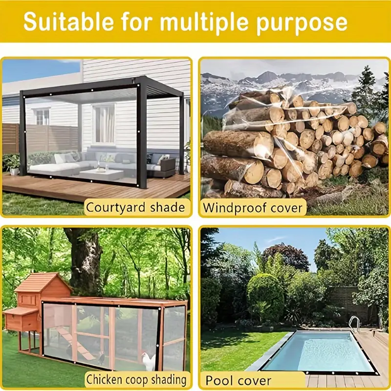 Kuchli, shaffof, suv o'tkazmaydigan tarp, ko'zchalar bilan, tortish ipi bilan yopiladi va ochiq havoda foydalanish uchun og'ir materialdan tayyorlangan. Hovlilar, balkonlar, lagerlar, basseynlar, tovuq uylarida va itlar uchun mukammal.