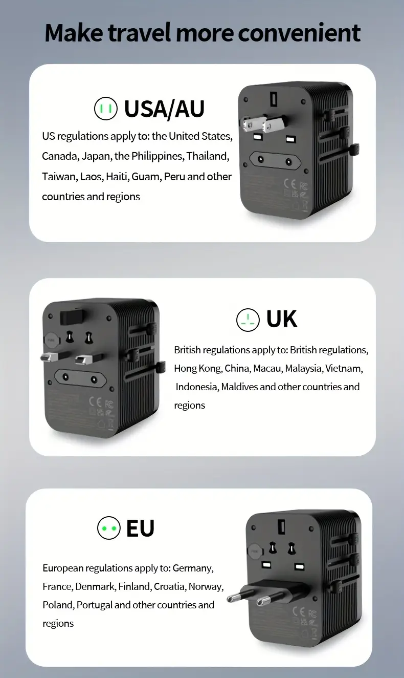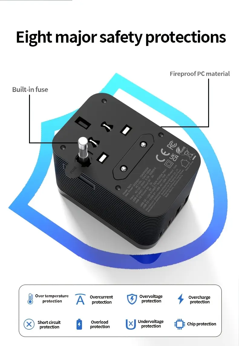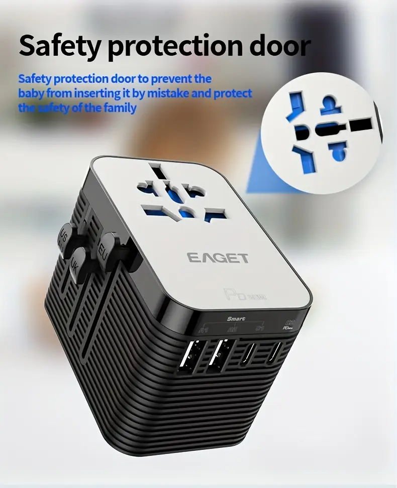 EAGET PD 20W Universal Sayohat Zaryadlovchisi 2 USB-A va 2 USB-C Port bilan, iPhone, Samsung, Vivo, Xiaomi uchun Tez Zaryad, Bir nechta Mamlakatlar uchun Barcha-in-Bir Socket Adapter, Siqilgan va Mustahkam.