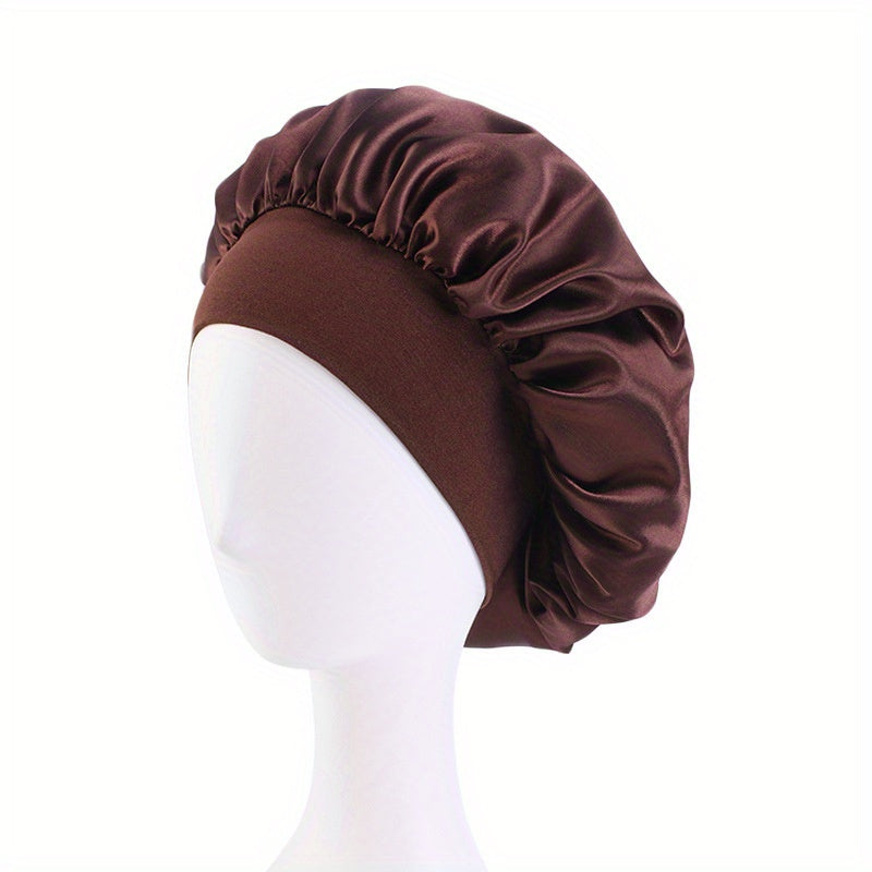 Elastik bantli saten kechki shlyapa, katta o'lcham va belbog'li bonet bilan