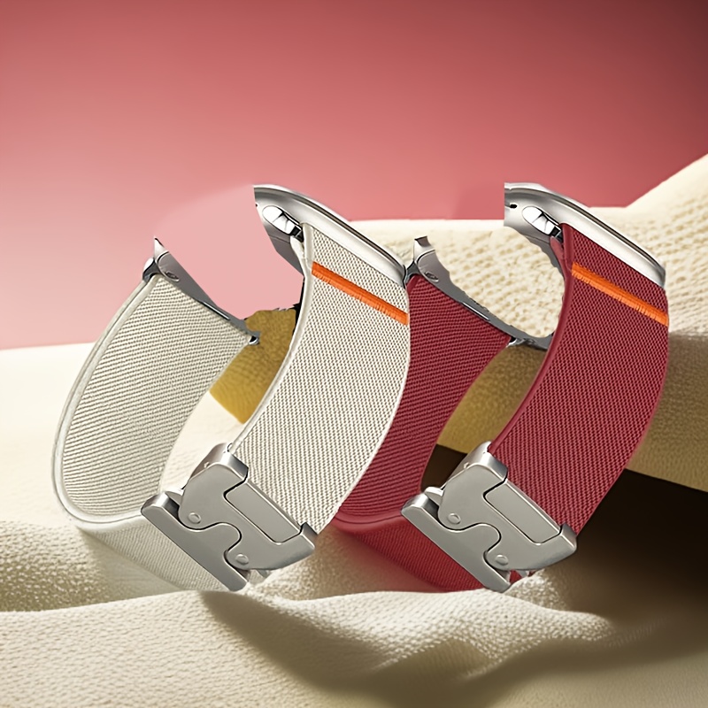 Elastik Naylon Halqa Lenti, Parashut Usulidagi Qulfi bilan, Apple Watch uchun, 38mm-49mm o'lchamlariga mos keladi, Suvga chidamli emas, Erkaklar va Ayollar uchun Poliamid Lenti, turli Apple Watch modellari bilan mos keladi.