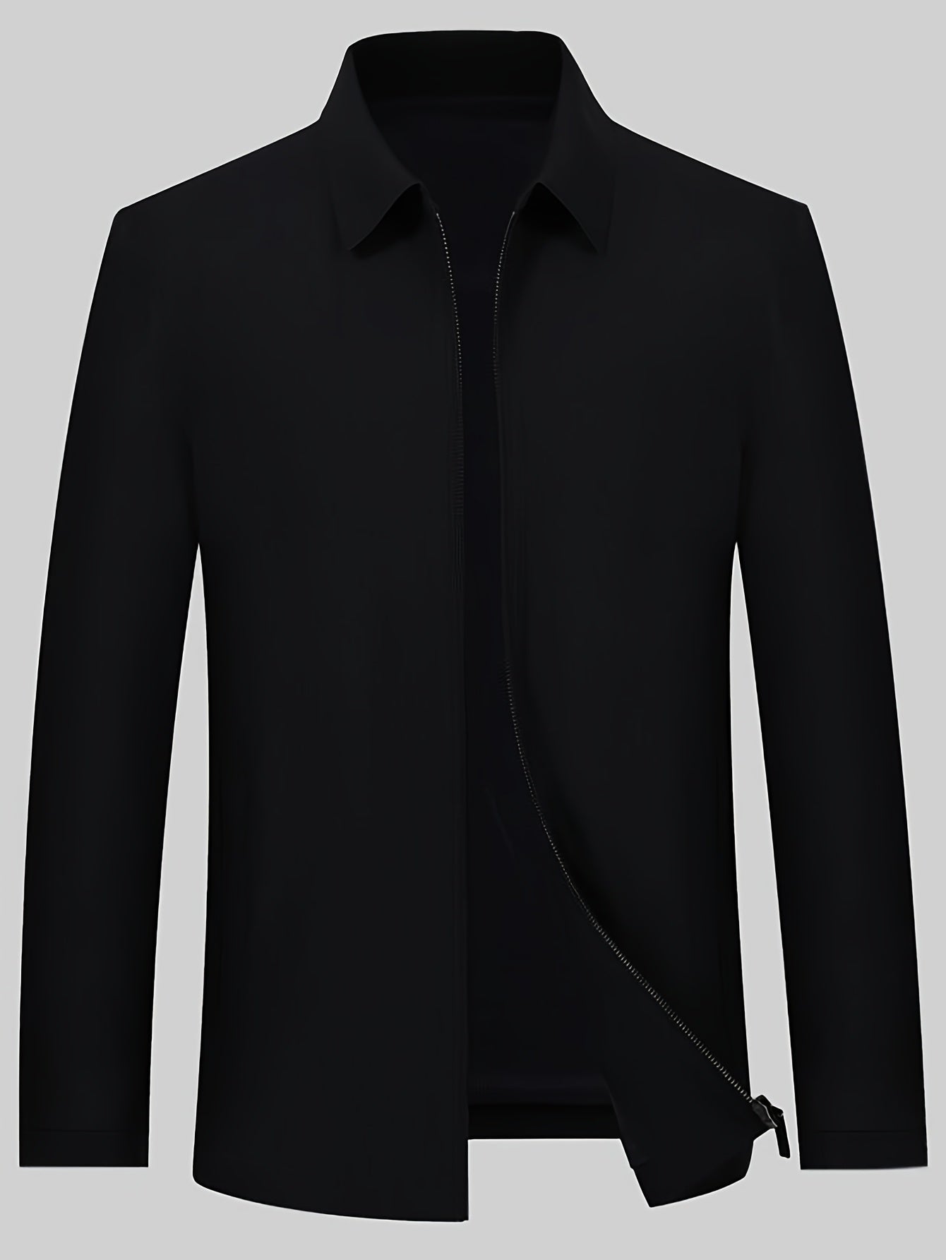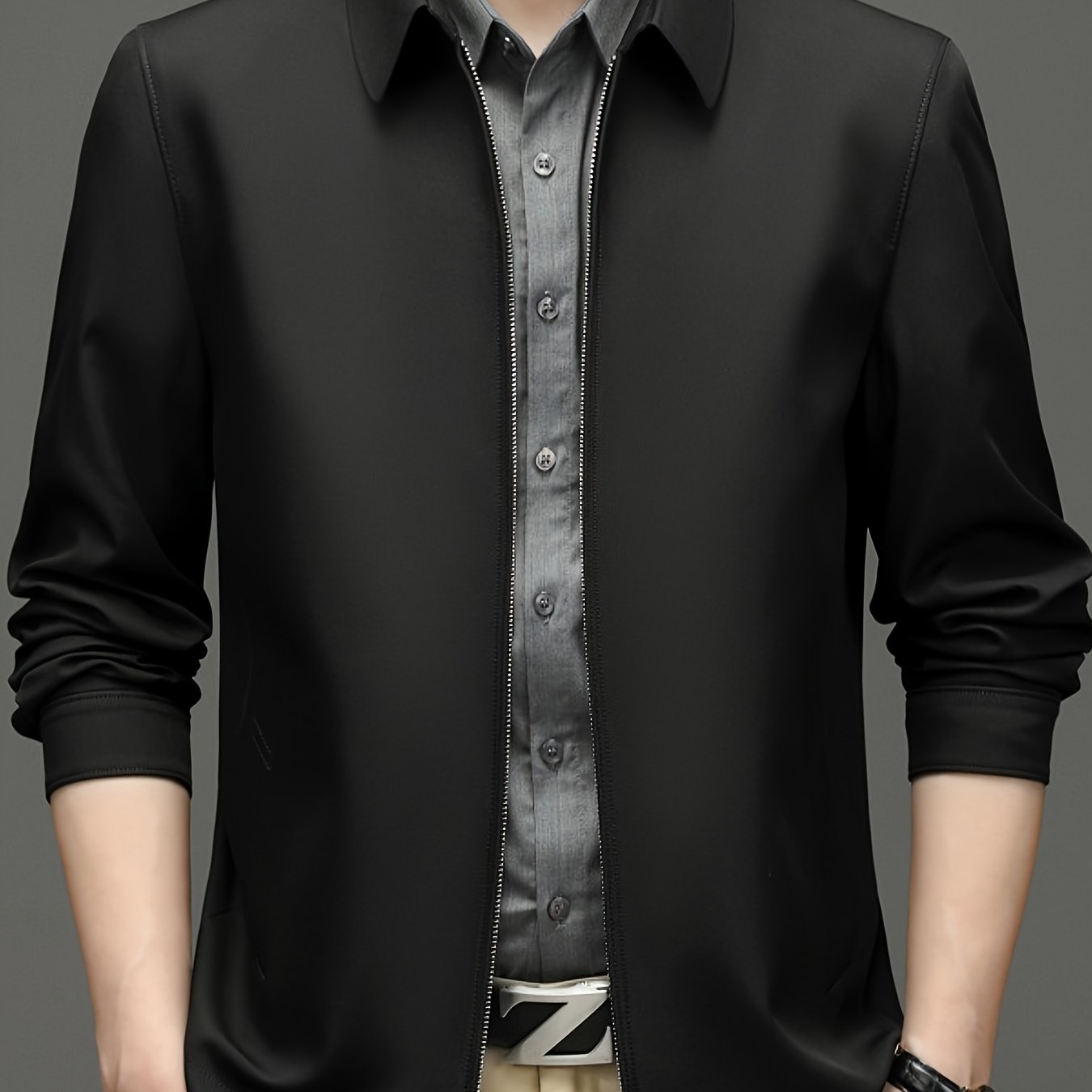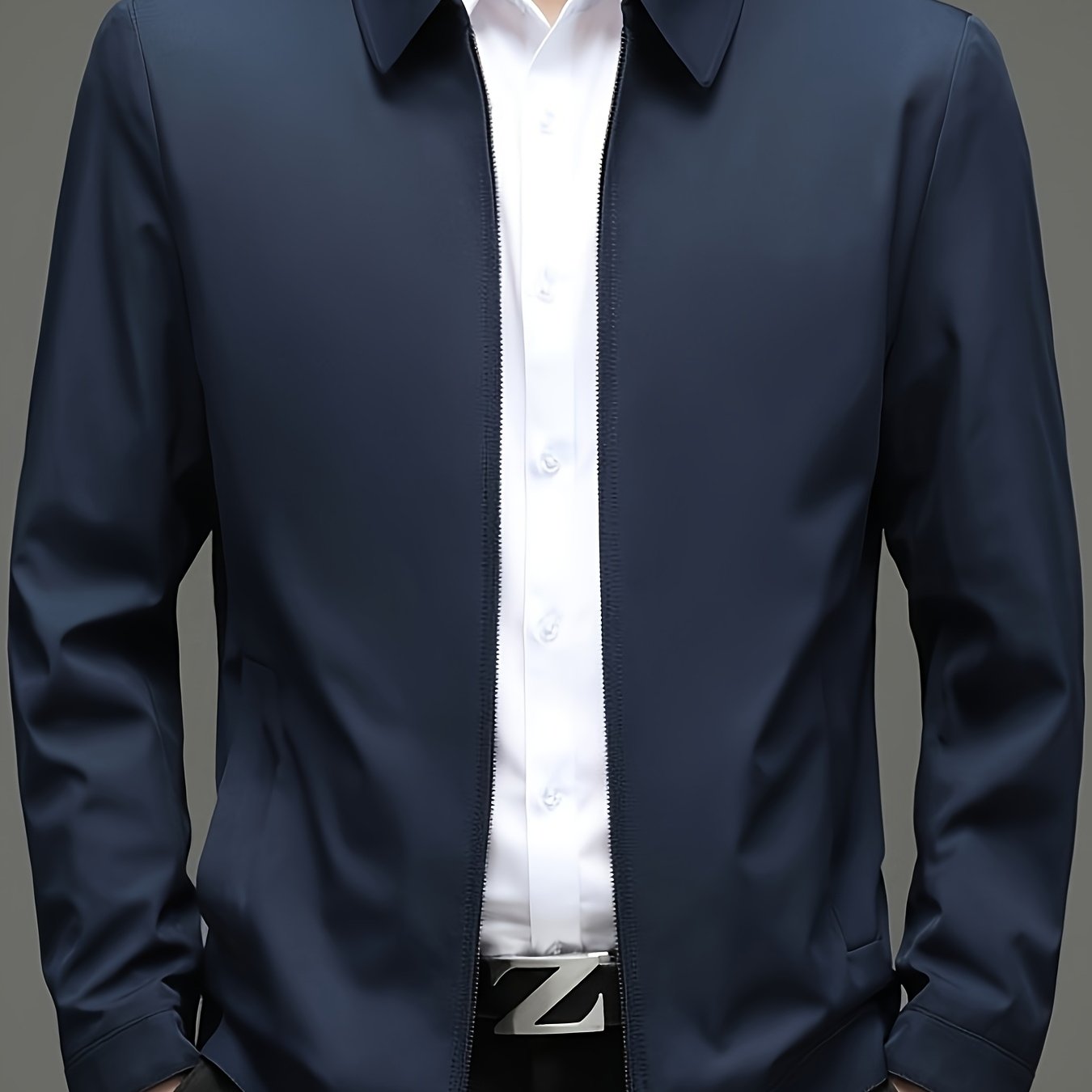 Katta yoshli erkaklar uchun qattiq rangdagi cho'zilmaydigan polyesterdan tayyorlangan tasodifiy ish jileti, bahor/kovak uchun mos, cho'ntaklari bilan.