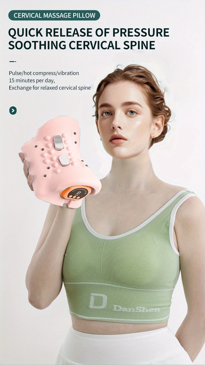 Pushti vibratsiya massaj yostiqli elektr bo'yin egri chizig'ini to'g'rilovchi va issiq press puls massaji.