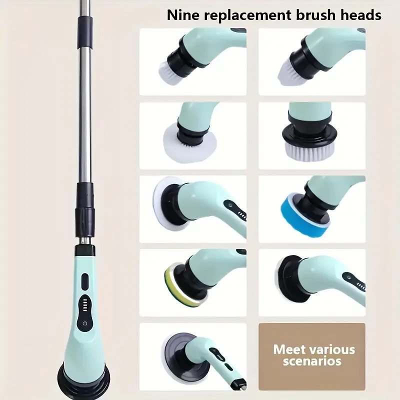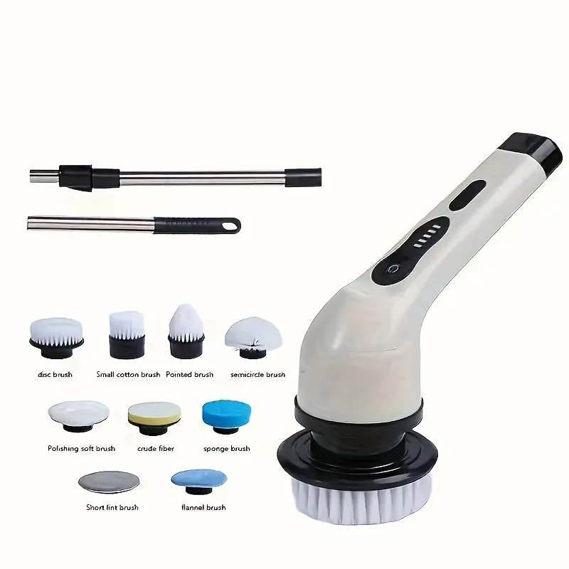 8 ta almashtiriladigan cho'tka boshli elektr tozalash cho'tkasi to'plami, sozlanadigan uzatma tutqichi va simsiz dizayn bilan pol, hammom, vannalar va plitalarda ko'p qirrali tozalash uchun.