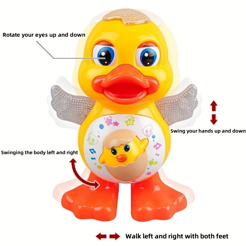 Bolalar uchun chiroqlari va musiqa bilan elektr raqs qiluvchi o'rdak o'yinchoqi