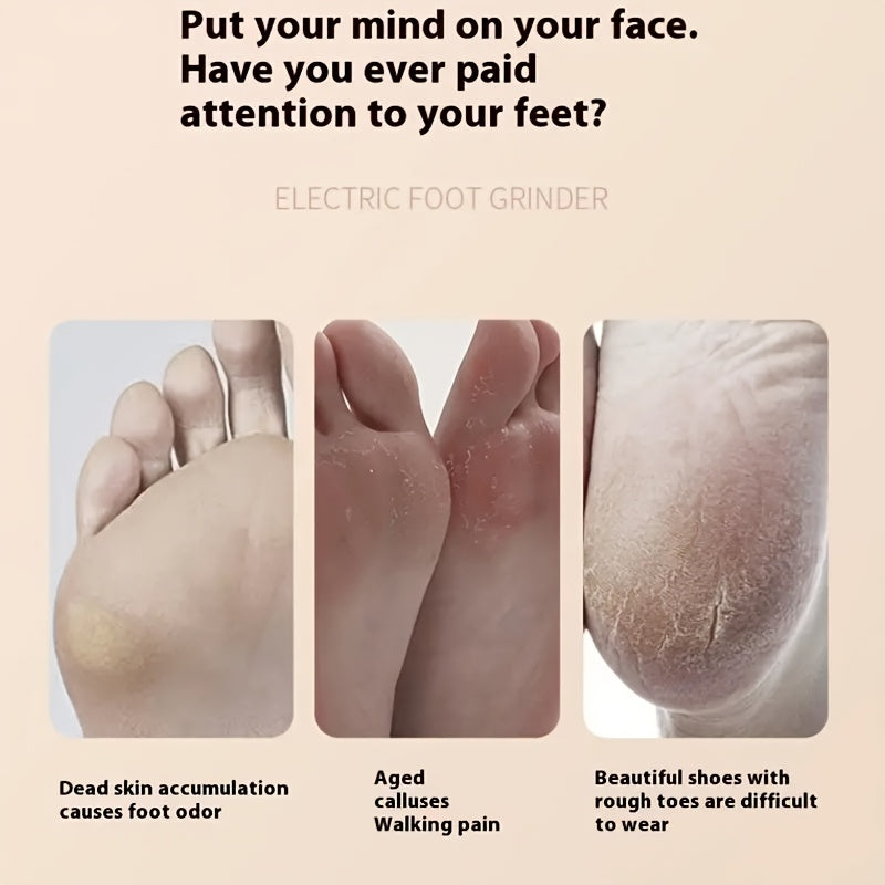 Elektr oyoq qattiq teri olib tashlovchi, almashtiriladigan soch olib tashlash boshiga va sozlanadigan tezlik nazoratiga ega, qulay foydalanish uchun USB orqali zaryadlanadi.