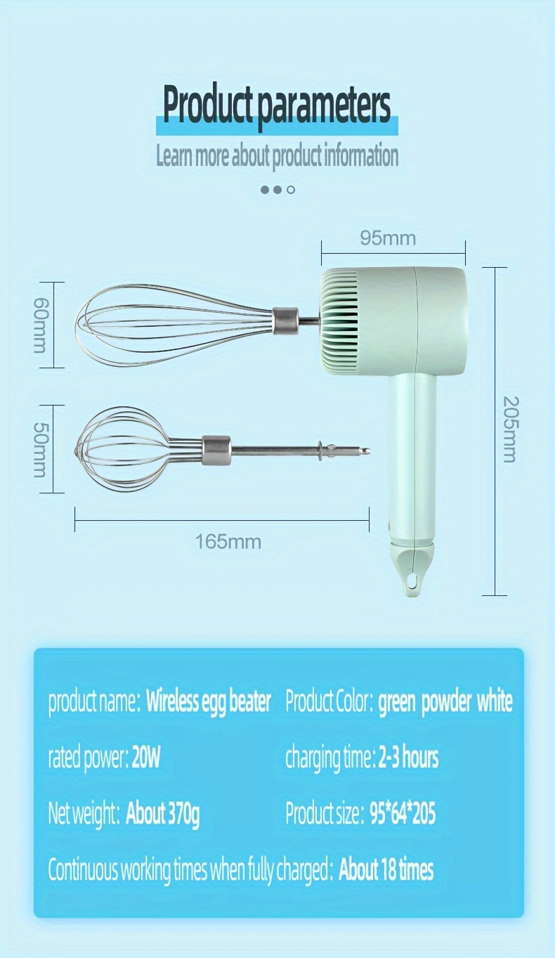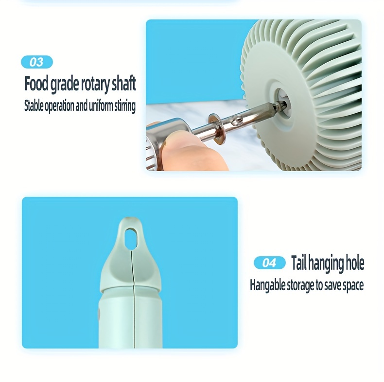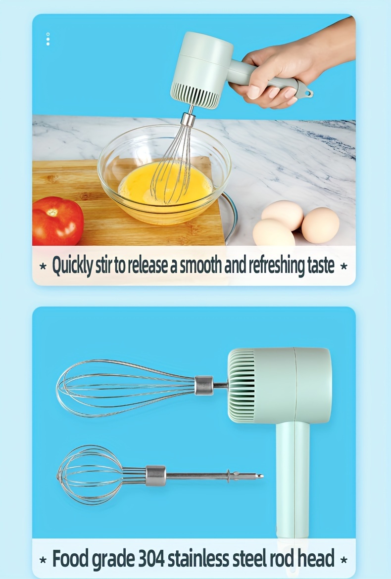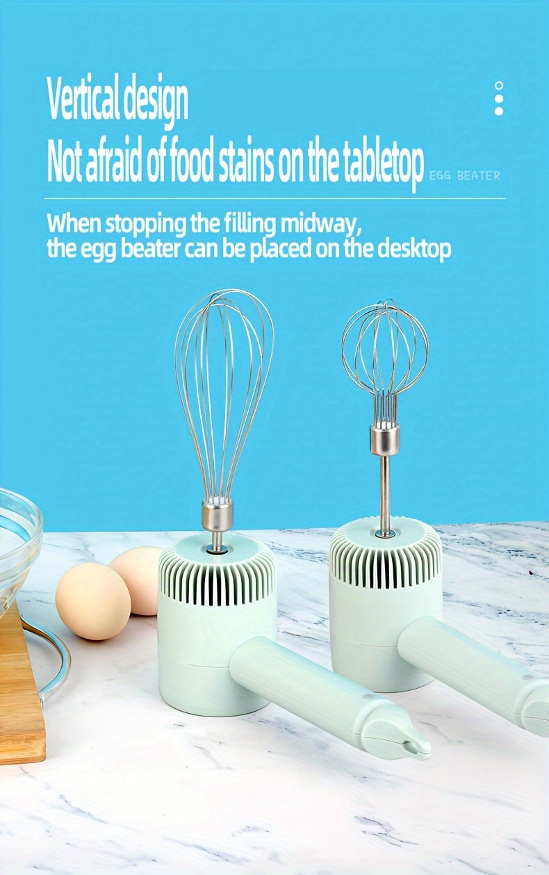 Elektr quloq mikseri, zanglamaydigan po'latdan yasalgan chayqalgich, 3 tezlik, qayta zaryadlanuvchi oziq-ovqat blenderi