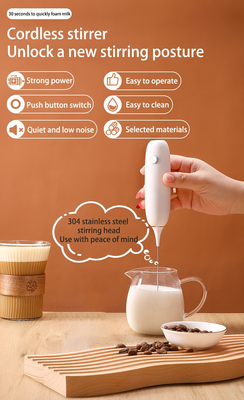 Elektr milk ko'paytirgichi, qo'lda, 4W, simsiz, foydalanish oson, latte va kapuchino uchun