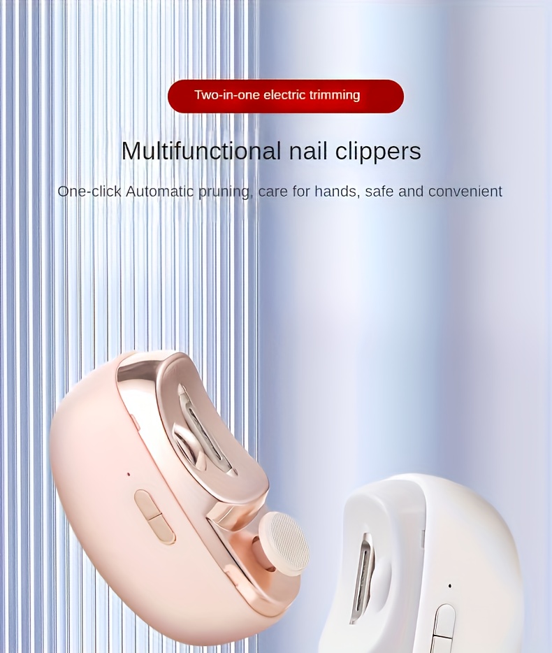 USB zaryadlash, LED chiroq va qayta zaryadlanadigan litiy batareyasi bilan elektr tirnoq kesgichi va polirovka qiluvchi. Uy manikyuri uchun mukammal, ideal 14-fevral sovg'asi. Zamonaviy tirnoq parvarishi uchun zarur.