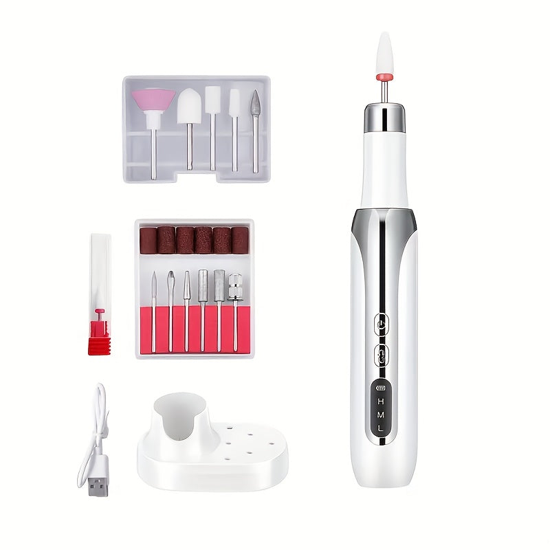 USB orqali zaryadlanadigan litiy batareyali elektr tirnoq polirovchisi va burg'ulash to'plami, manikyur va pedikyur uchun mukammal, gel lakni olib tashlash vositasi bilan birga.